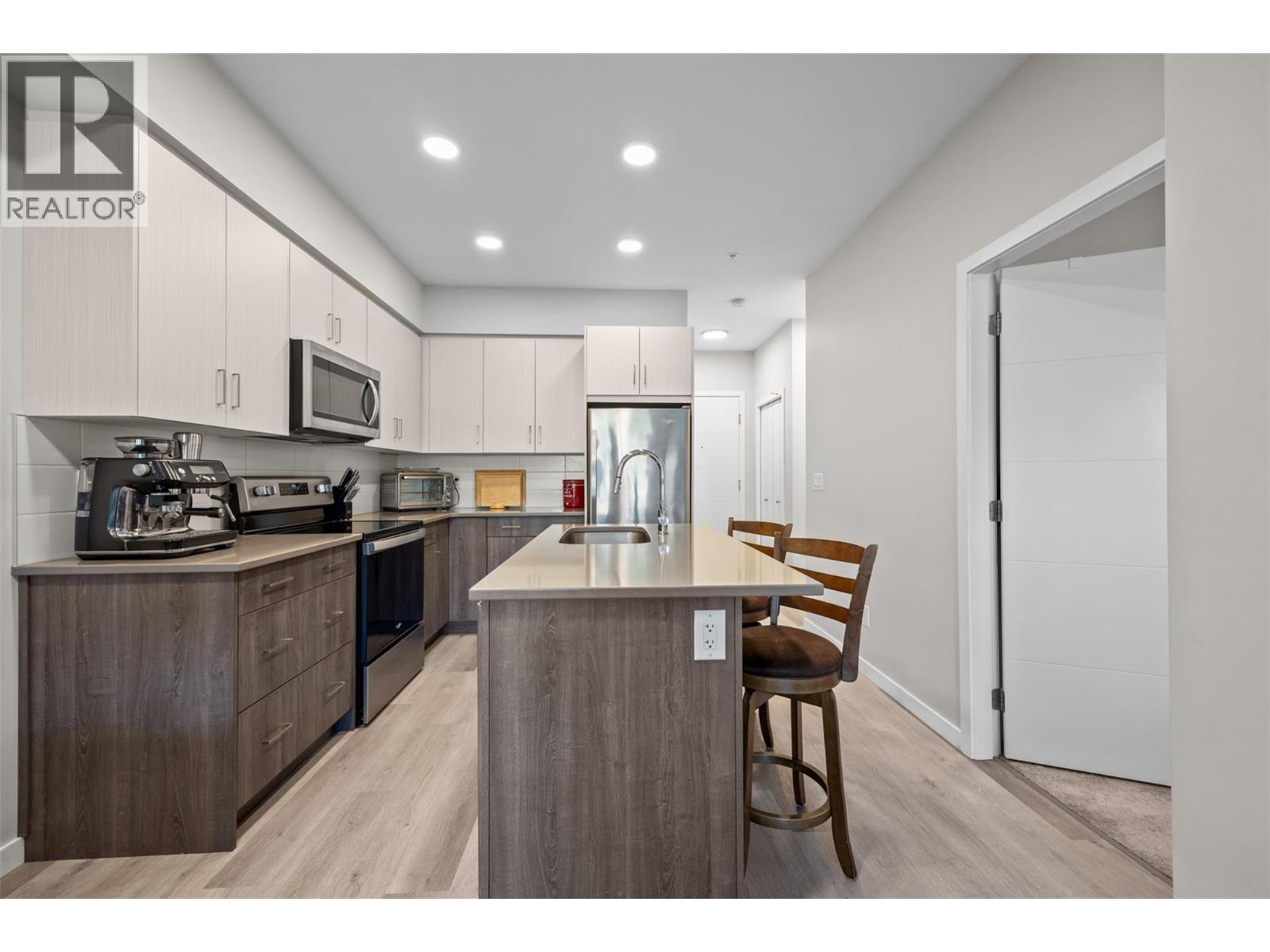 Welcome to this sleek, stylish and incredibly well kept 1 Bedroom plus Den apartment in the sought after Centro building. This unit has the luxury of coming with 2 assigned parking spaces and a double sized storage locker which makes it perfect for first time home buyers. On top of these great perks, the guest suite in the building will be one of your neighbours. Making for quieter day-to-day living and added convenience when you have visitors in town. The underground parking stall is also in a premium location. Being in a corner of the parkade means you only have one stall next to you and the elevator is just steps away. The stall is also on the upper floor of the parkade which means easier access from the road versus the lower parkade entrance. The thoughtful layout of the unit leaves no wasted space and boasts a very functional, well-appointed kitchen complete with stainless steel whirlpool appliances and an oversized farmhouse sink. Bring your furry friends as this building is pet friendly and the areas is rich with parks and walking trails. The building offers a gym, bike storage facility and a social room complete with a full kitchen. Centro is located within walking distance to Gellatly Beach and is a short drive from golf courses, award winning wineries and all the shopping West Kelowna has to offer. (id:58842)