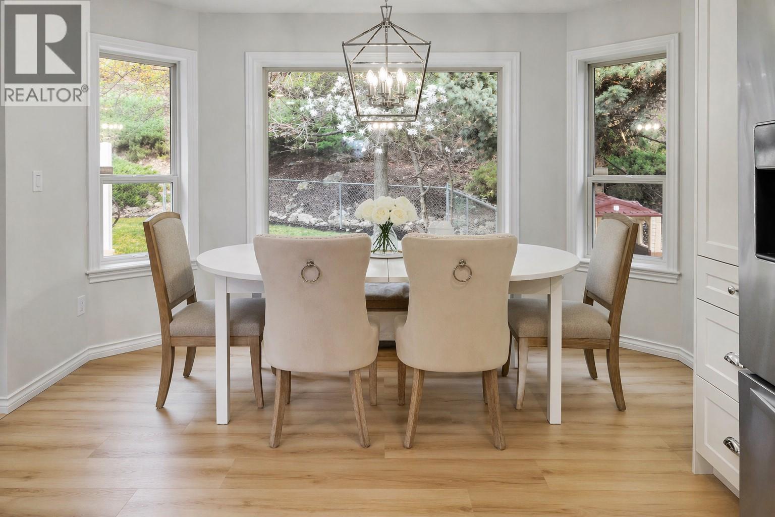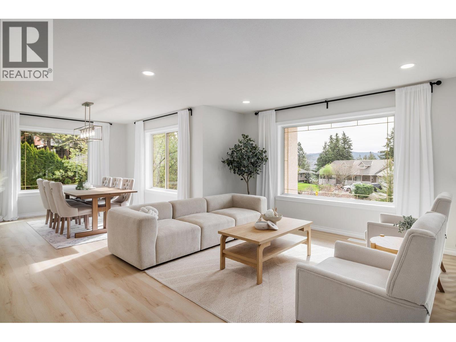 Live the dream in the Okaganan in this beautifully finished 5 bedroom home complete with a 2 bdrm mortgage helper suite and located in the highly sought-after community of Dilworth. Spanning on 1/3 acre lot, this home is situated in close proximity to beach, vineyards, shopping and everything Kelowna has to offer. The lower level is a self-contained suite with separate entrace to 2 bdrms, full bath, spacious family room, full kitchen, storage room and ensuite laundry, with versatility to extend into the main home with any future needs. Fall in love with this brand new kitchen featuring quartz countertops, dreamy faucets, granite farm sink and functional design. The upper level includes 2 good-sized bdrms and a primary bdrm of your dreams including a walk-in closet complete with laundry and a private patio perfect for evenings in the hot tub. The high-end finishes are carried on throughout in the private ensuite and main bathroom complete with soaker tub. The main level also features 2 dining areas, a family room and living room opening to a private patio with grapevine trellis, perfect for entertaining. The large picture windows showcase the peaceful valley views and beautiful mature trees. A rare lifestyle highlight is direct backyard access from your private trail leading to a scenic lakeview recreation area with ping-pong table, bar seating, and playground. Features: vinyl plank flooring, upgraded plumbing (no Poly B), modern pot lighting, large fenced yard, double garage. (id:58842)