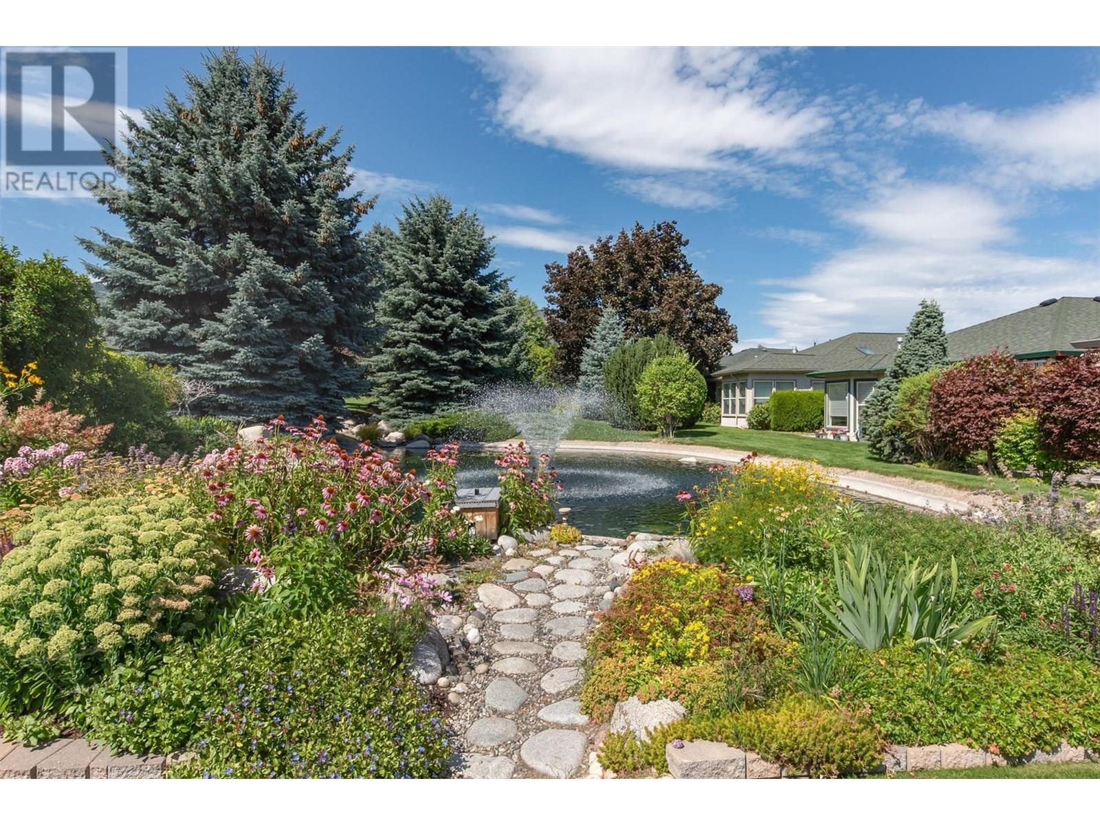 Most sought after location in desirable Sun Village (45 plus) this gorgeous home has a beautiful water feature on one side and another out back. The outdoor space has a covered oversized patio, lovely grassed area and fabulous gardens. The interior is 1,590 sq.ft., two bedrooms. two baths with a formal living room with gas fireplace, dining room, updated kitchen with eating area and adjoining family room with cozy gas fireplace. Sliding doors off the family room lead to the peaceful outdoor area. The Primary Bedroom is spacious with a large walk-in closet and adjoining ensuite. There is a second bedroom and additional bathroom with a safestep tub (approx cost $28,000 2023). The laundry room has a newer washer/dryer and laundry sink. The attached two car garage with room for two additional cars on the driveway and available rv parking make this home very desirable! Some updates include new furnace/ac ($9,000 - 2019), newer hot water tank ($2,200 - 2022), newer countertops ($5,500 - 2021) and wood floors. Appliances included. Built-in Vac and Alarm system. Home is built on a crawl space so plenty of storage. Lease has not been paid. Monthly Lease is $347.27 and Strata Fees are $354.70. Pets are welcome (2 dogs up to 20"" at shoulder). (id:58842)