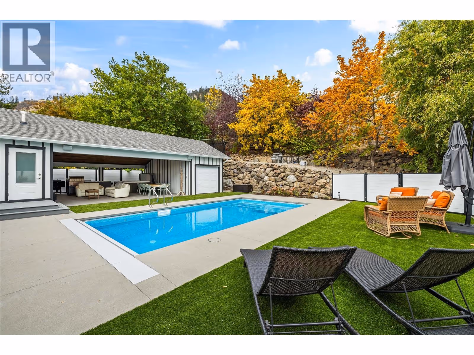 Situated in the highly sought-after Shannon Lake neighbourhood, this impeccably maintained 4-bedroom, 3-bathroom home showcases exceptional pride of ownership. With numerous renovations offering worry-free living and a pristine 10/10 presentation, this sanctuary resides on a quiet cul-de-sac, ideal for families. The heart of the home is the fully renovated kitchen, featuring quartz countertops, two-tone cabinetry, upgraded appliances including a gas stove, walk-in pantry, windows framing mountain views, and re-insulated floors for extra comfort. The main level’s open-concept design seamlessly connects the dining area with a family living room boasting a gas fireplace and vaulted ceilings. You'll find 3 spacious bedrooms on the main floor, including a full bathroom and the primary suite with a fully updated ensuite. Your lower level features a large den/flex room, 4th bedroom, another full bathroom and laundry room. Enjoy an unparalleled outdoor oasis in the just completed backyard featuring an in-ground pool with an automatic safety cover. The fully covered expansive indoor-outdoor space features a hot tub, built-in kitchen and barbecue, room for a large dining table and seating area, a fireplace, and built-in speakers along with another single bay garage with 60 amp service. This oasis it perfect for year-round gatherings and relaxation. Key updates enhance comfort and efficiency: AC (2019), furnace (2018), roof (2020), and replacement of all poly-B piping. Additional features include upgraded windows, closet organizers, an EV charger, and a built-in vacuum. Ample parking options include a double garage, extended driveway, and RV parking. Located in the coveted Mar Jok catchment area with quick access to amenities, this home truly has it all. A must-see! (id:58842)