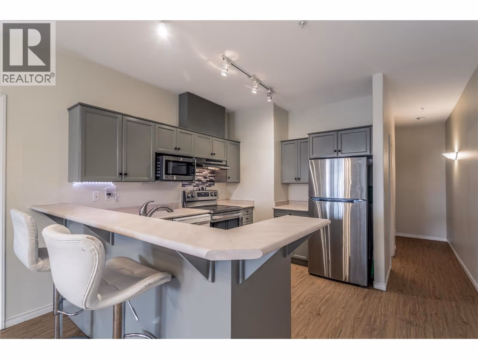 Welcome to Unit 208 - 2388 Baron Road! Located in The Gateway, one of Central Kelowna’s most convenient and sought-after communities, this bright and spacious 2 bed, 2 bath apartment offers the perfect blend of comfort, lifestyle, and unbeatable location. Step inside to a home filled with natural light, featuring an open layout, a spacious kitchen, and in-unit laundry with extra storage. The primary bedroom has an ensuite with a bathtub, while the second bedroom is served by a separate full bathroom with a shower, ideal for guests or a roommate. Enjoy your mornings or evenings on the covered deck with views of the city and mountains. What truly sets this property apart is its location: directly across from Orchard Park Shopping Centre and just steps to countless restaurants, shops, transit, and entertainment. Despite being in the heart of the city, you’re also minutes from nature trails, parks, and Kelowna’s outdoor lifestyle. Residents of The Gateway enjoy access to a fantastic amenities room with a fitness area, pool table, table tennis, and kitchenette, along with a welcoming common outdoor seating area, a shared barbecue space, and a guest suite available for visiting friends or family. This home also includes a secure underground parking stall and a private storage locker, providing both convenience and peace of mind. Whether you’re a first-time buyer, downsizer, or investor, this home checks all the boxes for convenient city living with a touch of Okanagan charm. (id:58842)