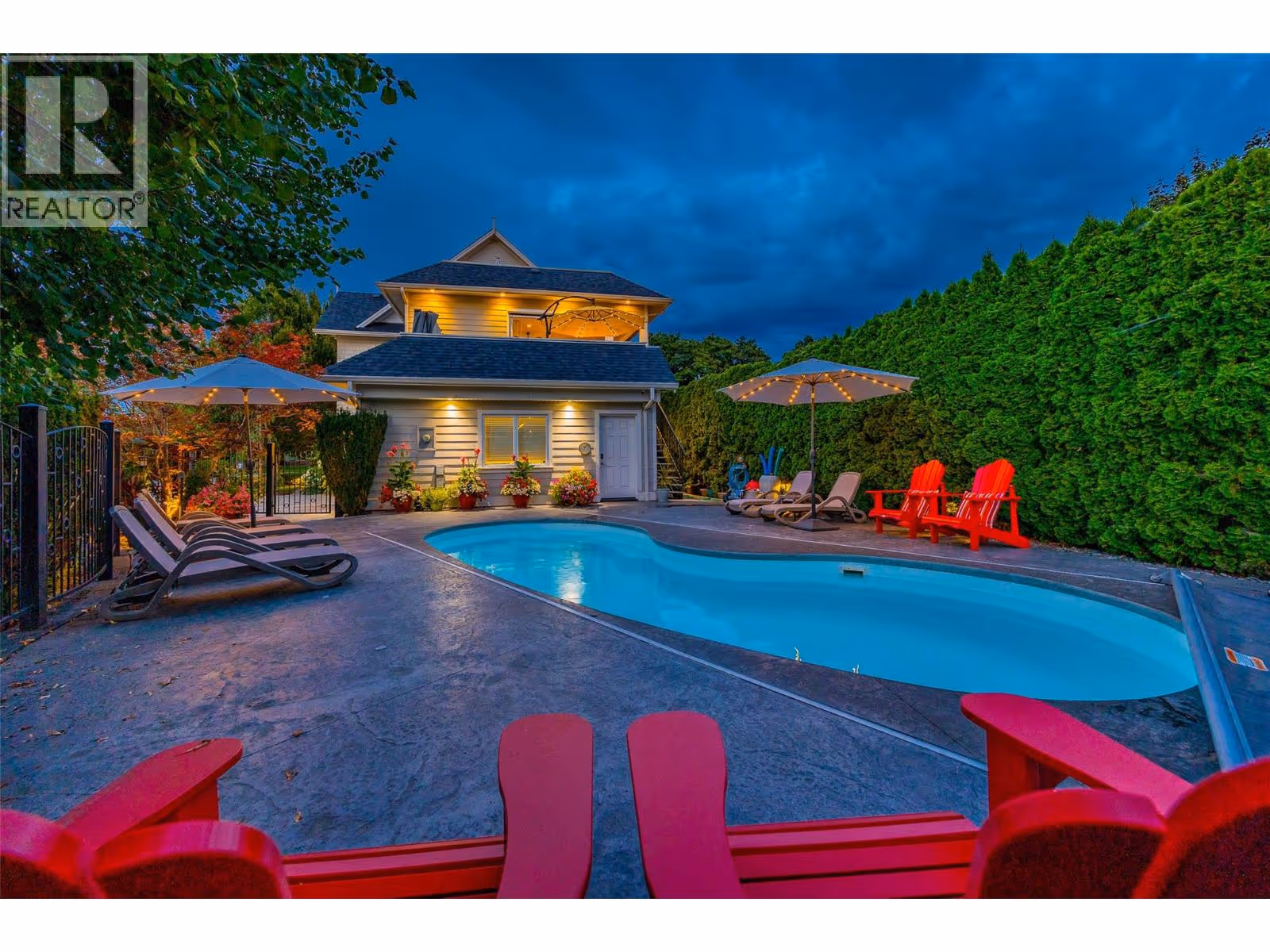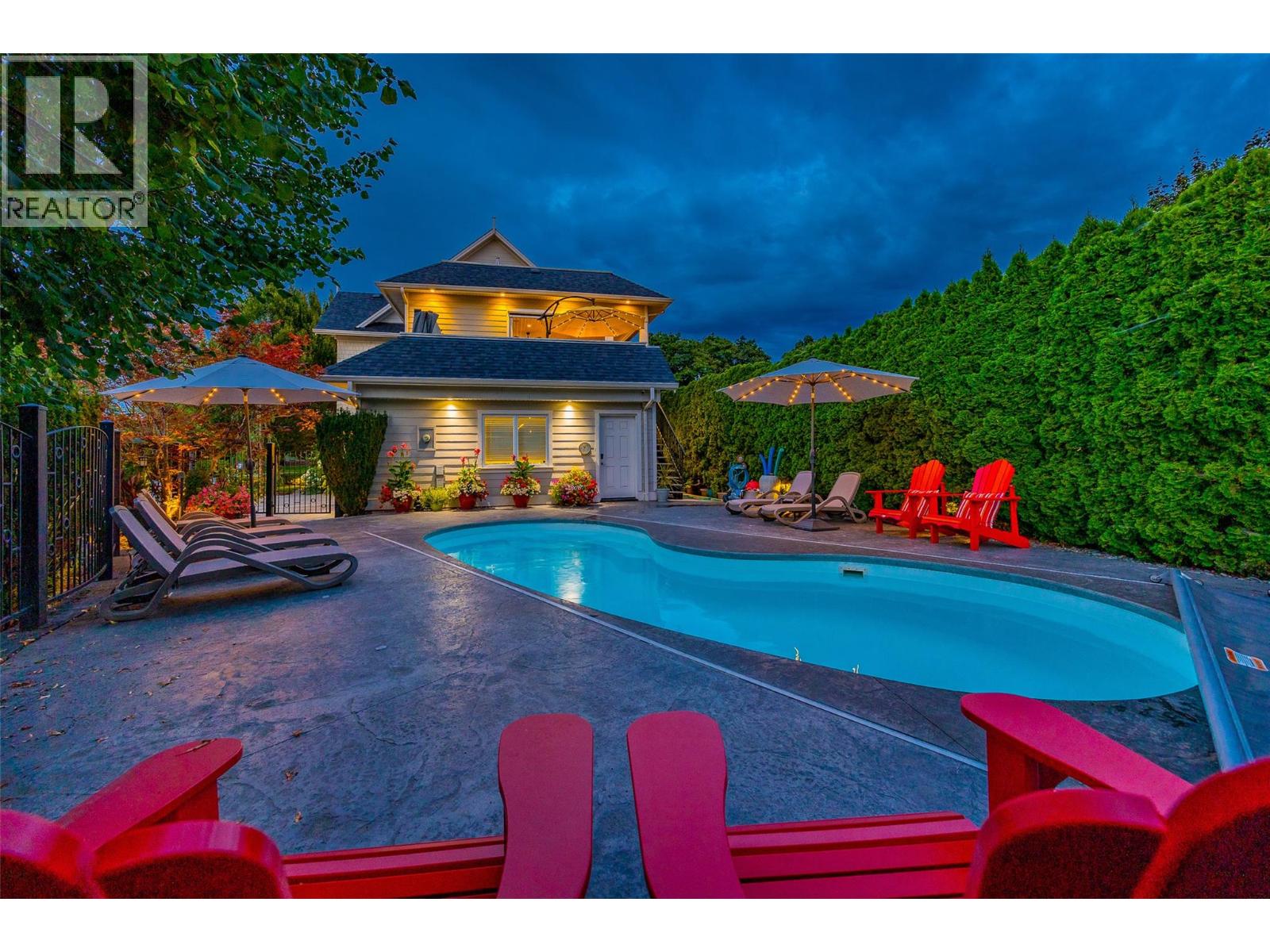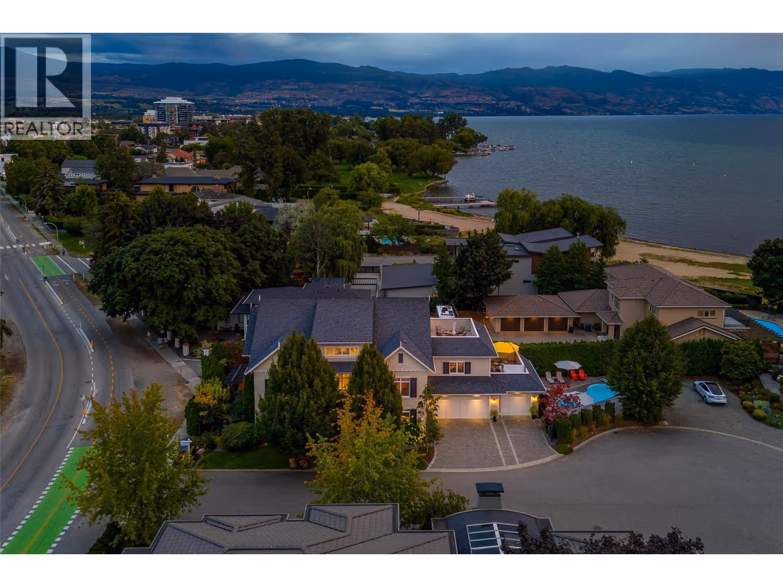 Welcome to luxury living on highly desirable Abbott Street! Combining timeless elegance with modern functionality, a spacious layout and impeccable finishes throughout. The grand double-storey foyer, embraces you with under-floor heated tile, soaring vaulted ceilings, and an abundance of natural light. An elevator, enhances accessibility and convenience. The ground level is perfect for guests or multi-generational living, featuring a private suite with kitchenette, sitting room and garden courtyard access, ideal for in-laws or Airbnb. An office, home theatre, laundry, and pool bathroom round out this level. The main floor chef’s kitchen with premium appliances and pantry, a great room with gas fireplace, two bedrooms with a shared bathroom, powder room, dining area, and a full wet bar with a dishwasher, wine and beverage fridges is an entertainer’s dream. Step outside to a stunning lounge and dining area with gas fireplace, TV, phantom screens, and hot tub. The top floor is an indulgent primary retreat with a spa-inspired marble bathroom, dressing room with laundry, private sitting area with fireplace, and a serene sun deck. Enjoy your secluded oasis with a UV pool, auto cover, and ample lounging space. A heated triple garage with additional storage completes this exquisite home. This freehold, bare land strata with private beach access has a low monthly strata $30 covering insurance for the common road. Ideally located near Pandosy Village, KGH, and the lake. (id:58842)