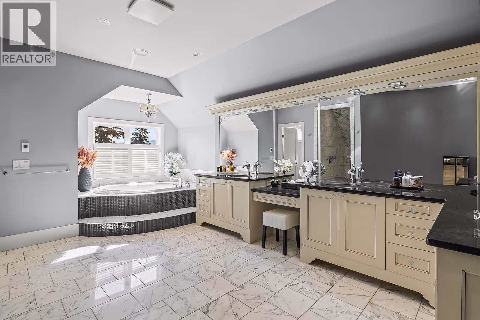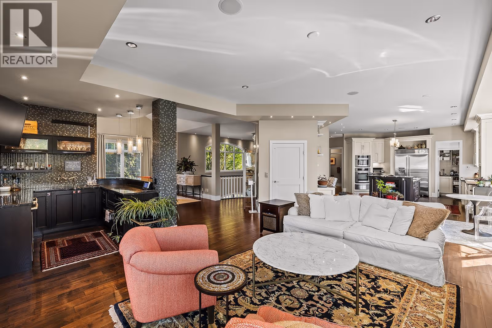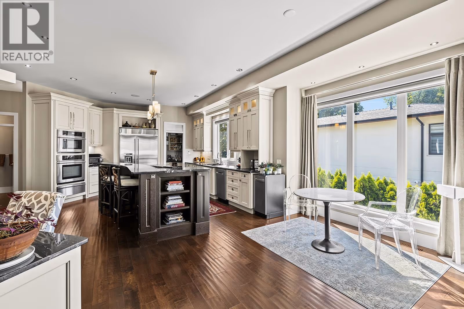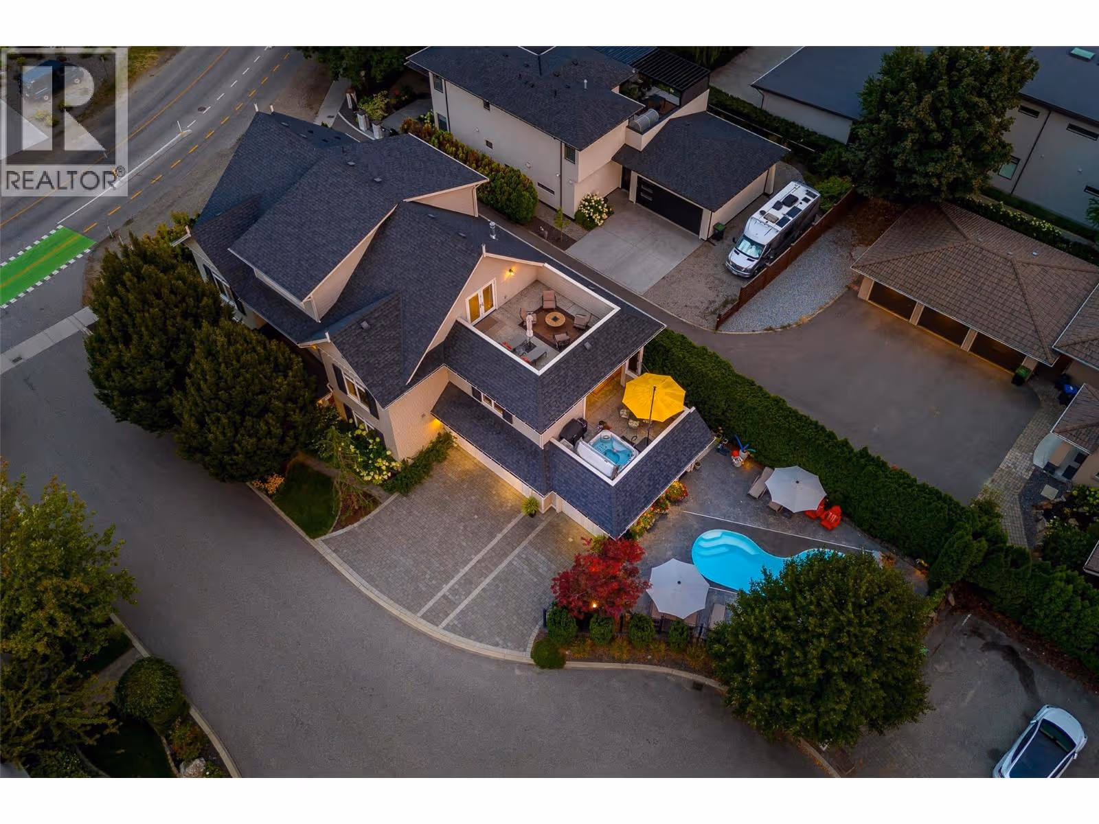 Welcome to luxury living on highly desirable Abbott Street! Combining timeless elegance with modern functionality, a spacious layout and impeccable finishes throughout. The grand double-storey foyer, embraces you with under-floor heated tile, soaring vaulted ceilings, and an abundance of natural light. An elevator, enhances accessibility and convenience. The ground level is perfect for guests or multi-generational living, featuring a private suite with kitchenette, sitting room and garden courtyard access, ideal for in-laws or Airbnb. An office, home theatre, laundry, and pool bathroom round out this level. The main floor chef’s kitchen with premium appliances and pantry, a great room with gas fireplace, two bedrooms with a shared bathroom, powder room, dining area, and a full wet bar with a dishwasher, wine and beverage fridges is an entertainer’s dream. Step outside to a stunning lounge and dining area with gas fireplace, TV, phantom screens, and hot tub. The top floor is an indulgent primary retreat with a spa-inspired marble bathroom, dressing room with laundry, private sitting area with fireplace, and a serene sun deck. Enjoy your secluded oasis with a UV pool, auto cover, and ample lounging space. A heated triple garage with additional storage completes this exquisite home. This freehold, bare land strata with private beach access has a low monthly strata $30 covering insurance for the common road. Ideally located near Pandosy Village, KGH, and the lake. (id:58842)