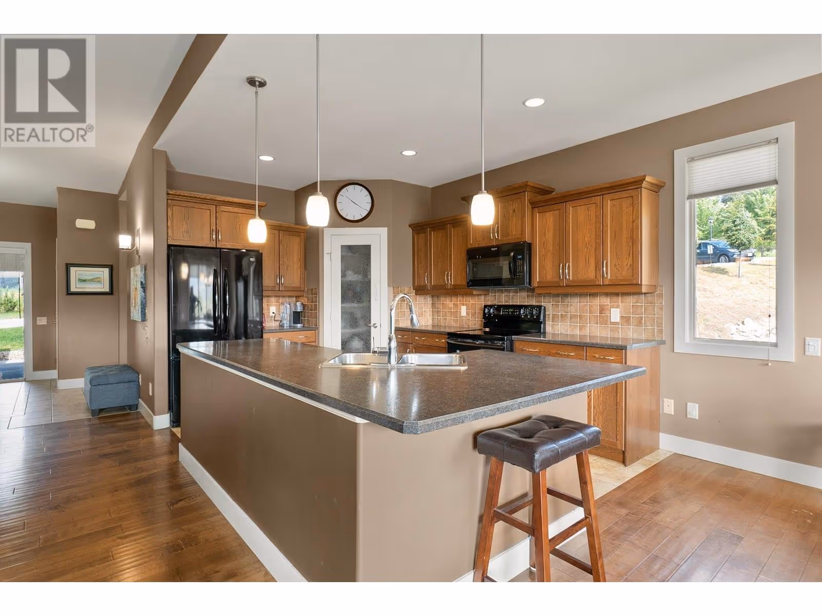 Enjoy peace and quiet with this fantastic 4 bedroom townhome that feels like a single family home. Situated at an end of the complex, this unit is in the perfect location for privacy and extra yard space. Take in the beautiful mountain and valley views from the large deck or the patio below. Access the Rail Trail from your home and take a 15 minute bike ride to the beach- or for the more adventurous, all the way to Vernon! Built in 2010, this walk out rancher features hardwood floors, 2 gas fireplaces and a 2 car garage with space to park 2 more vehicles on the driveway. The main floor boasts an open concept kitchen/dining and living area. On top of that is a gorgeous primary bedroom with walk in closet and large ensuite with bathtub, shower and 2 sinks. Completing the level is a bedroom or office and a 3 piece bathroom. Downstairs is a family games room, wet bar, 2 more bedrooms and a full bathroom. Laundry on both floors and plenty of storage space as well. (id:58842)