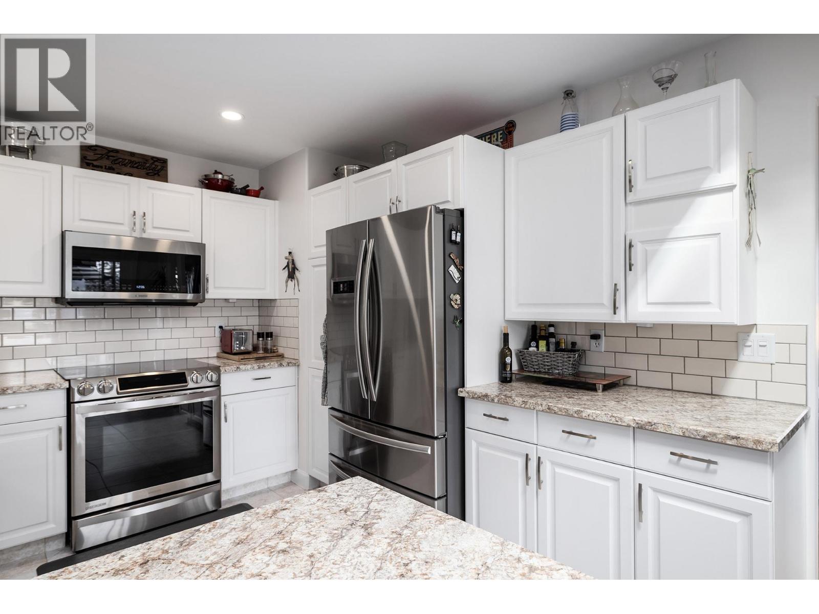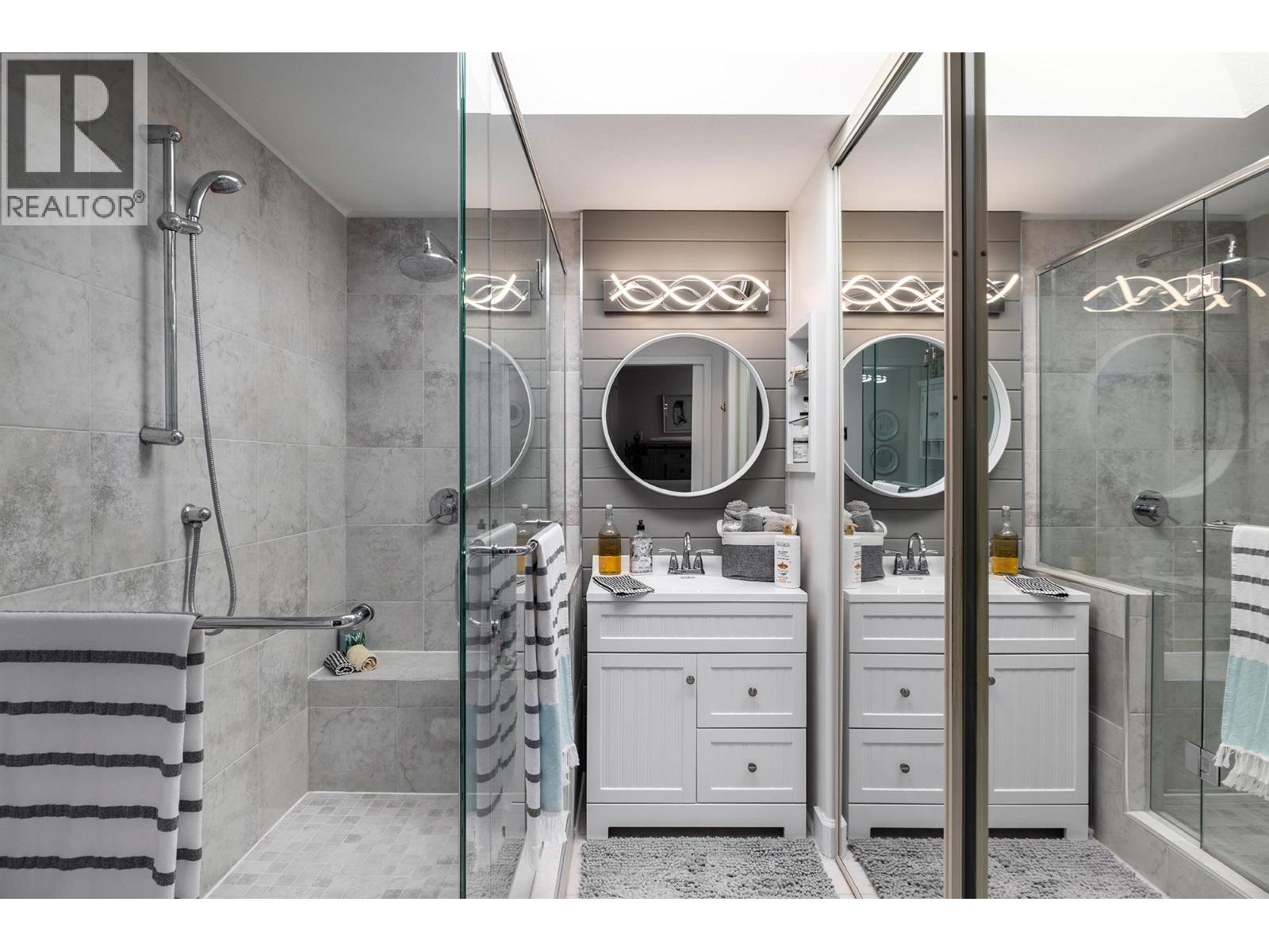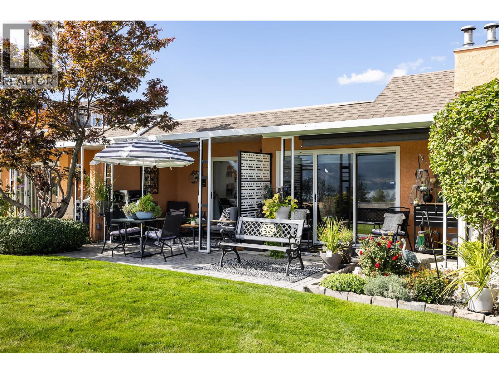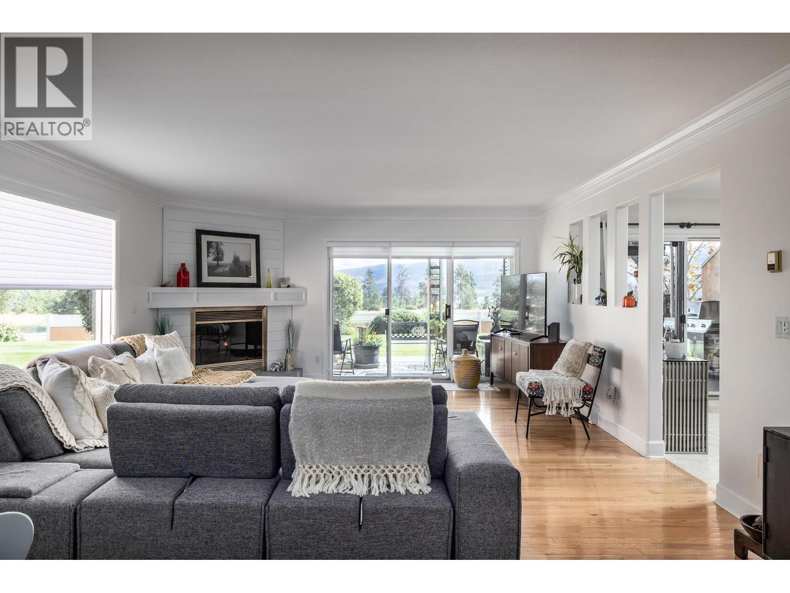 Immaculate FREEHOLD Bare Land Strata semi-detached duplex with Lake and Mountain Views and leisure gardens 55+. Fully renovated with 2 primary suites, featuring upgraded crown moldings, hardwood & vinyl flooring, and 3 skylights. The layout includes a spacious eat-in kitchen with SS appliances, roll-out cabinetry, and loads of storage. Enjoy the warmth of two gas fireplaces and ductless A/C. The strata covers heat, hot water & gas for fireplaces. Additional highlights are the extra large patio, garage, and proximity to amenities, including the beach and rec center. This property boasts shiplap details in all three bathrooms, radiant baseboard heat. Electricity only $56/month, Experience elegance and comfort in this gem. On;y one owner must be 55yrs+. (id:58842)