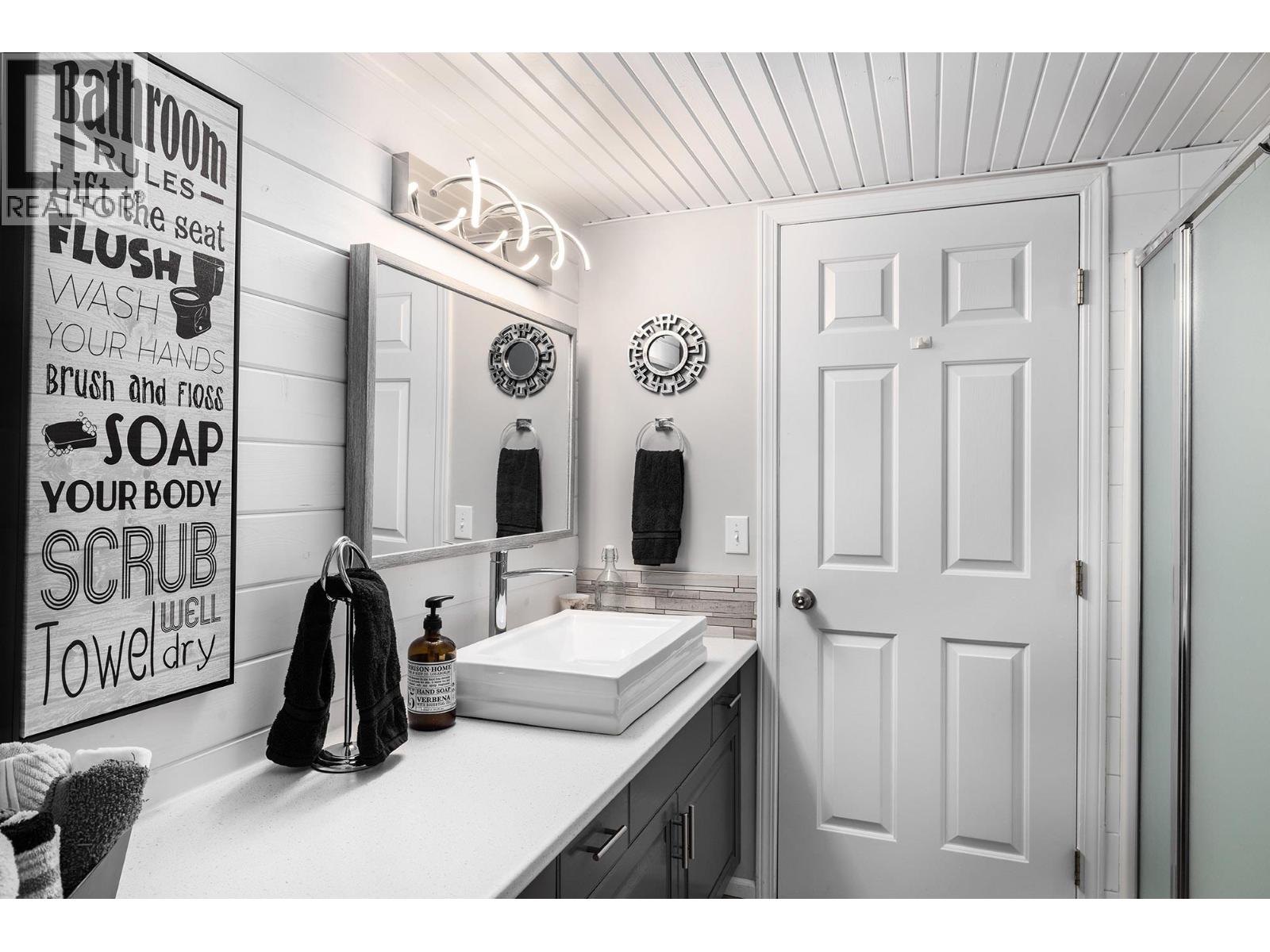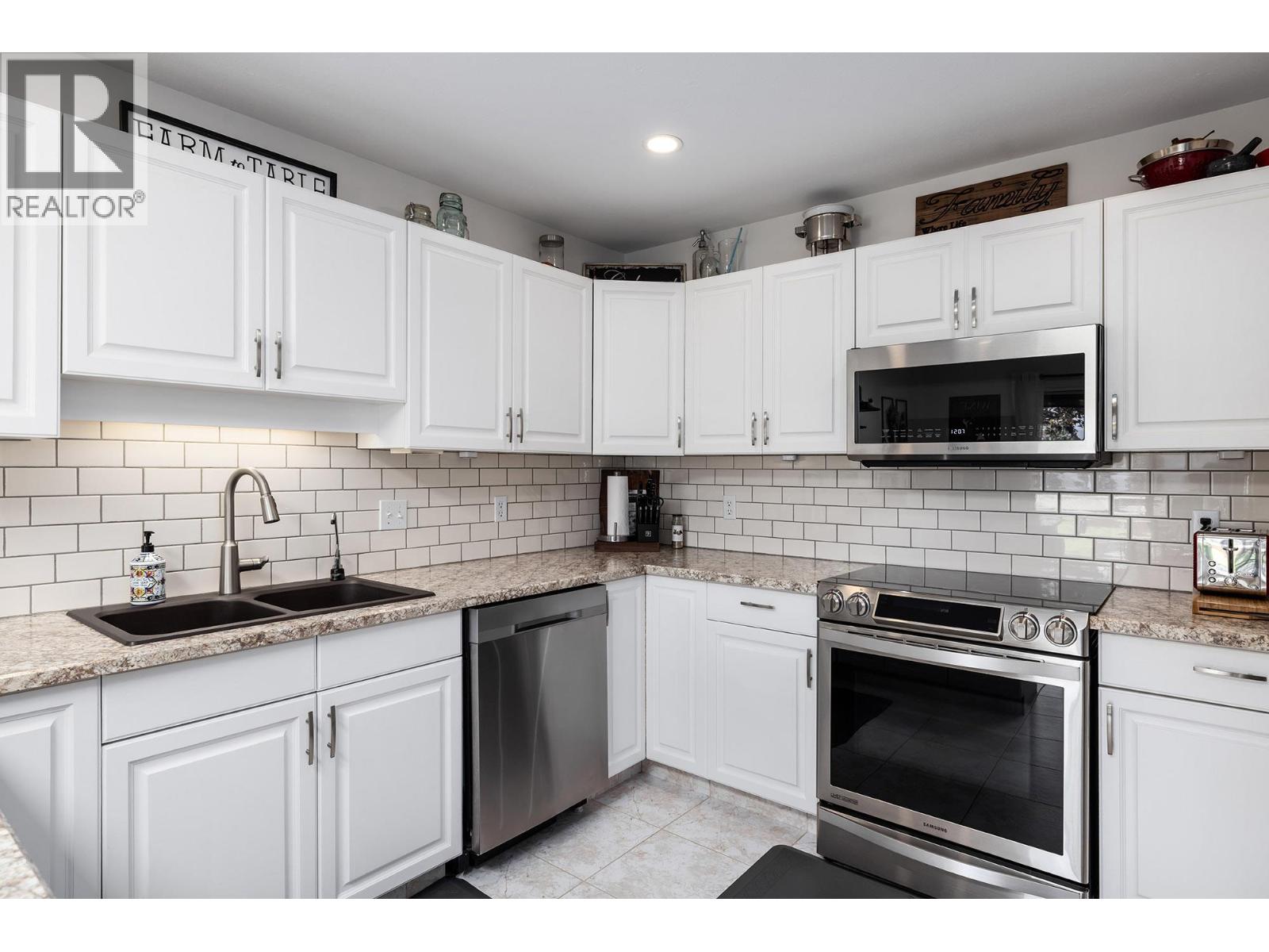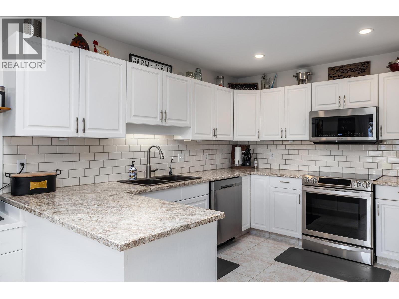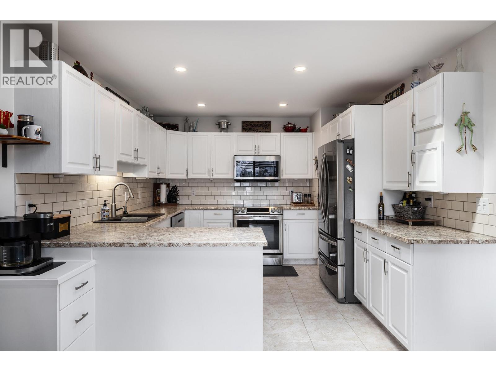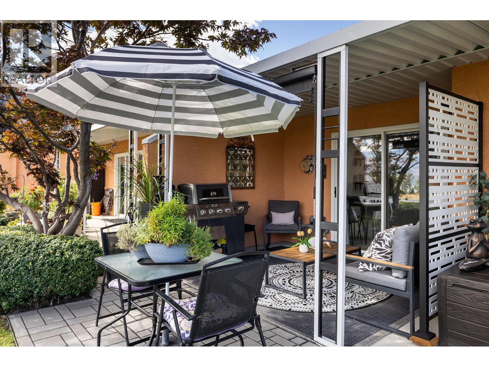 Immaculate FREEHOLD Bare Land Strata semi-detached duplex with Lake and Mountain Views and leisure gardens 55+. Fully renovated with 2 primary suites, featuring upgraded crown moldings, hardwood & vinyl flooring, and 3 skylights. The layout includes a spacious eat-in kitchen with SS appliances, roll-out cabinetry, and loads of storage. Enjoy the warmth of two gas fireplaces and ductless A/C. The strata covers heat, hot water & gas for fireplaces. Additional highlights are the extra large patio, garage, and proximity to amenities, including the beach and rec center. This property boasts shiplap details in all three bathrooms, radiant baseboard heat. Electricity only $56/month, Experience elegance and comfort in this gem. On;y one owner must be 55yrs+. (id:58842)