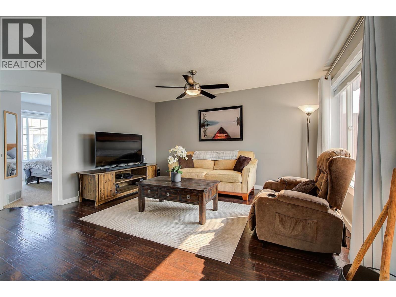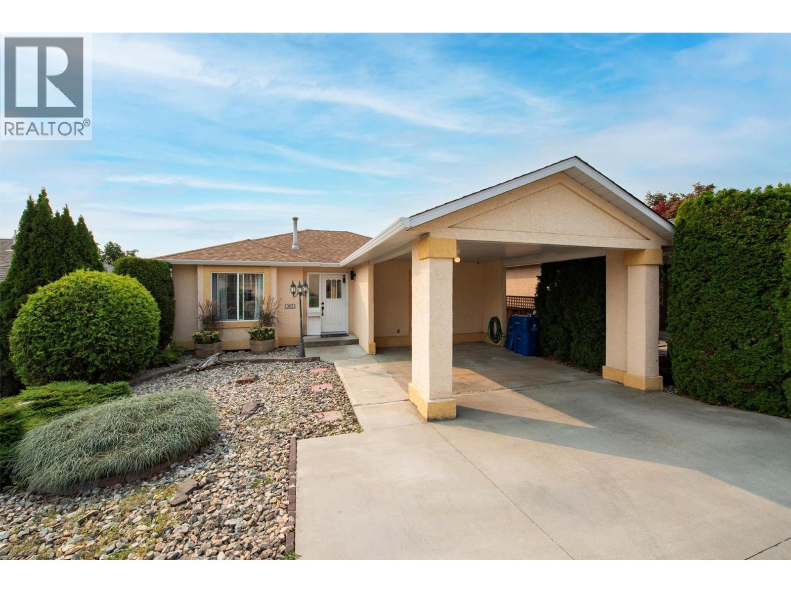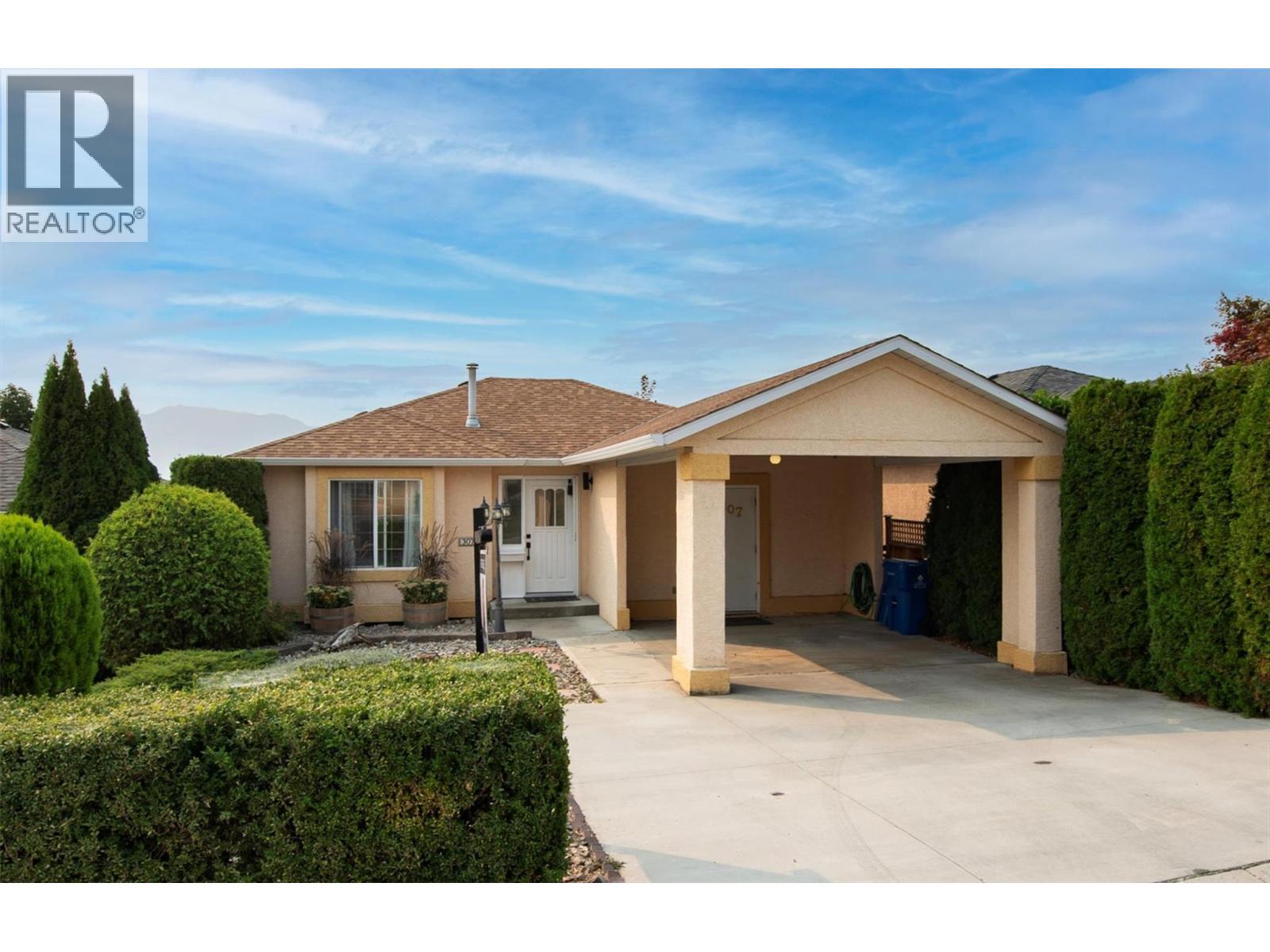 Welcome to Bayview Estates, where beautiful lake and mountain views meet unbeatable value. This bright, south-facing 3 Bedroom + den, 2-bath, walk-out rancher offers a spacious, open-concept layout ideal for comfortable living and entertaining. Recent upgrades include NEW FURNACE & A/C -2024, HOT WATER TANK -2023, ROOF 2014 giving you peace of mind for years to come. The lower level is a true bonus, featuring a sun-filled family room and a versatile den — perfect for a home office, gym, or extra storage. With its own private entrance, this bright, fully finished space offers exceptional flexibility for extended family, long-term guests, creative pursuits, or a private home workspace. This level provides great separation from the main living areas. Outside, you'll find a private yard, carport parking, extra storage and room for a total of three vehicles, plus RV parking in the complex (subject to availability, $40/ month). Bayview Estates is a family-friendly community with no monthly lease payments, a low HOA fee of just $180/month, and a pre-paid lease until 2089, offering long-term security and peace of mind. Community amenities include three parks, playgrounds, basketball courts, and a dog park. Located just minutes from schools, beaches, boat launches, golf courses, shopping, and award-winning Okanagan wineries. No Property Transfer Tax (id:58842)
