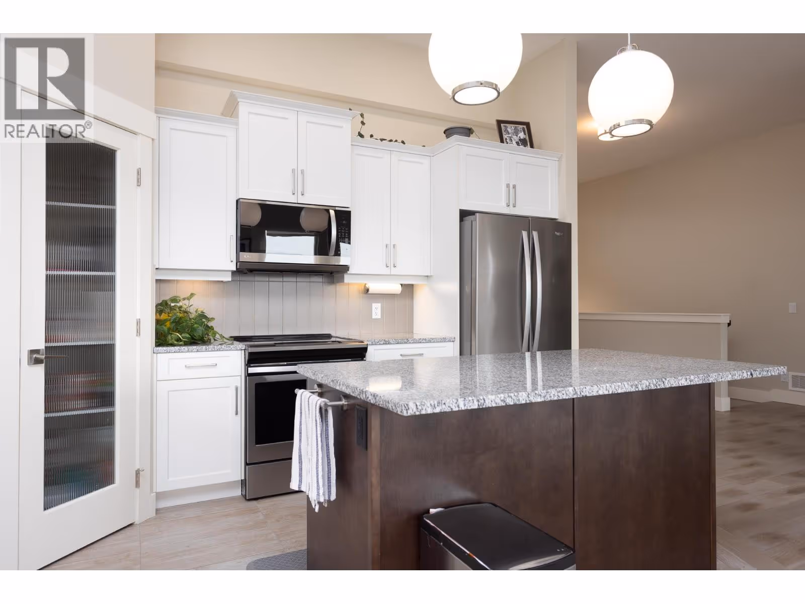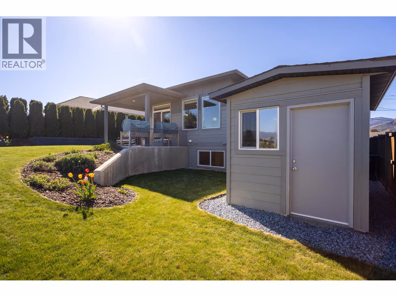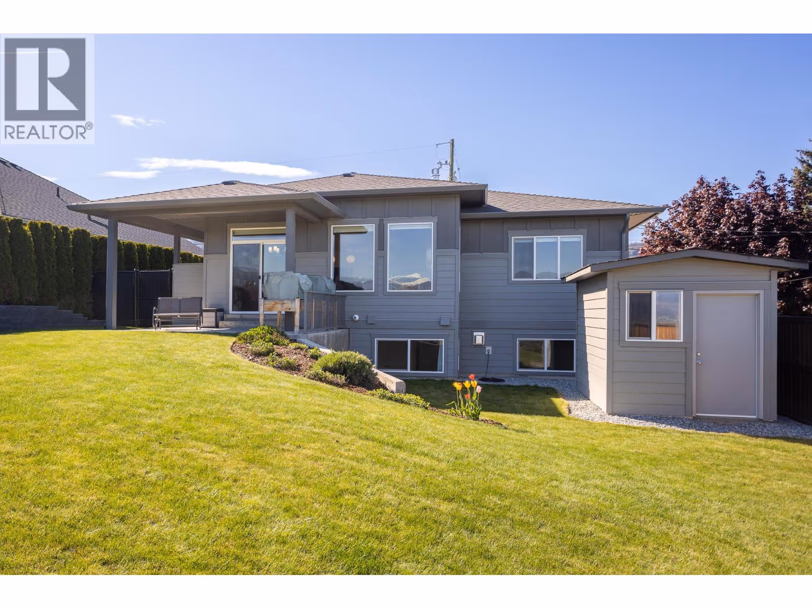 This modern home is set in peaceful Lakeview Heights with a LEGAL 2 BED SUITE mountain views and just a short walk to local vineyards and shopping! Inside you are greeted by hardwood floors and soaring ceilings that span through the open concept living space with large windows and 3-sided gas fireplace. The kitchen has been thoughtfully designed with granite counters, underlit soft close cabinets, walk-in pantry and is plumbed for a gas range. The main level is home to 3 spacious bedrooms including the primary suite with walk in closet and a 5-piece ensuite bath featuring quartz dual sink vanity + tile surround tub/shower combo. Convenient main floor laundry tucked away in the mud room leading to the double garage with built-in vac. Walk straight out to the covered patio with natural gas and continues to the fully fenced, private yard that backs agricultural land. Includes large shed for extra storage! Downstairs you’ll find a 4th bedroom, large unfinished storage area and another 3-piece bathroom with quartz countertops to match both main floor baths. The 2 bed, 1 bath legal suite has it's own yard and no access to your backyard. It's been finished with extra insulation & SONOpan for sound proofing, separate: electrical panel & hot water. The bright above ground windows, gas fireplace & entry closet are welcome additions. Home was finished with ethernet in all rooms, hi-eff furnace with built in air purifier + cost saving HRV, new driveway extension and 2 security cameras. (id:58842)