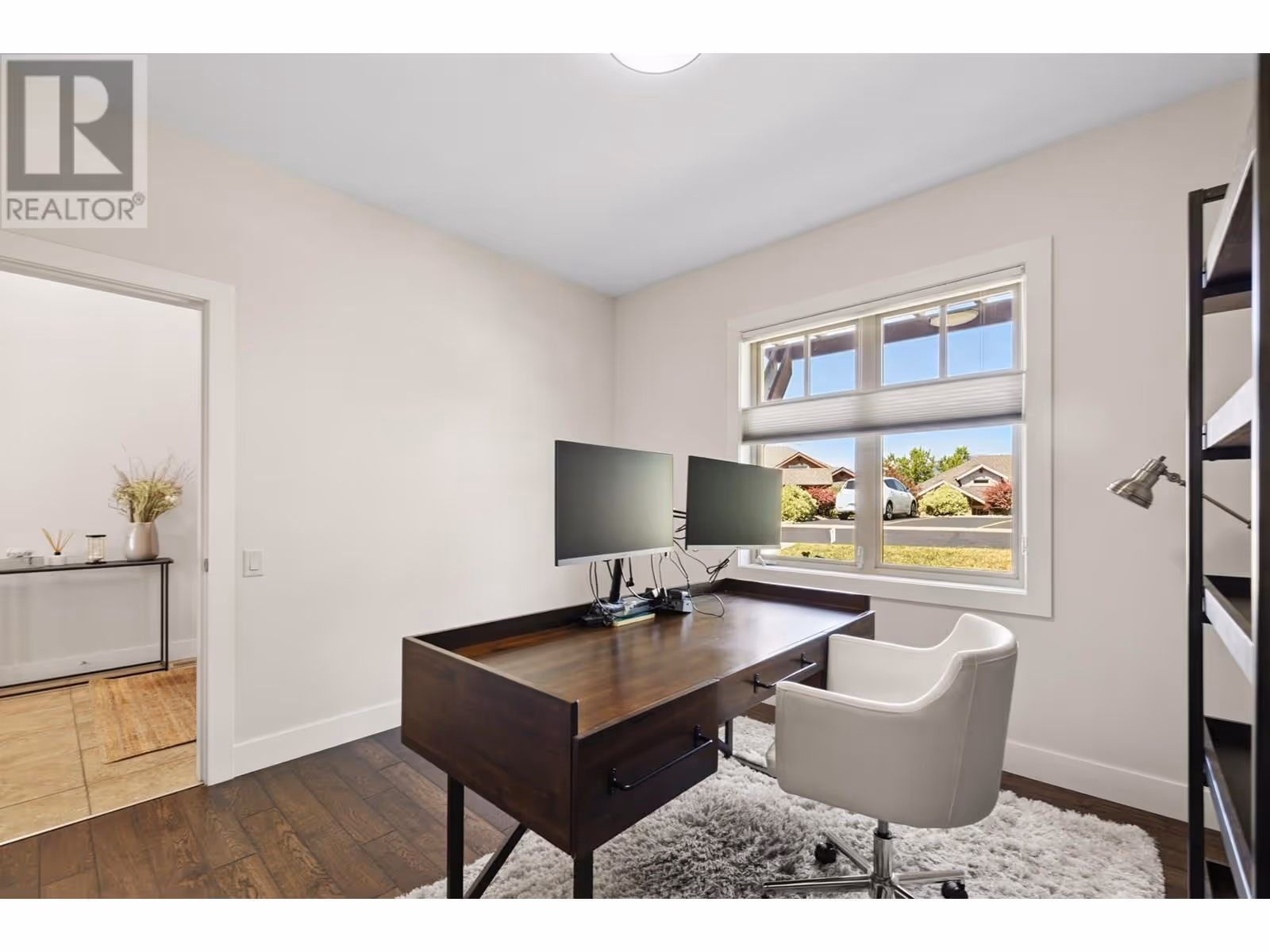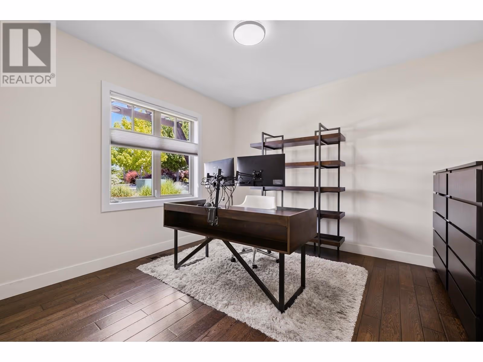 Perched at the top of prestigious Dilworth Mountain, this executive rancher townhome offers the perfect blend of luxury and privacy. Enjoy a peaceful setting with sweeping valley vistas from your private deck. The freshly painted main level welcomes you with a grand high-ceiling foyer and an open-concept living and dining area, perfect for entertaining. The gourmet kitchen boasts shaker-style cabinetry, granite countertops, a large island, and stainless steel appliances. The spacious primary suite includes a luxurious 5 piece ensuite with heated tile floors, while a versatile den could easily convert to an additional bedroom. The fully finished lower level is ideal for family living or hosting guests, complete with two more bedrooms, a full bathroom, and a large rec room with a built-in bar area. A separate entrance from the lower patio adds flexibility, and there’s plenty of extra storage throughout. All this just minutes from downtown Kelowna. (id:58842)