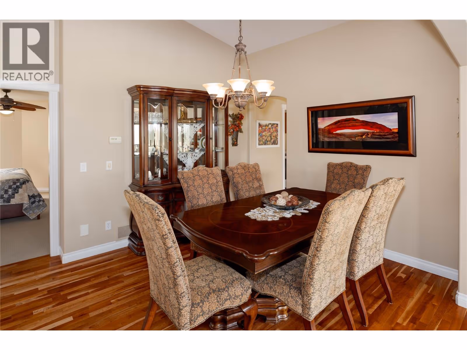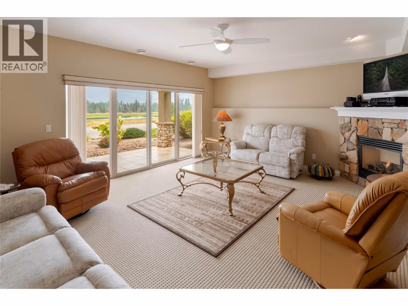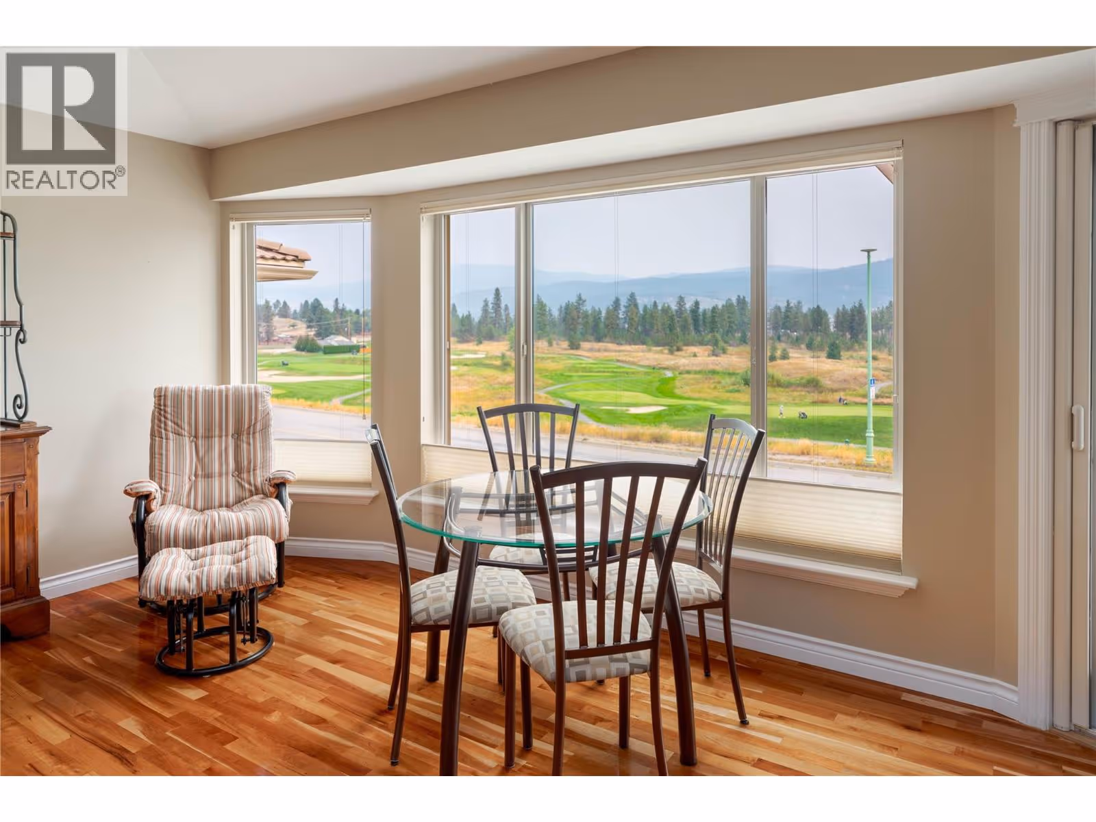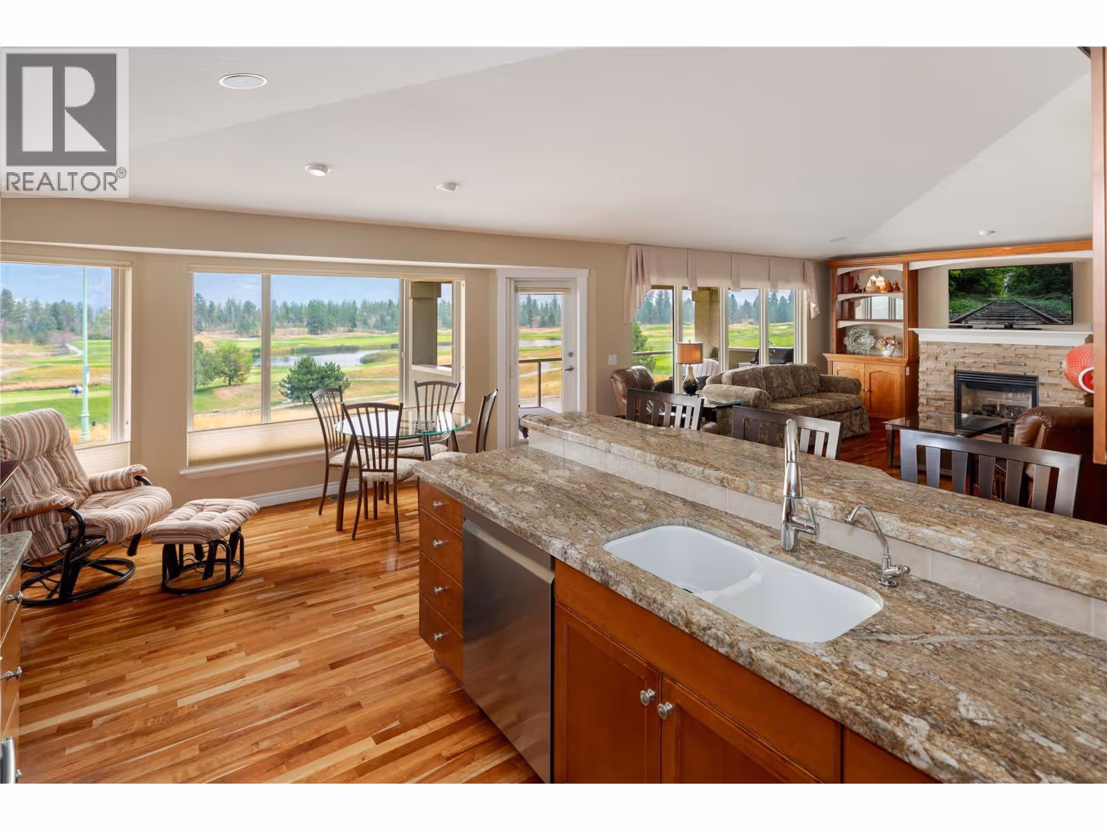 Immaculate & meticulously cared for, this 4 bedroom, 3 bathroom walk-out rancher offers the perfect blend of elegance, comfort & convenience in the heart of Quail Ridge. From the moment you arrive, pride of ownership is evident. Inside, the main level showcases hardwood flooring, vaulted ceilings & expansive windows framing uninterrupted golf course views. The kitchen is finished with granite countertops, stainless steel appliances & a casual breakfast nook, while the living area with gas fireplace flows seamlessly to the covered deck—ideal for morning coffee or evening relaxation. The primary suite is a private retreat, complete with walk-in closet & spa-inspired ensuite featuring a custom walk-in tile shower with bench. A formal dining area, powder room & convenient mudroom complete the main level. The lower level is equally inviting with a spacious family room, cozy second fireplace, 3 additional bedrooms, full bath, and walk-out access to the covered patio & low-maintenance landscaping. With Hunter Douglas blinds, epoxy garage floor, Duradek decking, water softener, reverse osmosis system & abundant storage, every detail has been thoughtfully maintained. This home captures the beauty of Okanagan living—panoramic golf course views from both levels, tranquil outdoor spaces & a prime location just minutes from UBCO, the airport & all amenities. (id:58842)