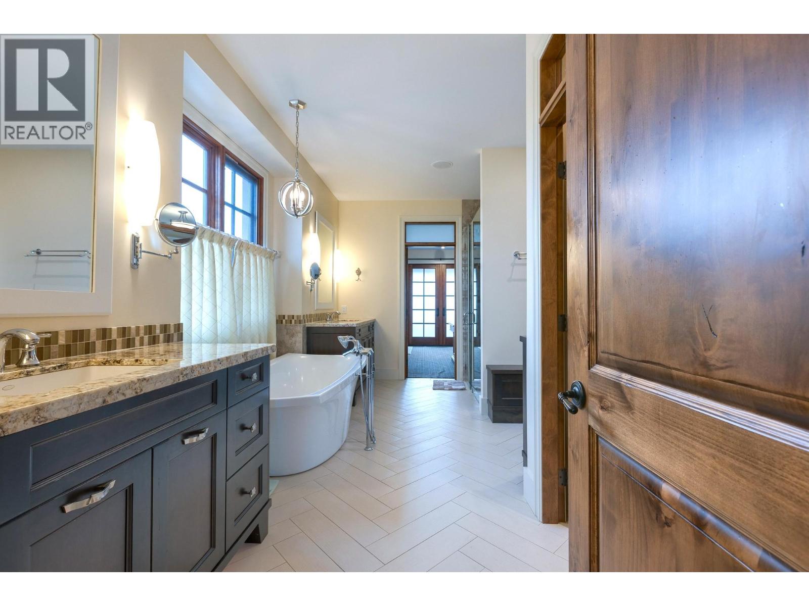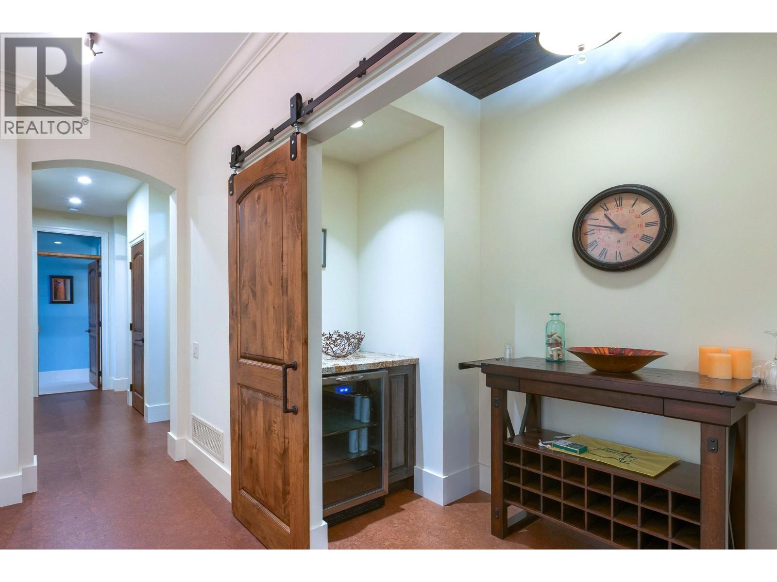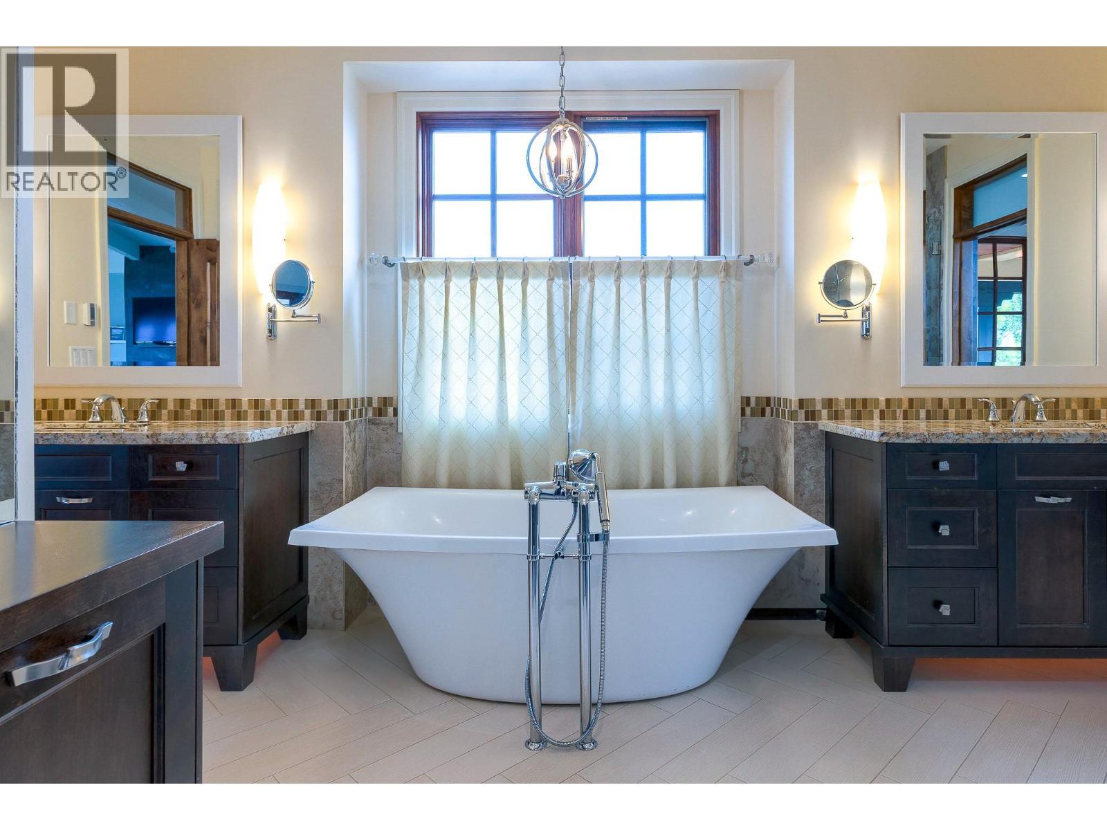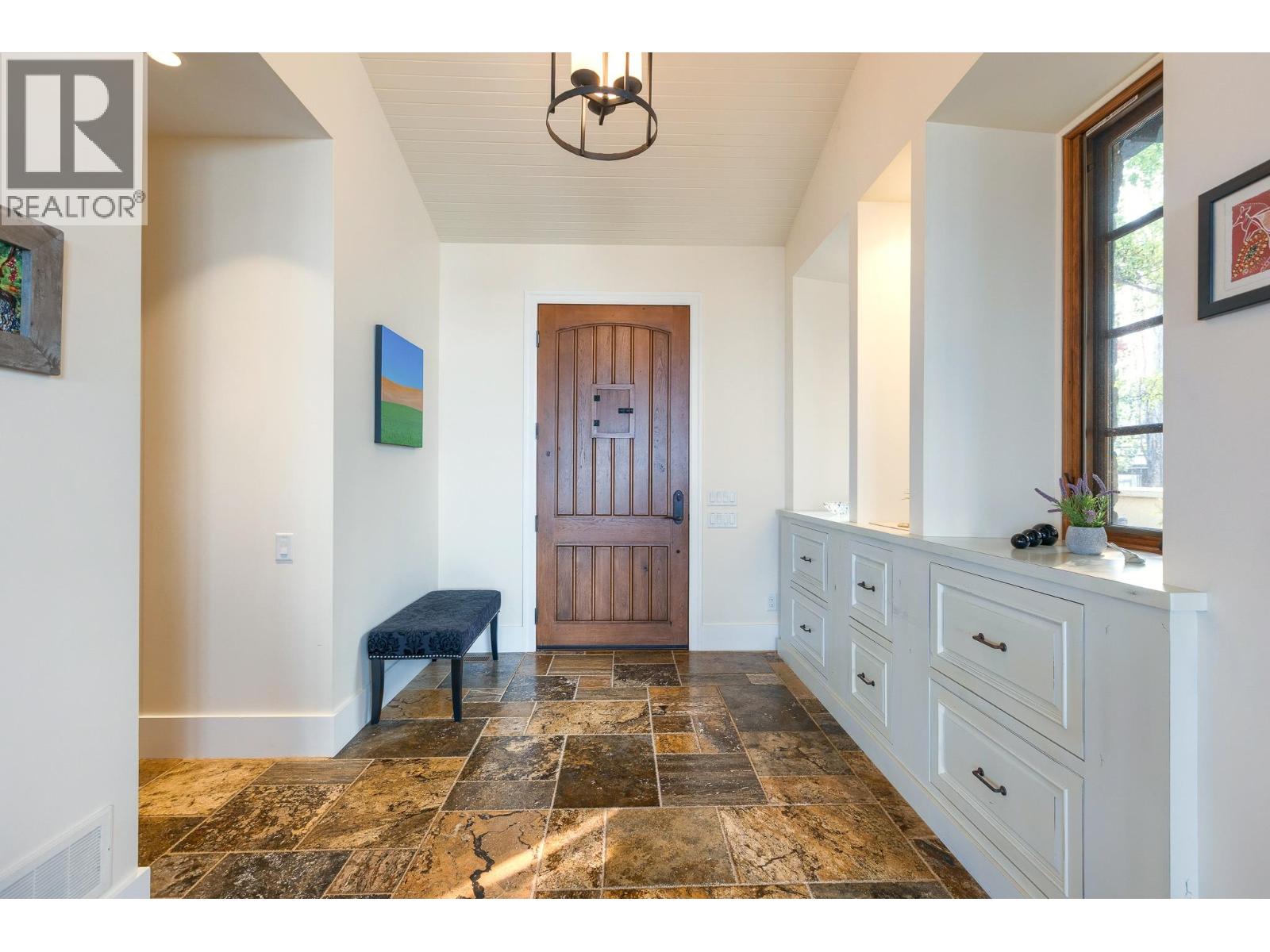 This extraordinary home on Dilworth Mountain is perfectly positioned to capture breathtaking panoramic lake, city, and mountain views. Arrive through the gated, private courtyard, where a tranquil water fountain sets the tone for the elegance within. Designed for both entertaining and everyday comfort, the home seamlessly blends indoor-outdoor living with soaring vaulted ceilings, expansive nano glass doors leading to a large deck, bringing the outdoors in. The gourmet kitchen is appointed with top-of-the-line appliances, granite counters, alder cabinetry, travertine finishes, and a pantry providing additional storage. The great room exudes warmth and relaxation with its floor-to-ceiling fireplace, exposed beams, and rich hardwood floors. Upstairs, the lavish primary suite is a sanctuary unto itself, featuring a lounge area with fireplace and French doors to a deck showing off the spectacular city and lake views. The fully equipped ensuite offers a double shower and stand-alone tub, complemented by an oversized walk-in closet, dressing room, and private laundry. A flex room off the ensuite provides space for an office/nursery and has its own private and shaded deck. The lower level boasts three bedrooms and two bathrooms, along with a cozy living room that flows directly to the pool deck. This level also includes a wet bar, fireplace, and secondary laundry. Outdoors, soak in the stunning views from any of the 5 decks/sitting areas, the sparkling pool, or by the stone fireplace. The yard is framed by lush landscaping and fruit trees, creating a private and peaceful retreat. Completing this exceptional property is a spacious double garage, offering ample room for vehicles and storage. (id:58842)