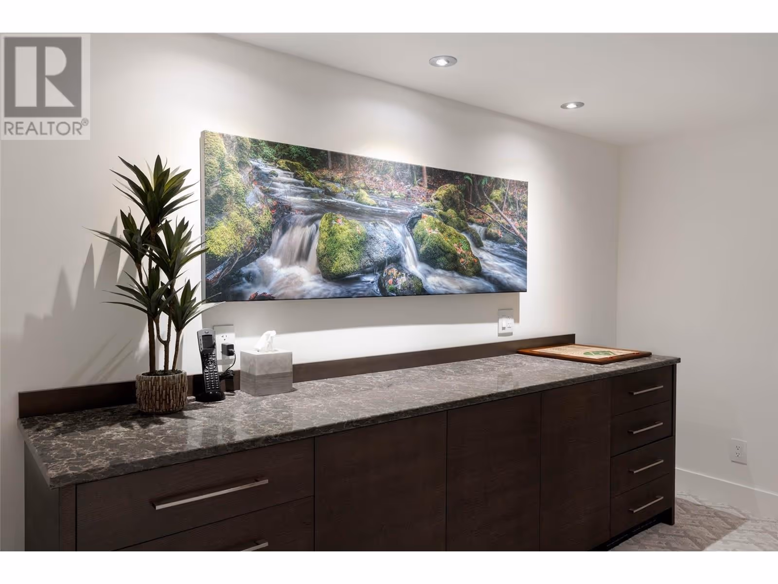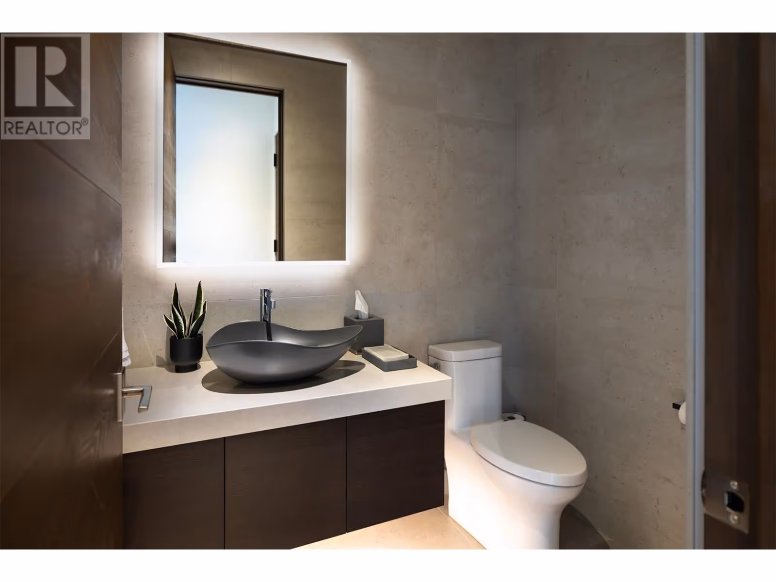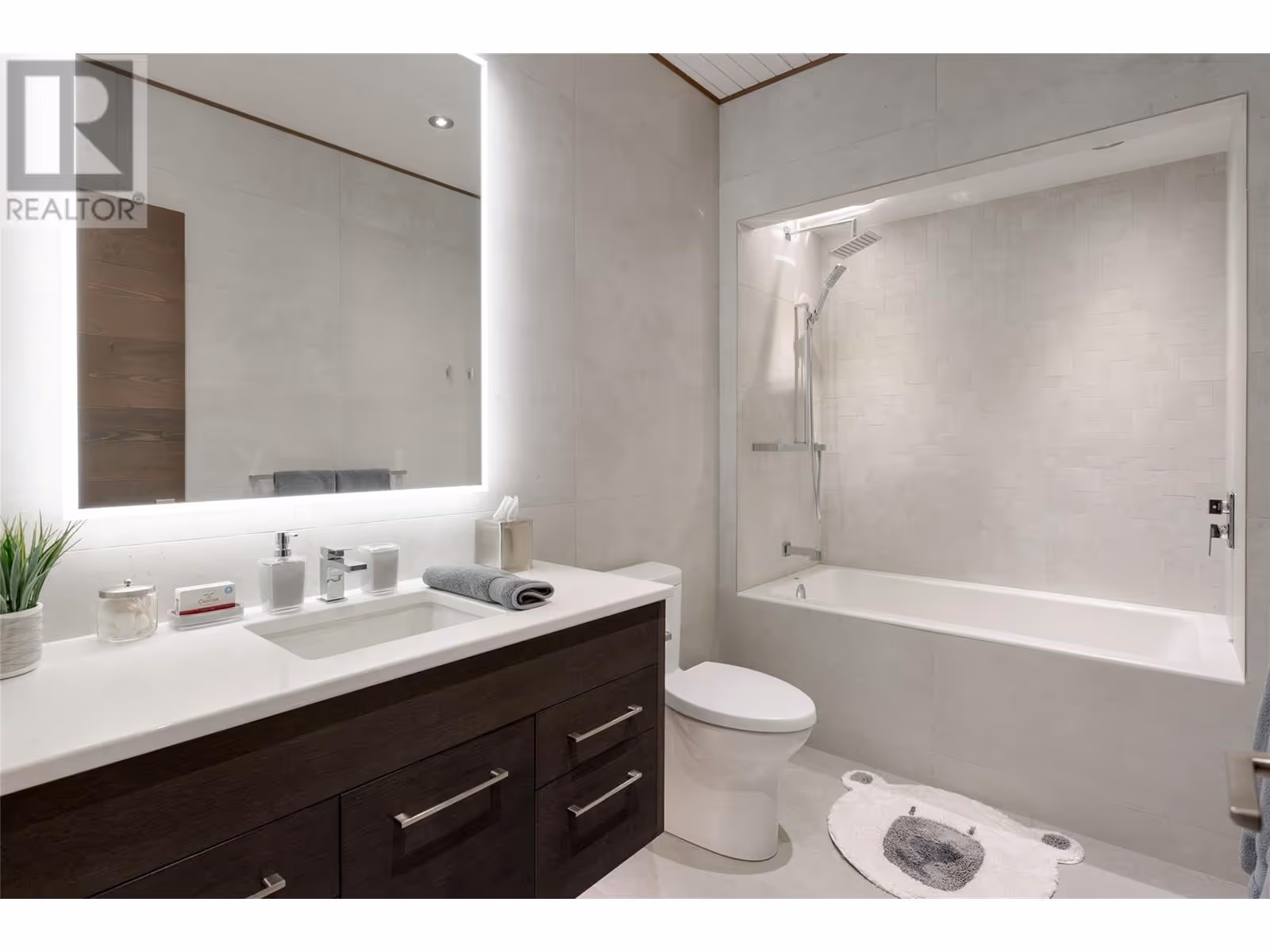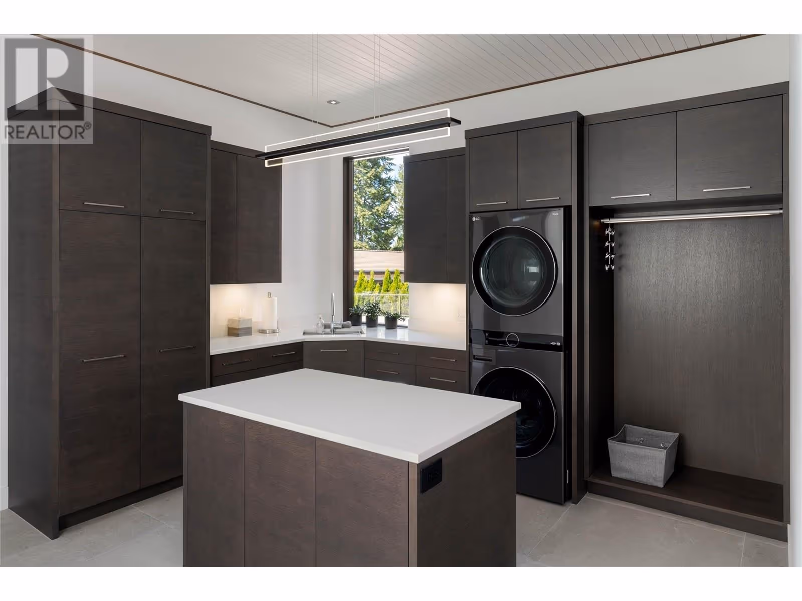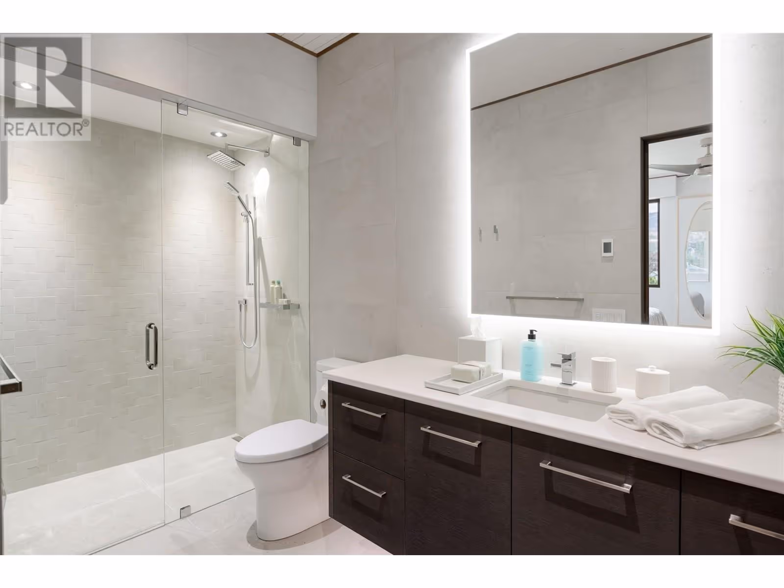 Custom SanMarc home on desirable Thacker Drive in Lakeview Heights. This property boasts exceptional attention to detail that is sure to impress. Expertly designed, it offers a remarkable layout inside & out for everyday living while maintaining its allure as a modern masterpiece.From nearly every room & the backyard, enjoy expansive, unobstructed Okanagan Lake views. A solid wood 12-ft pivot door welcomes you to the foyer with a 20-ft marble tiled entry wall leading to the catwalk on the 2nd level, connecting the 2 wings of the home. The great room boasts 23-foot ceilings, floor-to-ceiling windows, & an 80-inch linear gas fireplace. Gourmet kitchen w/ Carolyn Walsh-designed cabinetry, waterfall island, professional appliances & a window that fully retracts, creating a passthrough to the outdoor kitchen. Glass-enclosed 75+ bottle temperature-controlled wine room. Sliding doors on the main level open to a remarkable outdoor retreat: saltwater pool with auto cover, synthetic lawn, Jacuzzi hot tub, outdoor kitchen, $12K sound system, covered patio w/ glass ceiling. Luxurious main floor primary w/ pool access, spa-inspired 5-piece en suite with views of the lake, heated floors, custom closet, and a linear gas fireplace. Main floor living with elevator that accesses all three floors. Upstairs offers 4 large beds, all with en suites, and 2 featuring private lake view patios. Laundry on both levels. Oversized 3-car garage with built-ins, custom cabinetry, and prewired for EV. (id:58842)