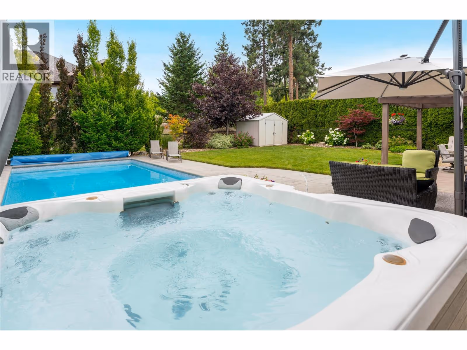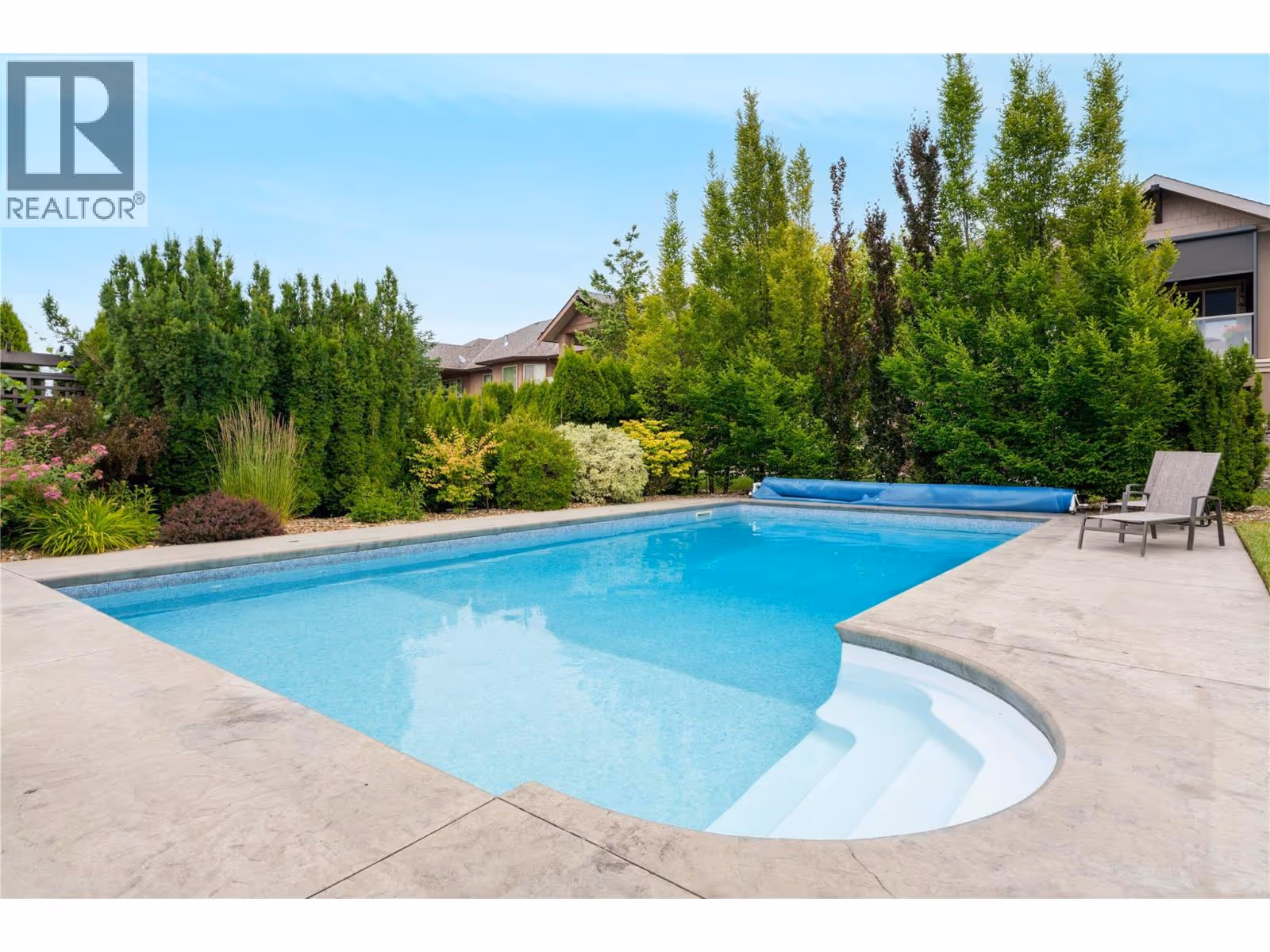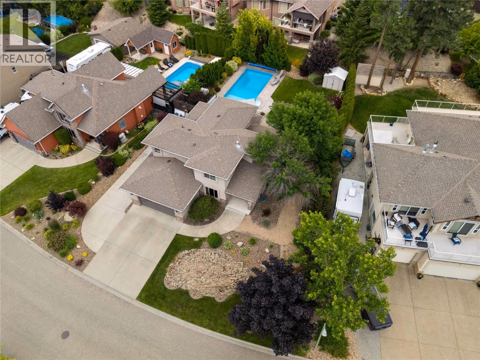 A truly exceptional family retreat in Dilworth Mountain! Positioned on a private 0.24-acre lot, this 3-storey home offers the ultimate Okanagan lifestyle with a seamless blend of indoor comfort & outdoor living. The open-concept main level is ideal for gathering with family & friends, featuring a chef-inspired kitchen with rich wood cabinetry, quartz counters & pantry — all oriented to overlook the sparkling saltwater pool. The bright living room is anchored by a cozy fireplace, while the dining area connects effortlessly to the expansive patio & private backyard oasis. The main floor primary suite is a peaceful retreat with a walk-in closet & spa-inspired ensuite, plus direct access to the hot tub for ultimate relaxation. Upstairs, you'll find two bedrooms, a full bathroom & a versatile den/flex room with charming arched doorways — perfect as a media room, playroom or office. The lower level offers two more bedrooms, a full bath, large family room, gym area & generous storage, providing exceptional flexibility for a growing family or guests. Outside, enjoy an entertainer’s dream backyard with lush lawn, pergola-covered dining space, hot tub & pool — perfect for summer days. Additional highlights include a double garage, RV & boat parking & a thoughtful main-level primary layout. Located minutes to schools, parks, shops, hiking & the lake — this Dilworth Mountain home offers a rare blend of elevated living & daily convenience in one of Kelowna’s most desirable neighbourhoods. (id:58842)