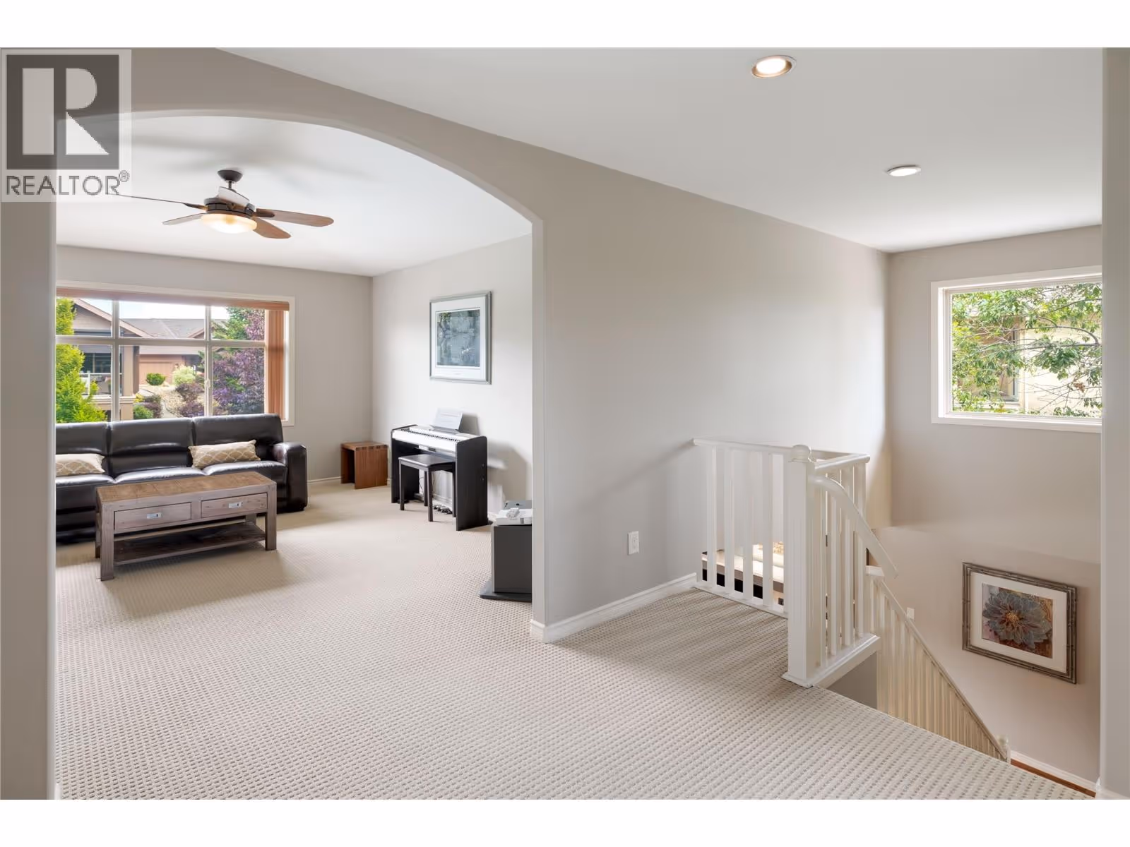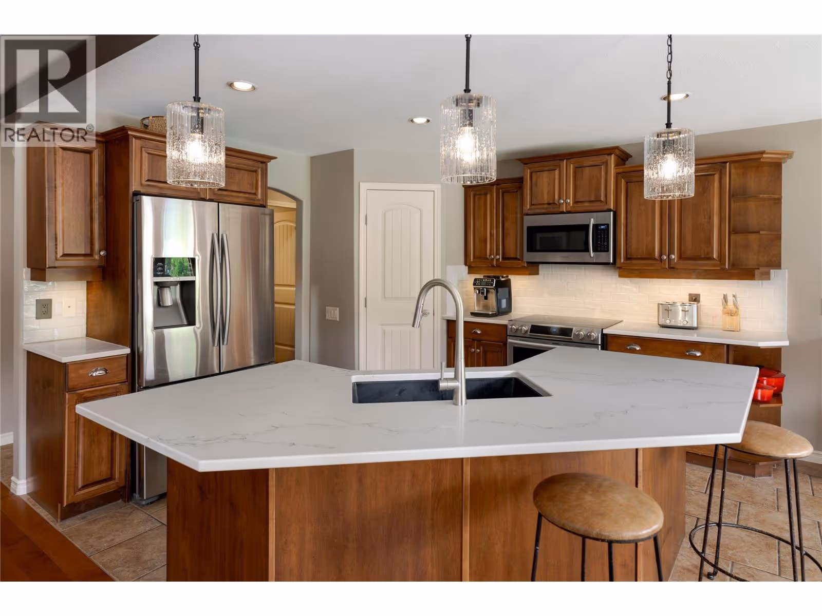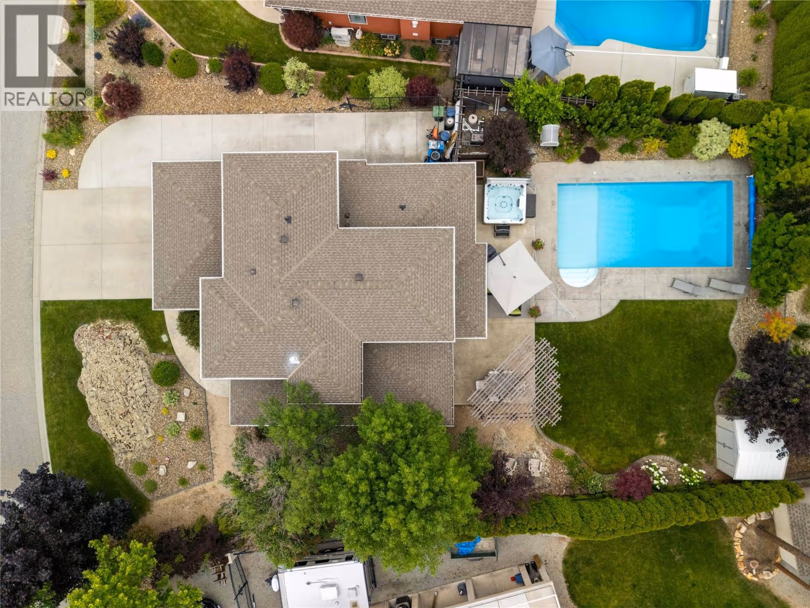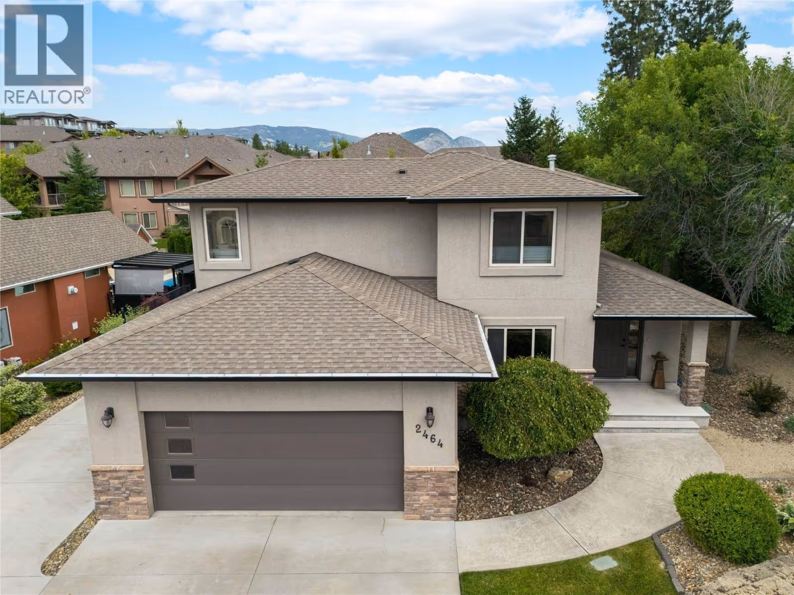 A truly exceptional family retreat in Dilworth Mountain! Positioned on a private 0.24-acre lot, this 3-storey home offers the ultimate Okanagan lifestyle with a seamless blend of indoor comfort & outdoor living. The open-concept main level is ideal for gathering with family & friends, featuring a chef-inspired kitchen with rich wood cabinetry, quartz counters & pantry — all oriented to overlook the sparkling saltwater pool. The bright living room is anchored by a cozy fireplace, while the dining area connects effortlessly to the expansive patio & private backyard oasis. The main floor primary suite is a peaceful retreat with a walk-in closet & spa-inspired ensuite, plus direct access to the hot tub for ultimate relaxation. Upstairs, you'll find two bedrooms, a full bathroom & a versatile den/flex room with charming arched doorways — perfect as a media room, playroom or office. The lower level offers two more bedrooms, a full bath, large family room, gym area & generous storage, providing exceptional flexibility for a growing family or guests. Outside, enjoy an entertainer’s dream backyard with lush lawn, pergola-covered dining space, hot tub & pool — perfect for summer days. Additional highlights include a double garage, RV & boat parking & a thoughtful main-level primary layout. Located minutes to schools, parks, shops, hiking & the lake — this Dilworth Mountain home offers a rare blend of elevated living & daily convenience in one of Kelowna’s most desirable neighbourhoods. (id:58842)