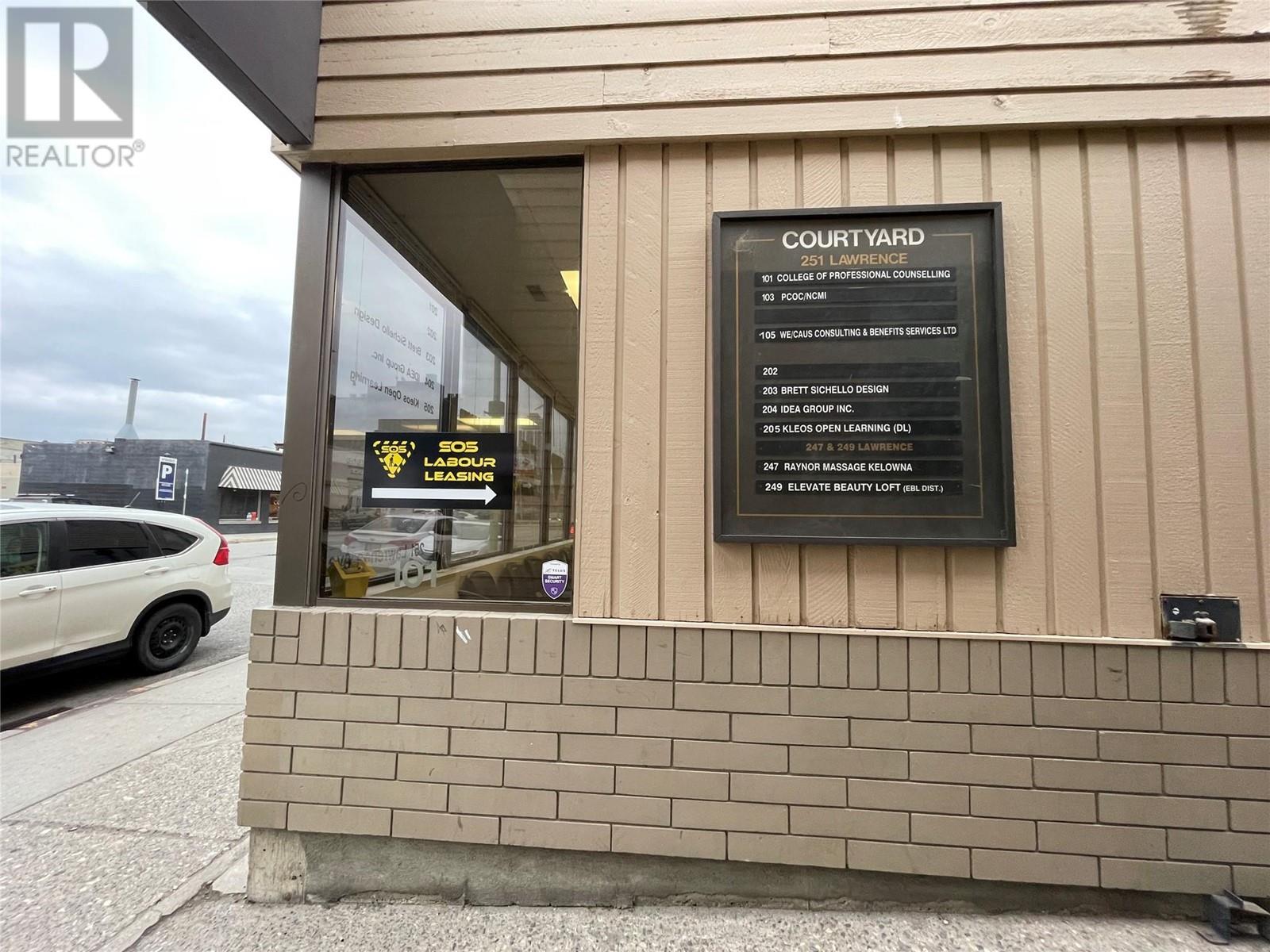 247 Lawrence Avenue is a 1,654 SF office space featuring six varied-sized offices, dual access from a charming courtyard and a convenient parking lot. Nestled in Kelowna's central downtown, adjacent to the new Water Street By the Park development, this unit offers the perfect blend of professional and leisure environments. Just steps from the beach and numerous restaurants, it includes essential amenities like a kitchen and washroom. Lease is triple net. Gross monthly rent listed includes additional rent estimated at $7.00 per square foot for 2024. (id:58842)