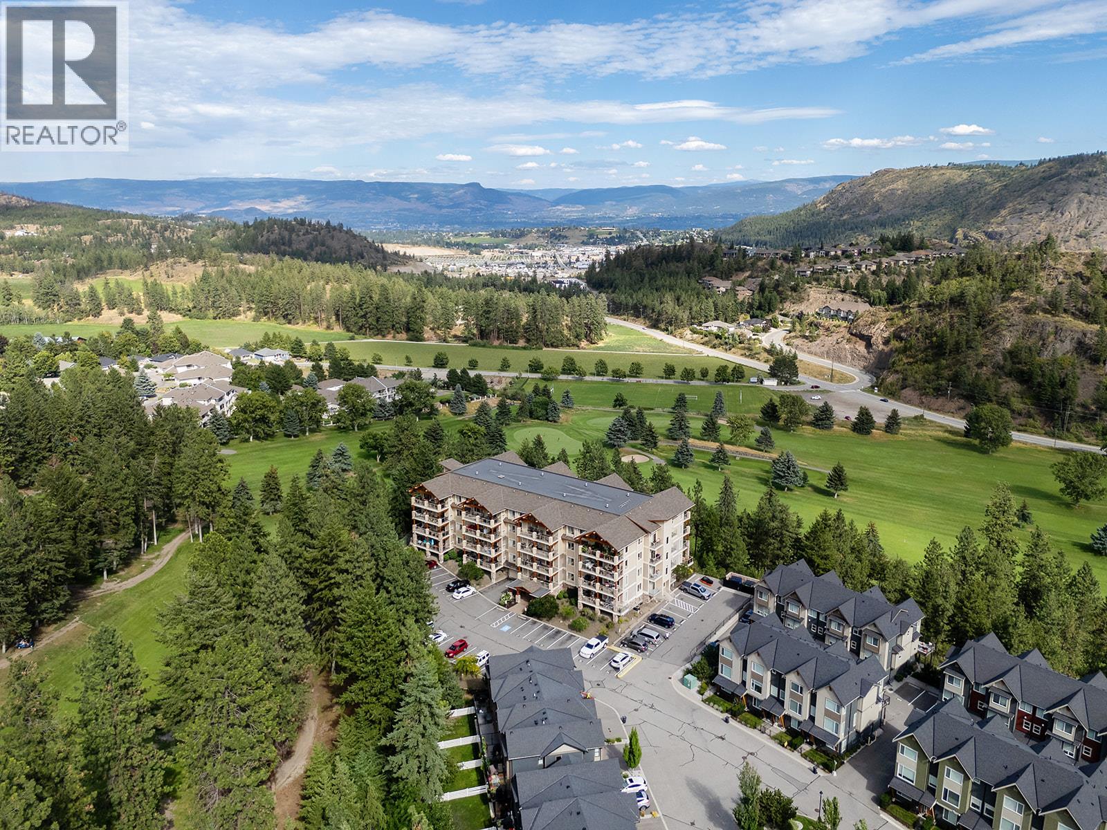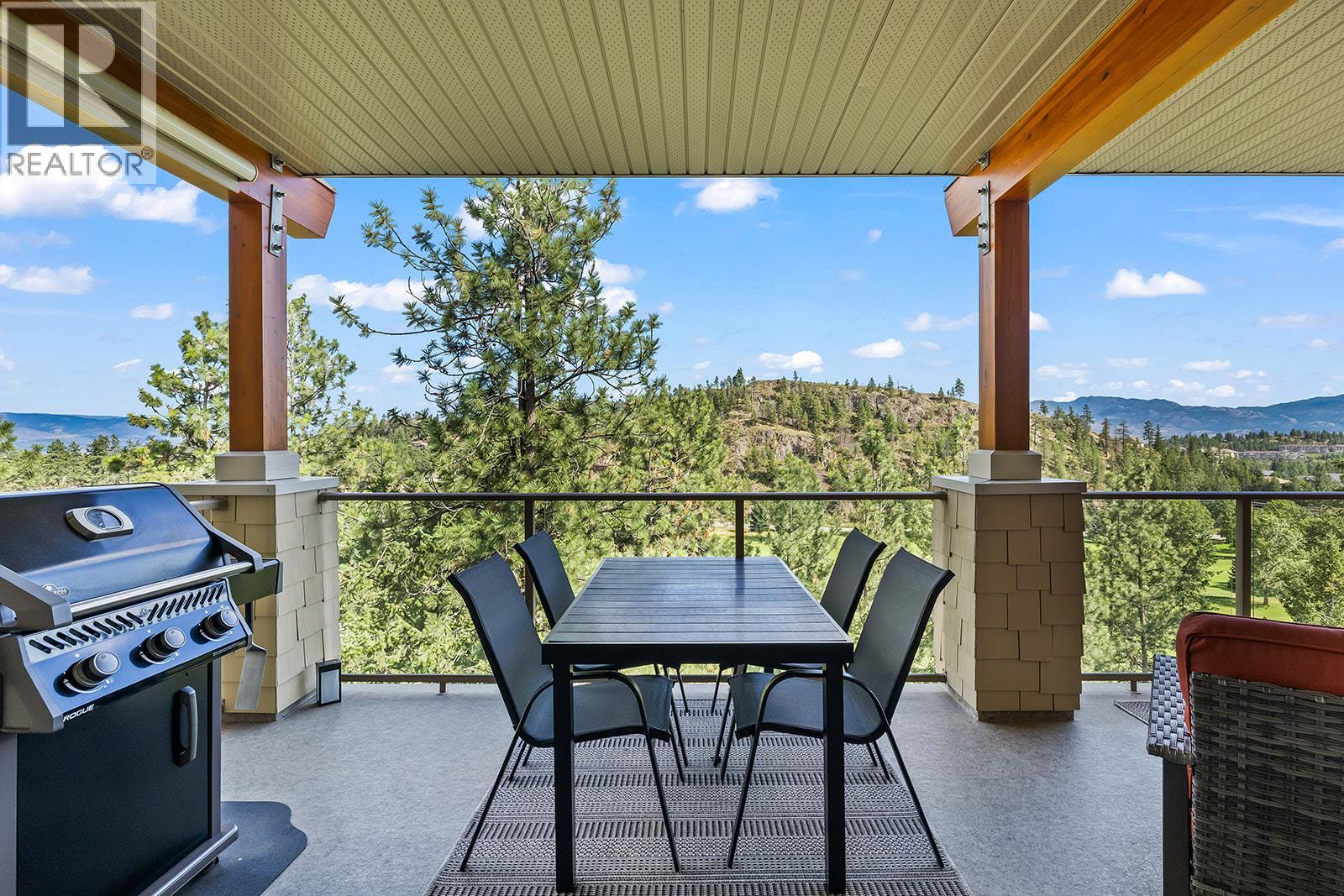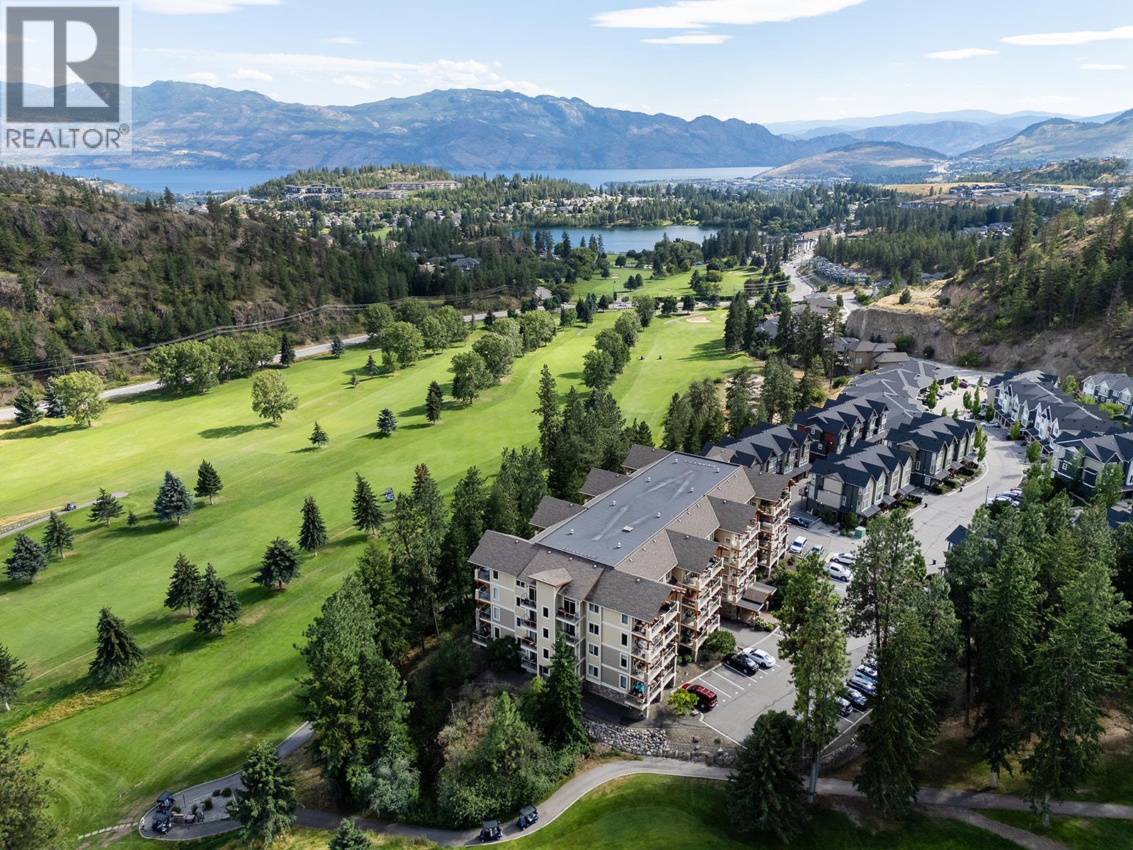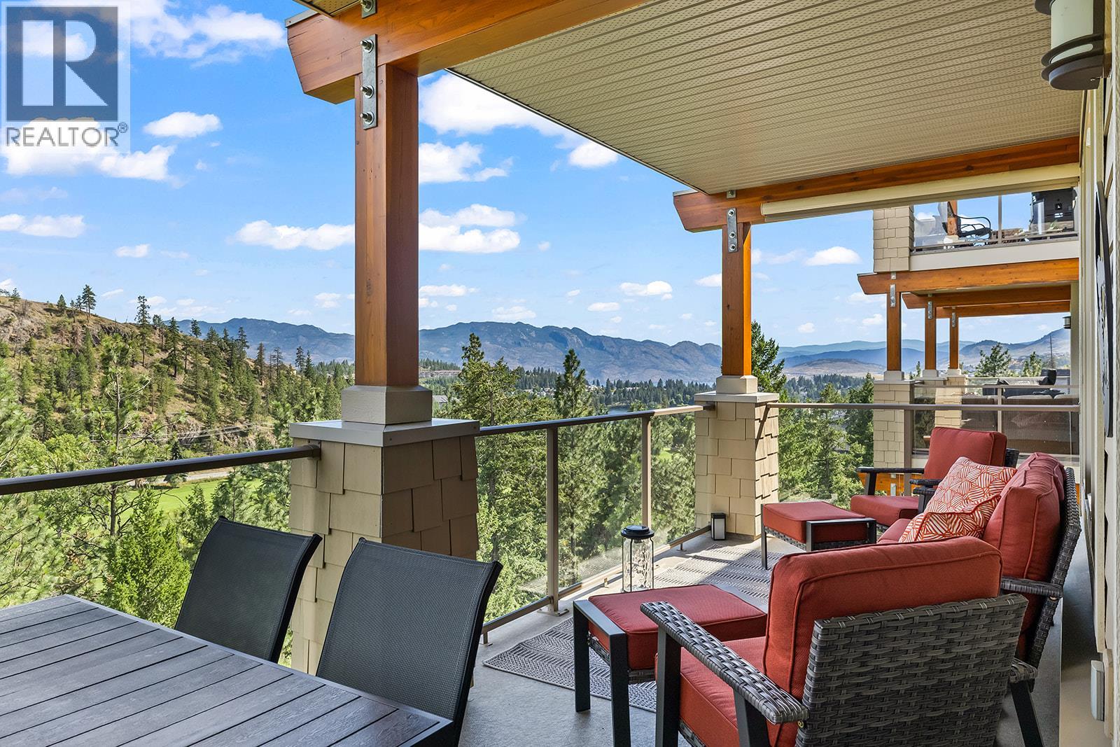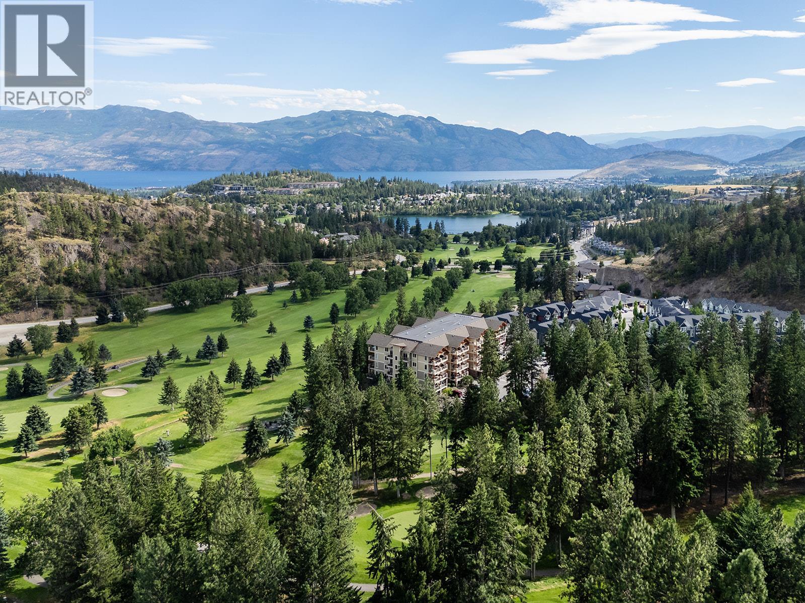Welcome to this stylish 2 bedroom, 2 bathroom TURN-KEY condo offering breathtaking views that capture the best of the Okanagan lifestyle. Enjoy panoramic vistas on your expansive covered deck —from Shannon and Okanagan Lakes to the south, to the rolling greens of the surrounding golf course, and sparkling city lights to the north. Inside, high ceilings and large windows create a bright, airy feel, enhanced by tasteful furniture purchased in 2023 (yes, it can stay!) fresh paint, newer carpet, upgraded appliances, modern light and plumbing fixtures, custom window coverings, and a stunning built-in cabinet with a statement wall treatment. West Coast lodge-style architecture defines the exterior, with cedar beams and shaker-style siding, while Tuscan-inspired touches inside include granite countertops, basin sinks, crown mouldings, and a charming arched niche with recessed lighting. Located at Eagle Terrace next to Shannon Lake Golf Course, you’ll enjoy more than just great golf—dine out steps from home at Courses Restaurant and soak in the beauty and convenience of this unique location. (id:58842)