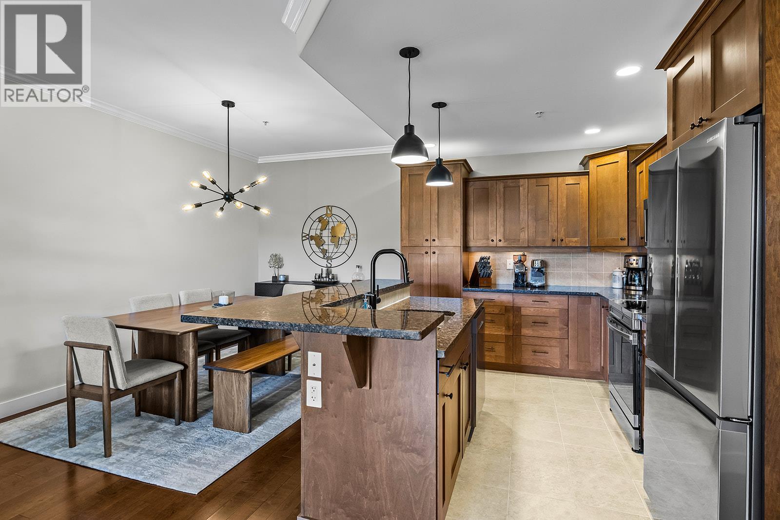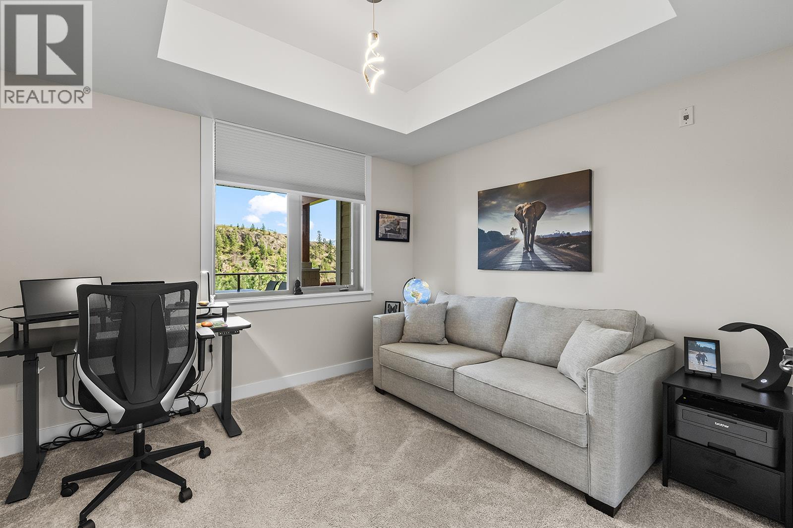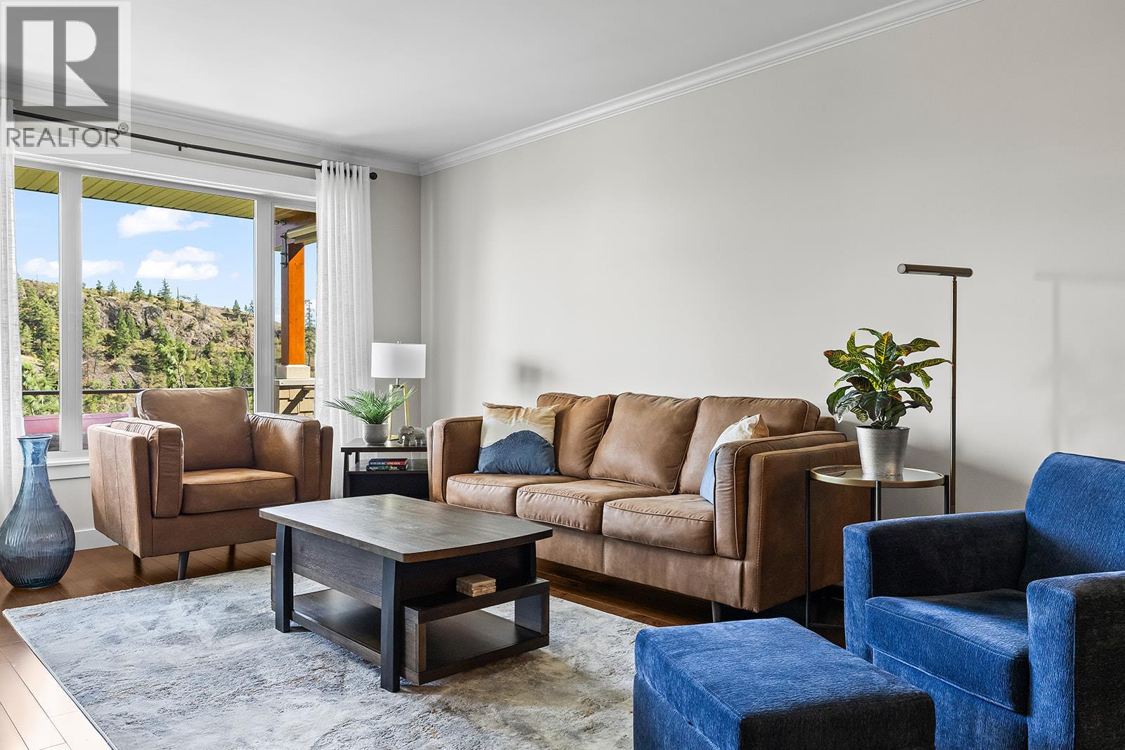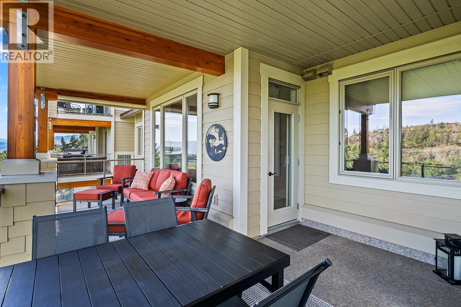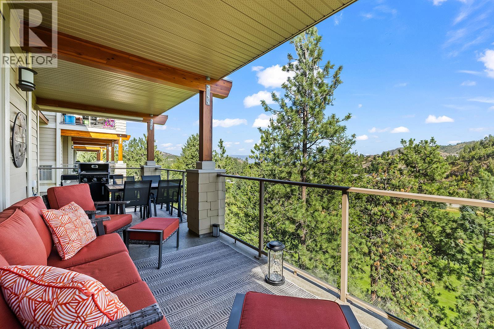 Welcome to this stylish 2 bedroom, 2 bathroom TURN-KEY condo offering breathtaking views that capture the best of the Okanagan lifestyle. Enjoy panoramic vistas on your expansive covered deck —from Shannon and Okanagan Lakes to the south, to the rolling greens of the surrounding golf course, and sparkling city lights to the north. Inside, high ceilings and large windows create a bright, airy feel, enhanced by tasteful furniture purchased in 2023 (yes, it can stay!) fresh paint, newer carpet, upgraded appliances, modern light and plumbing fixtures, custom window coverings, and a stunning built-in cabinet with a statement wall treatment. West Coast lodge-style architecture defines the exterior, with cedar beams and shaker-style siding, while Tuscan-inspired touches inside include granite countertops, basin sinks, crown mouldings, and a charming arched niche with recessed lighting. Located at Eagle Terrace next to Shannon Lake Golf Course, you’ll enjoy more than just great golf—dine out steps from home at Courses Restaurant and soak in the beauty and convenience of this unique location. (id:58842)