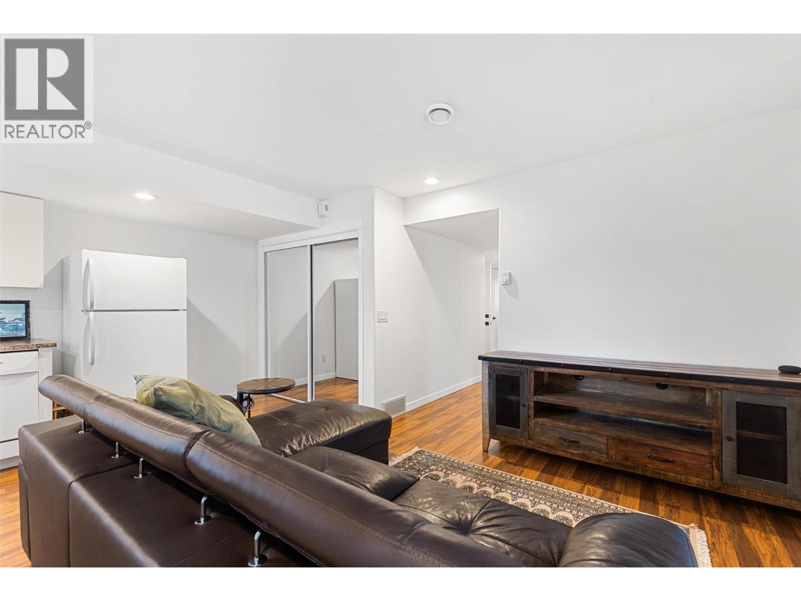 Tucked into the desirable Smith Creek neighbourhood, this well-maintained 4 bed, 3 bath home offers move-in ready comfort surrounded by nature. Located steps from Wild Horse Park with walking trails and disc golf, and minutes to Shannon Lake, golf, shopping, and amenities. The main level welcomes you with high ceilings, hardwood floors, and large windows framing mountain views. The open-concept living and dining areas feature a floor-to-ceiling porcelain tile fireplace, creating a warm gathering space. From the dining area, step onto the covered patio to enjoy southwest exposure and scenic views. The kitchen blends function and style with maple cabinetry, quartz countertops, tile backsplash, peninsula seating for four, and a corner pantry. A coffee bar and direct access to the covered upper deck make it ideal for entertaining or enjoying morning coffee outdoors. The primary suite offers a walk-in closet with built-ins and a 4-piece ensuite with double vanity. A second bedroom and full bath complete the main level. Downstairs includes two additional bedrooms and a versatile family room with kitchenette and separate entrance, ideal for guests or extended family. Outside, enjoy a fully fenced yard with mature cedar hedging, landscaped gardens, a storage shed, RV parking, and multiple outdoor living areas including an upper deck and lower patio. A double garage with heating, cooling, and 225-amp service completes this Smith Creek home. (id:58842)