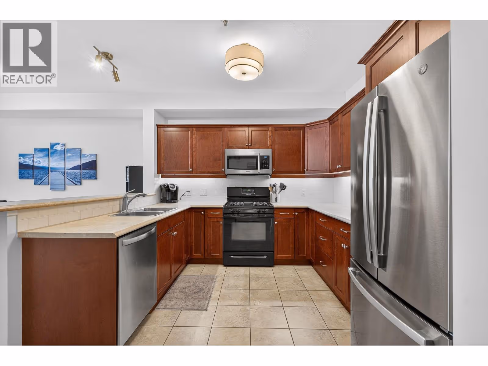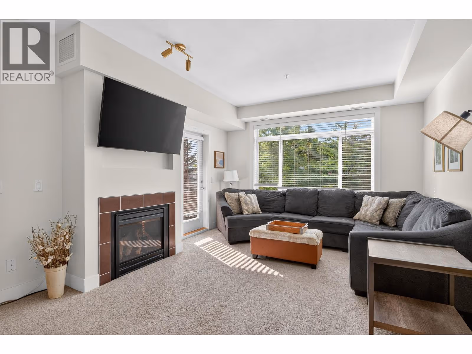 Welcome to Winterra at The Lakes! This stylish unit combines space, comfort, and an inviting open-concept design. Oversized windows fill the home with natural light, creating a bright and airy atmosphere that’s sure to impress. Since purchasing, the sellers have added fresh paint, new light fixtures, a new fridge and dishwasher, and have repaired the evaporator coil and motor on the AC unit, ensuring both modern style and functionality. The spacious kitchen is a standout, featuring a gas stove and abundant cabinetry, and plenty of storage, perfect for both everyday living and entertaining. Seamlessly connected, the dining and living areas are anchored by a cozy gas fireplace, while the balcony features a gas BBQ hookup which offers the ideal spot to unwind in the sun or host family and friends. The thoughtful layout includes a generously sized bedroom and full bathroom, blending functionality with comfort. Year-round ease is ensured with gas forced-air heating, central A/C, and included window coverings. As part of Winterra, you’ll also enjoy access to a clubhouse with fitness room and guest suite. The community is pet-friendly (large breeds okay) and ideally located close to renowned wineries, golf, skiing, the airport, and UBCO. A perfect blend of convenience, style, and location, this home offers a lifestyle you’ll love. (id:58842)