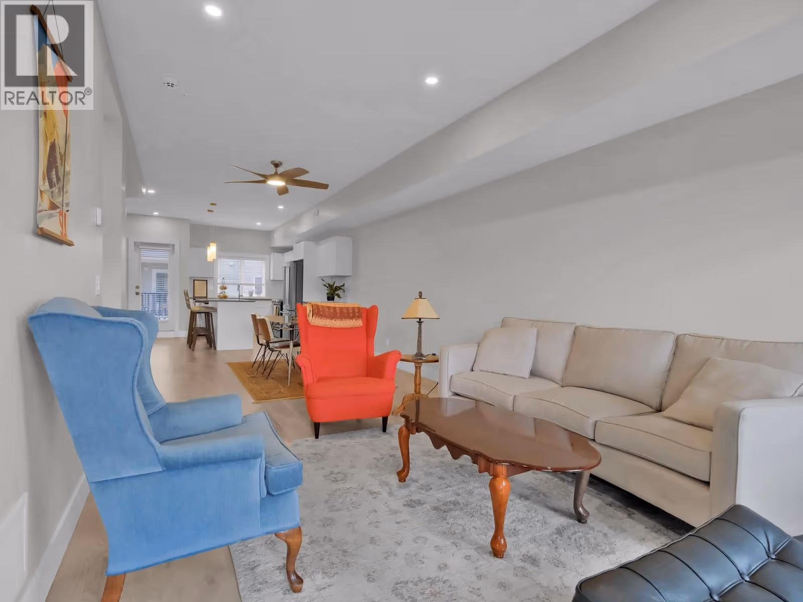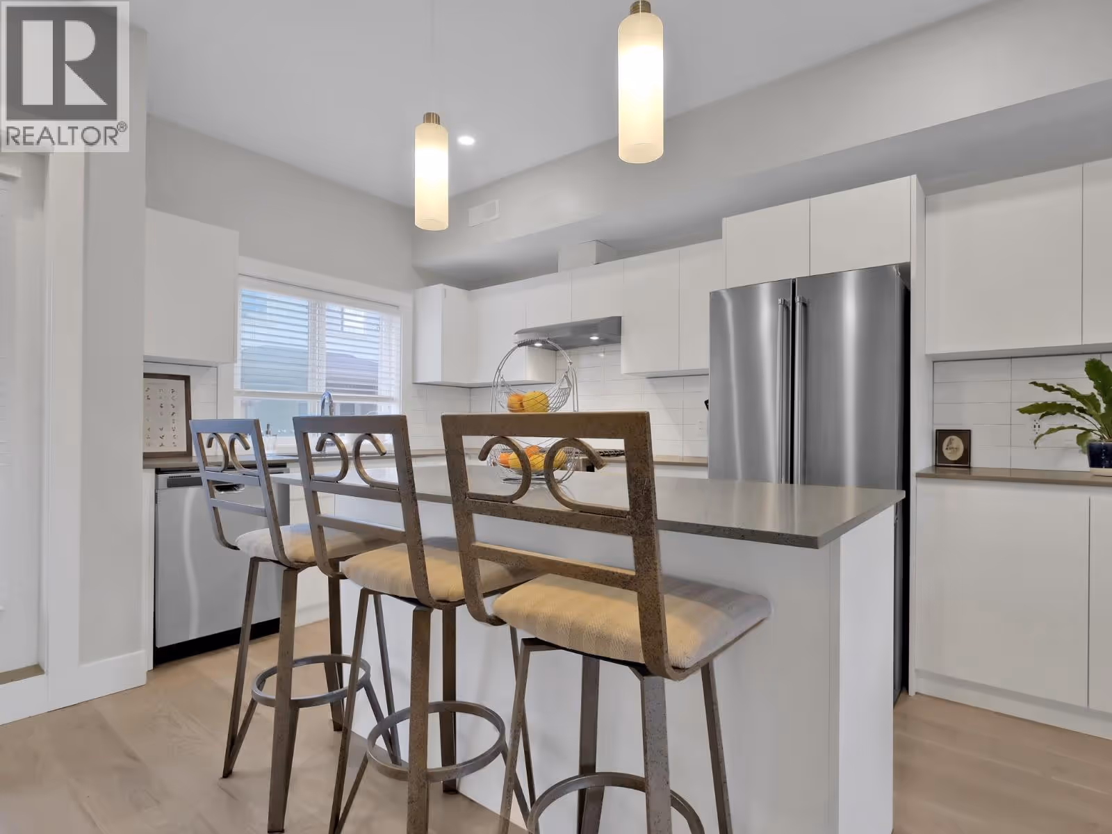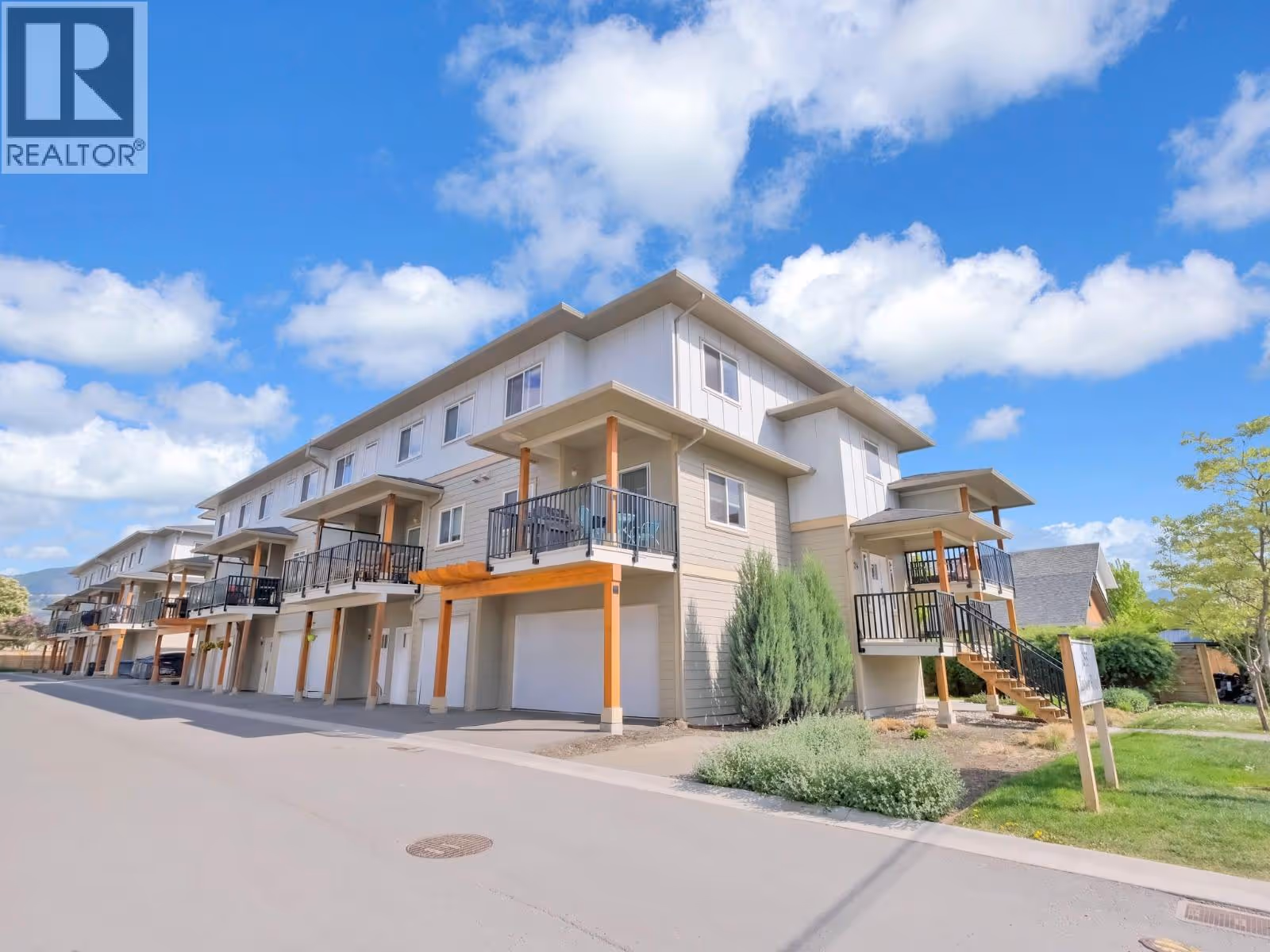 Experience the best of modern living and the Okanagan lifestyle in this bright 3-bedroom, 2.5-bath townhome built in 2019. The open-concept main floor features 9-foot ceilings, abundant natural light, and a designer kitchen with quartz counters, soft-close cabinetry, a gas range, and a large island ideal for gatherings. The oversized primary suite offers a relaxing escape with a walk-in closet and a spa-like ensuite with tile flooring and dual undermount sinks. Three distinct outdoor spaces—two covered decks and a private lower patio—provide perfect spots for morning coffee, BBQs, or winding down after a day outdoors. Upgrades include ceiling fans, an extended patio, and a garage finished with laminate flooring, perfect for a home gym or hobby space. Situated minutes from Mission Creek Park’s hiking and biking trails, yet close to schools, shopping, and amenities, this home offers a seamless balance of convenience and recreation. Whether you’re exploring local trails, enjoying nearby cafes, or entertaining at home, this property puts the Okanagan lifestyle at your doorstep. (id:58842)