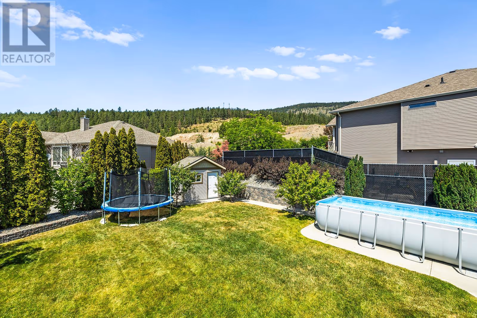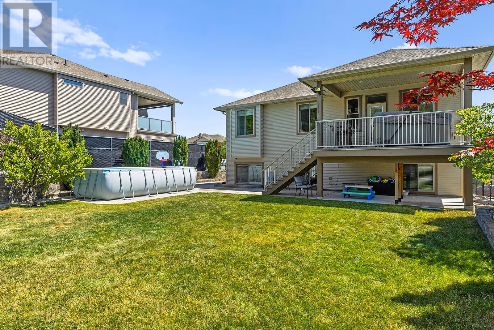 This perfect family home, set in a tranquil family neighbourhood is the total package – modern upgrades, a private yard, and direct access to endless outdoor adventure. Welcome to this bright and airy 5 bedroom, 3 bathroom walk-up rancher, perfectly perched on a quiet cul-de-sac in the catchment of West Kelowna’s top schools. The ideal family layout features 3 bedrooms, laundry, kitchen, and living room upstairs plus 2 more bedrooms and a massive rec room downstairs – with suite potential. Outside, enjoy a huge front balcony to soak in sun and views in addition to your covered back deck with natural gas hook-up and hot tub adding to your outdoor Oasis. Grill or soak in the spa with a perfect vantage-point of the kids as they can splash in the pool, bounce on the trampoline (yes, it can stay!), and snack on nectarines, apples, and cherries from your own fruit trees. Tall cedars surround the yard for ultimate privacy. Inside, no detail was overlooked in the remodel - from custom wall treatments, to glass railings, to under cabinet lighting. The kitchen features a walk-in pantry, island, upgraded appliances and a coffee bar. Premium finishes were used throughout including luxury vinyl plank flooring, soft-close cabinets, Napoleon gas fireplace with tile surround, and quartz countertops. With ample parking and hiking and biking trails steps from your driveway, this home is designed for the active Okanagan family, and won’t last long. (id:58842)