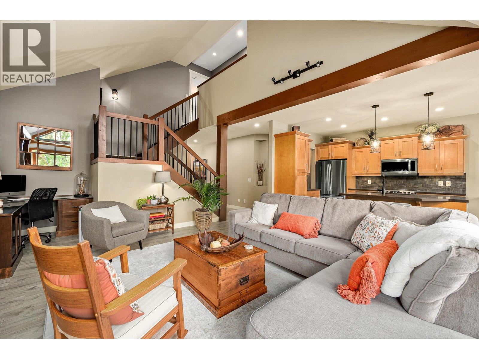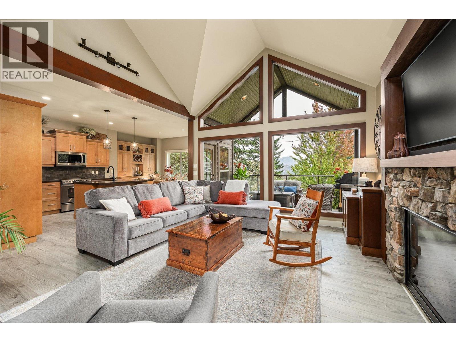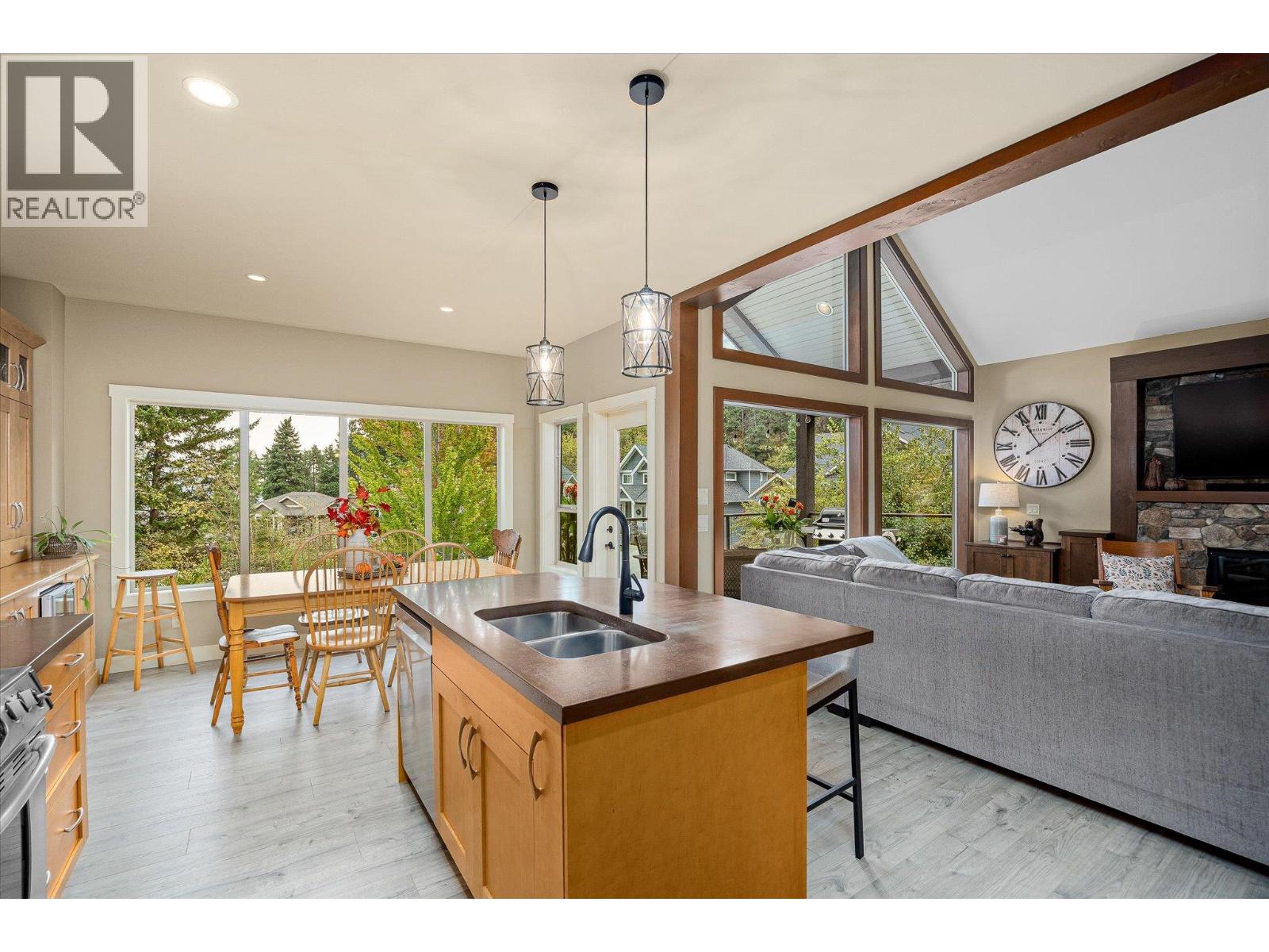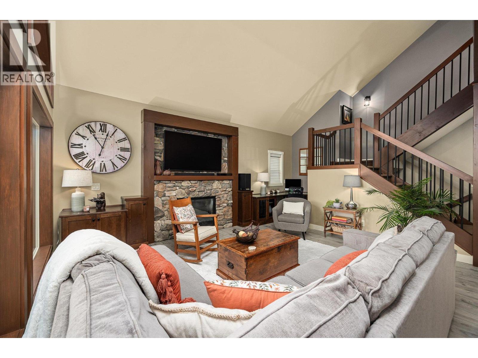 Exceptional 7-bedroom, 4-bath home in Tallus Ridge! Character, warmth, and quality define every inch of this expansive 3,400 sq. ft. residence. Step inside to a bright living space with soaring 16-foot ceilings, a striking stone fireplace, and expansive windows overlooking the pool-sized yard. The kitchen is designed for family living and entertaining, featuring solid wood built-in cabinetry, a large adjacent laundry and pantry, and plenty of space to gather. The king-sized main floor primary retreat offers a spa-like ensuite with a deep soaker tub and large tiled shower. A dedicated office or bedroom plus a full bath complement this level. Upstairs, two more spacious bedrooms and a full bath await, while a versatile flex room below offers the option of a fifth bedroom, gym, or media room. The lower level is perfect for generational living or income, with a 2-bedroom daylight walk-out in-law suite boasting high ceilings, a private patio, its own driveway, and a cozy gas fireplace. THIS is a home that breaks the mold of ‘builder white’ and shows the distinction of a home built to last. Outside, mature landscaping, perennial beds, and fruit trees create a private oasis backing onto ecological land, with no neighbours on three sides. Nestled in Tallus Ridge, the perfect community for active families, you’ll enjoy endless biking and hiking trails, a wonderful park, and proximity to fantastic schools. This home truly stands apart. (id:58842)
