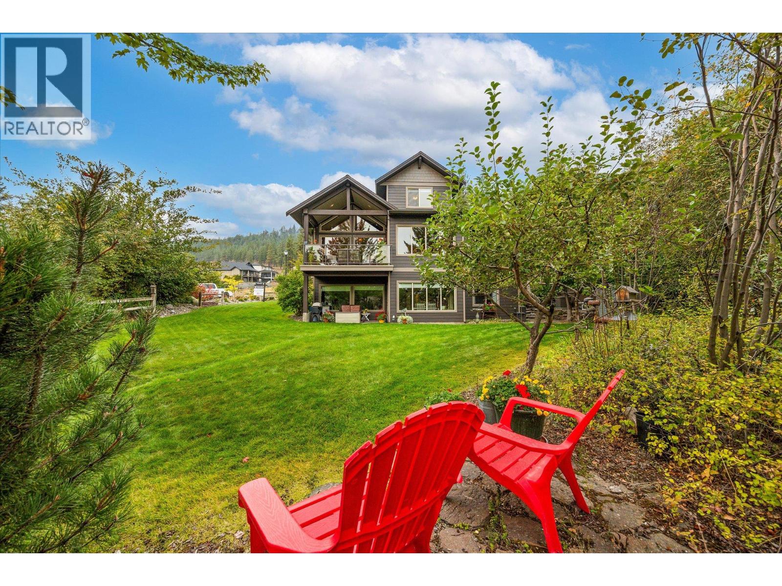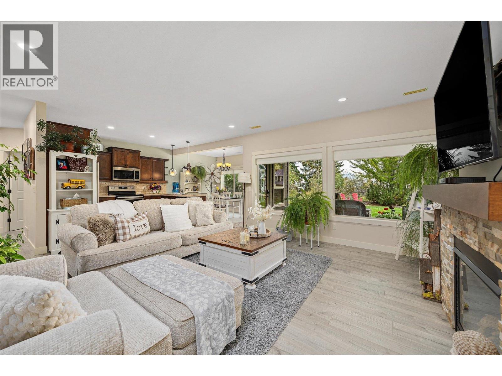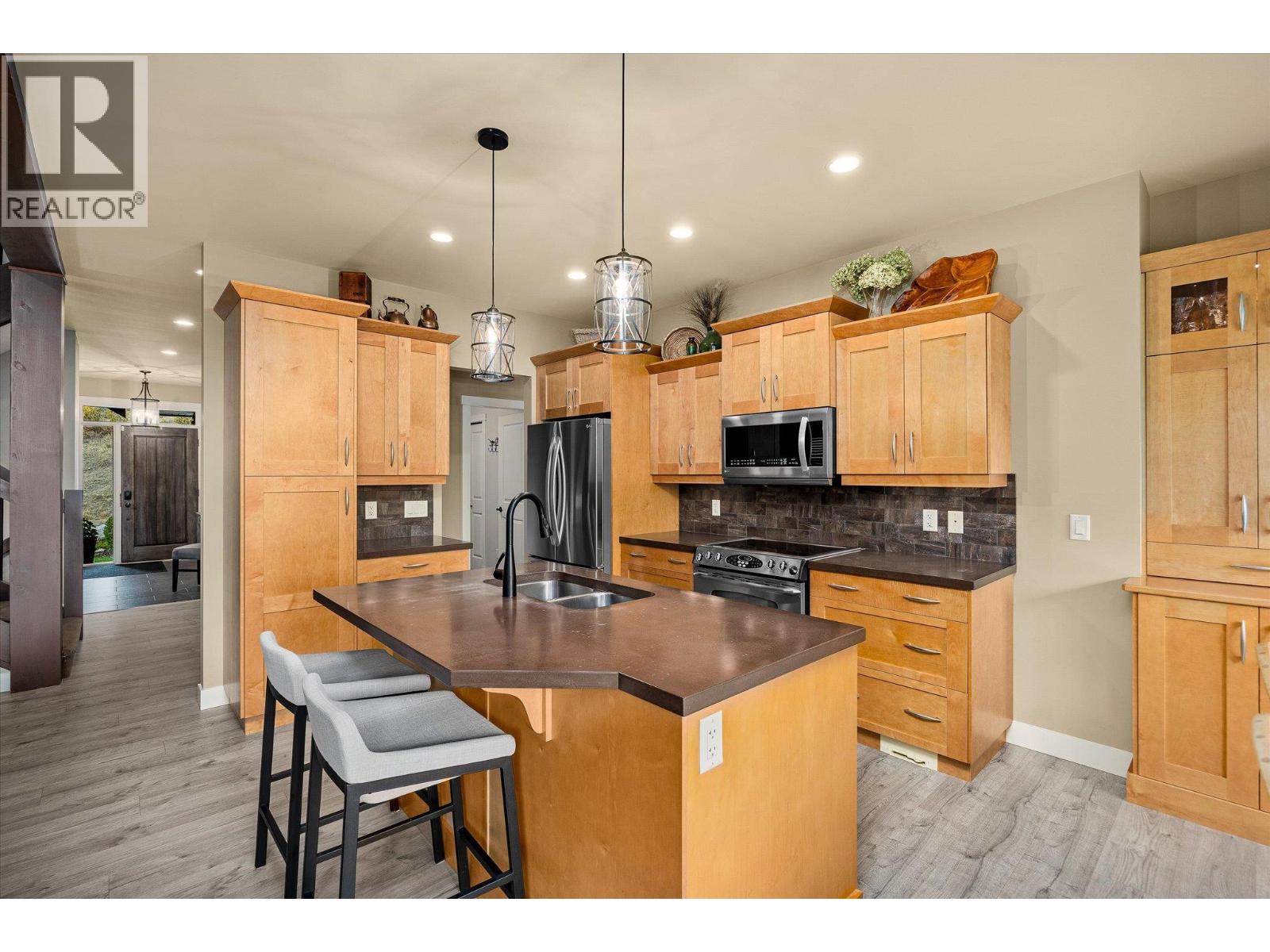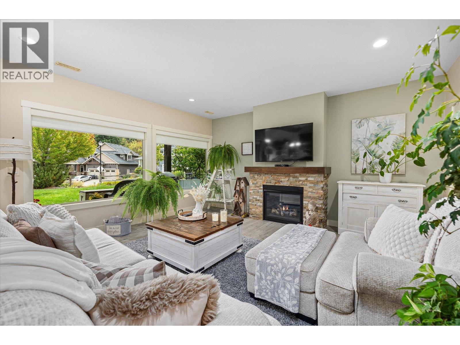 Exceptional 7-bedroom, 4-bath home in Tallus Ridge! Character, warmth, and quality define every inch of this expansive 3,400 sq. ft. residence. Step inside to a bright living space with soaring 16-foot ceilings, a striking stone fireplace, and expansive windows overlooking the pool-sized yard. The kitchen is designed for family living and entertaining, featuring solid wood built-in cabinetry, a large adjacent laundry and pantry, and plenty of space to gather. The king-sized main floor primary retreat offers a spa-like ensuite with a deep soaker tub and large tiled shower. A dedicated office or bedroom plus a full bath complement this level. Upstairs, two more spacious bedrooms and a full bath await, while a versatile flex room below offers the option of a fifth bedroom, gym, or media room. The lower level is perfect for generational living or income, with a 2-bedroom daylight walk-out in-law suite boasting high ceilings, a private patio, its own driveway, and a cozy gas fireplace. THIS is a home that breaks the mold of ‘builder white’ and shows the distinction of a home built to last. Outside, mature landscaping, perennial beds, and fruit trees create a private oasis backing onto ecological land, with no neighbours on three sides. Nestled in Tallus Ridge, the perfect community for active families, you’ll enjoy endless biking and hiking trails, a wonderful park, and proximity to fantastic schools. This home truly stands apart. (id:58842)