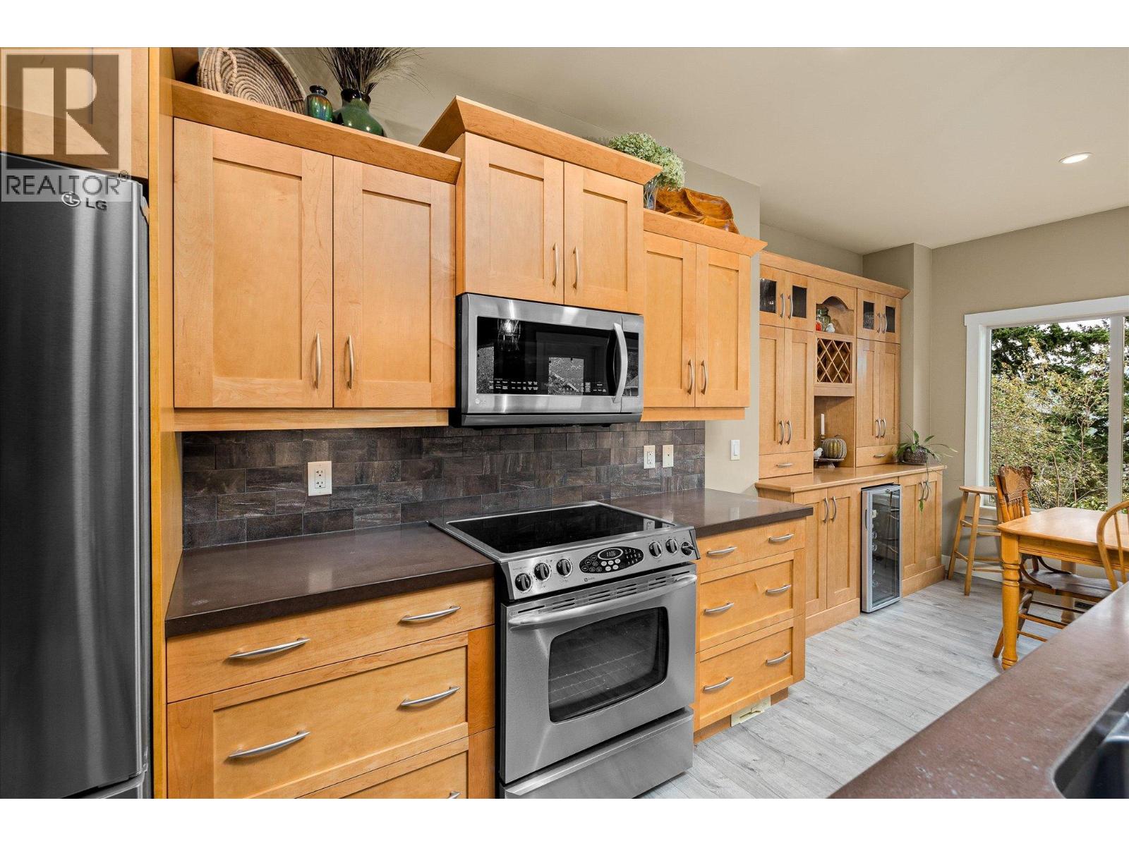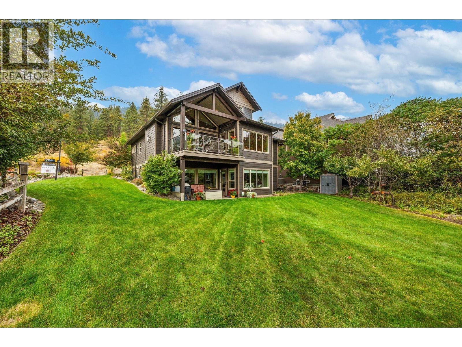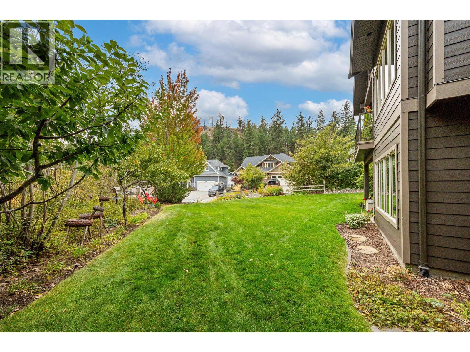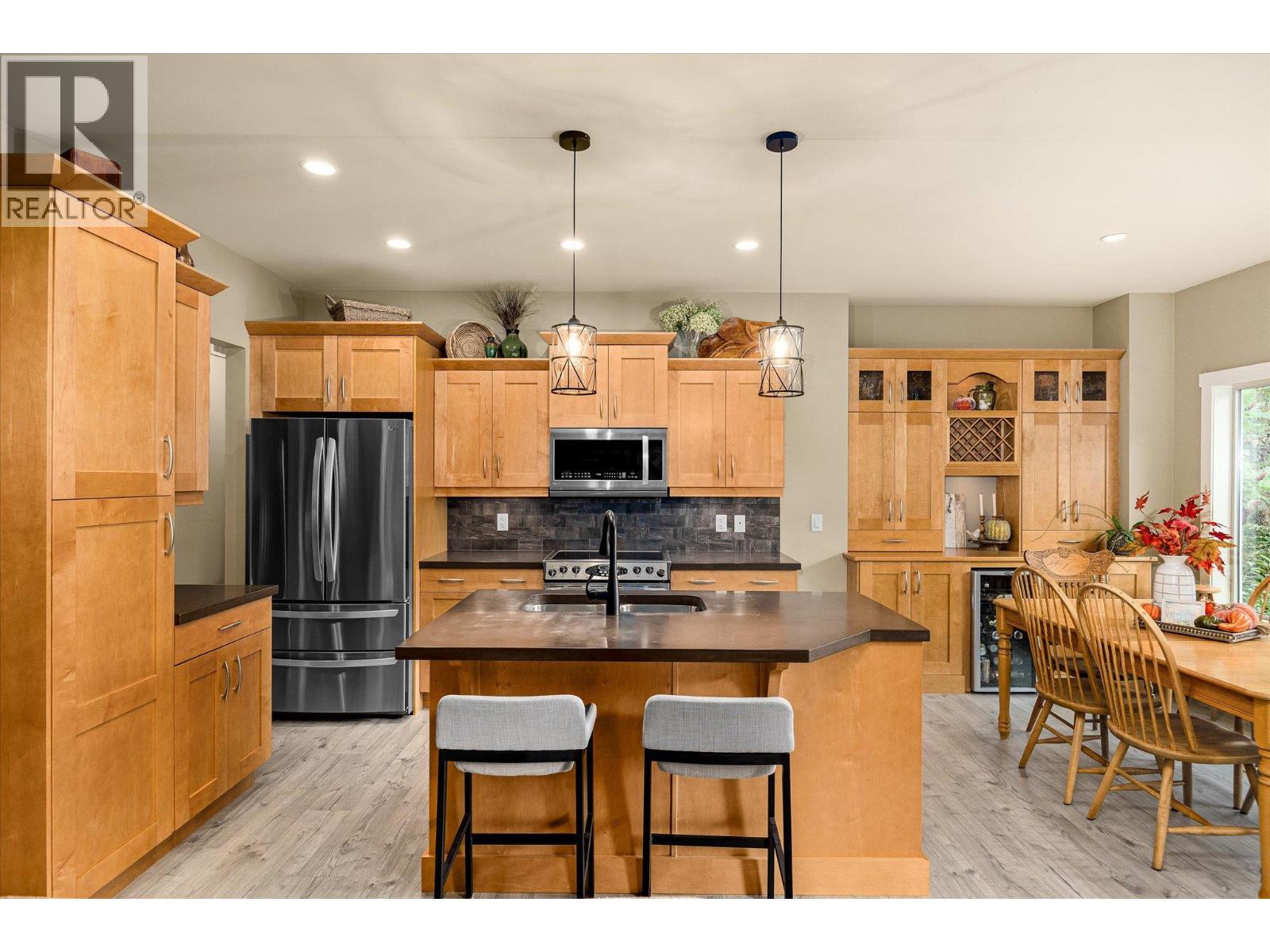 Exceptional 7-bedroom, 4-bath home in Tallus Ridge! Character, warmth, and quality define every inch of this expansive 3,400 sq. ft. residence. Step inside to a bright living space with soaring 16-foot ceilings, a striking stone fireplace, and expansive windows overlooking the pool-sized yard. The kitchen is designed for family living and entertaining, featuring solid wood built-in cabinetry, a large adjacent laundry and pantry, and plenty of space to gather. The king-sized main floor primary retreat offers a spa-like ensuite with a deep soaker tub and large tiled shower. A dedicated office or bedroom plus a full bath complement this level. Upstairs, two more spacious bedrooms and a full bath await, while a versatile flex room below offers the option of a fifth bedroom, gym, or media room. The lower level is perfect for generational living or income, with a 2-bedroom daylight walk-out in-law suite boasting high ceilings, a private patio, its own driveway, and a cozy gas fireplace. THIS is a home that breaks the mold of ‘builder white’ and shows the distinction of a home built to last. Outside, mature landscaping, perennial beds, and fruit trees create a private oasis backing onto ecological land, with no neighbours on three sides. Nestled in Tallus Ridge, the perfect community for active families, you’ll enjoy endless biking and hiking trails, a wonderful park, and proximity to fantastic schools. This home truly stands apart. (id:58842)
