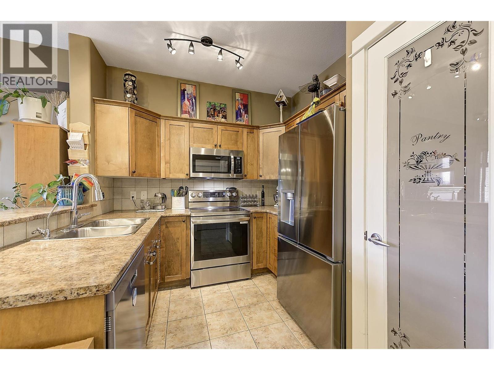 Top floor living on the best side of the building; with beautiful views overlooking Pollard’s Pond and the sparkling outdoor pool! This spacious 3 bedroom, 2 bathroom split floor plan features 9’ ceilings, an open concept layout, forced air heating and central air conditioning for year round comfort. The bright kitchen offers ample cabinetry, generous counter space and updated appliances, flowing into a spacious living area that easily accommodates larger furniture. The king sized primary bedroom includes a walk in closet and ensuite, while the second bedroom, full bath and versatile 3rd bedroom provide excellent flexibility for guests, a home office or additional living space. Step onto the balcony to enjoy peaceful mornings overlooking the pond and fountains while listening to the birds. Sitara on the Pond offers fantastic amenities including an outdoor pool, hot tub, gym, library, lounge with pool table, secured parking and storage. Pet-friendly and well managed, this sought after community is just minutes from Wood and Kalamalka Lakes, the Rail Trail, golf, wineries, shopping, dining, UBCO and Kelowna International Airport. (id:58842)