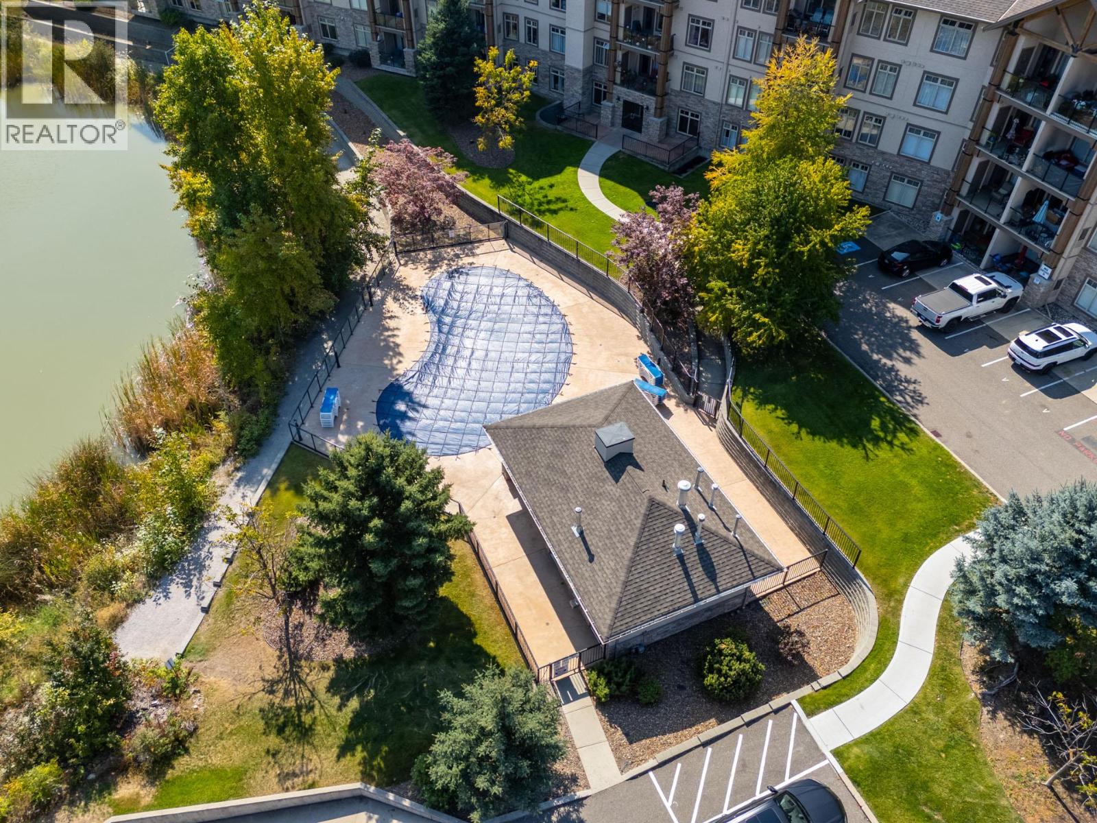 TOP FLOOR ON THE BEST SIDE WITH THE BEST VIEWS! This 2 bedroom, 2 bath SPLIT PLAN along with FORCED AIR HEAT AND CENTRAL AIR CONDITIONING is a MUST SEE! Enjoy the warm morning sun and then cool afternoon shade while overlooking the sparkling pool and Pollard’s Pond. NEWER HVAC IN 2018, NEW MICROWAVE IN 2025, NEWER FLOORING, PAINT AND FANS IN 2023. This home with an open concept living space and 9’ ceilings feels incredibly spacious the minute you walk in. Well appointed kitchen with numerous cabinets and counter space. Sizable living room will accommodate larger prices of furniture. King size primary with deluxe ensuite plus large walk-in closet. The 2nd bedroom is also a decent size along with the main 4-piece bath. . BONUS POINTS for the sparkling outdoor pool, hot tub, main floor gym, pool table lounge area, library, a great secured parking spot, storage locker, plus low strata fees. A noticeably quiet and serene neighborhood, yet only a 15-minute drive to The Famous Rail Trail, UBC, all kinds of shopping, coffee houses, pubs, and wineries, plus Turtle Bay Marina, great golf courses, and the Kelowna airport. Sitara on the Pond is well known throughout the Okanagan for its PET FRIENDLY ATMOSPHERE, stellar reputation, and well-run strata. You will love living here! (id:58842)