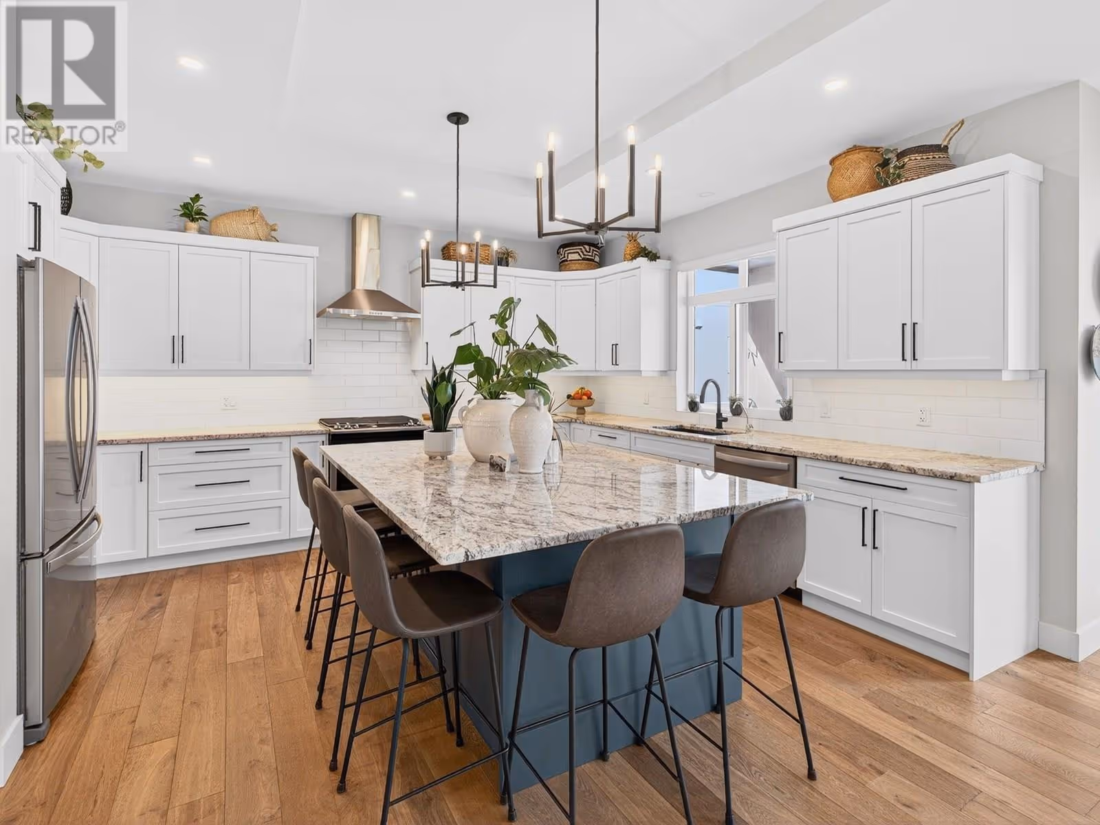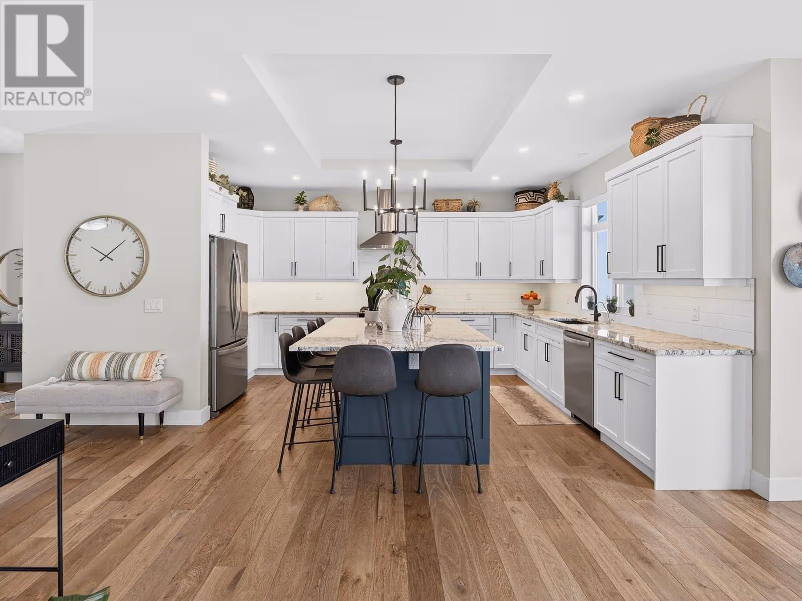 Welcome to this stunning 3-bedroom, 3-bathroom home located in the desirable Tallus Ridge community in Shannon Lake. Built in 2019 with exceptional quality and attention to detail, this home features a bright open-concept main floor with a chef’s kitchen that includes a gas stove, a large island with quartz countertops and seamless flow to a spacious deck overlooking vineyards and breathtaking mountain views. Located on a quiet cul de sac with no development permitted in front or behind the property, you’ll enjoy privacy and tranquility year-round. The main level also includes a mudroom off the two-car garage, while upstairs offers a luxurious primary suite with a 5-piece ensuite and walk-in closet, two more generous bedrooms, another 5-piece bathroom, and a dedicated laundry room. The walkout basement is a blank slate—easily suited or ideal for adding a bedroom, games room, or theatre—with rough-ins for a bathroom and wet bar already in place, plus a peaceful patio seating area. The beautifully landscaped yard includes raised garden beds filled with raspberries, strawberries, and even a peach tree. Ideally located just steps from a park, hiking trails, and Shannon Lake Golf Course, this property is perfect for families, entertainers, and outdoor enthusiasts alike. (id:58842)