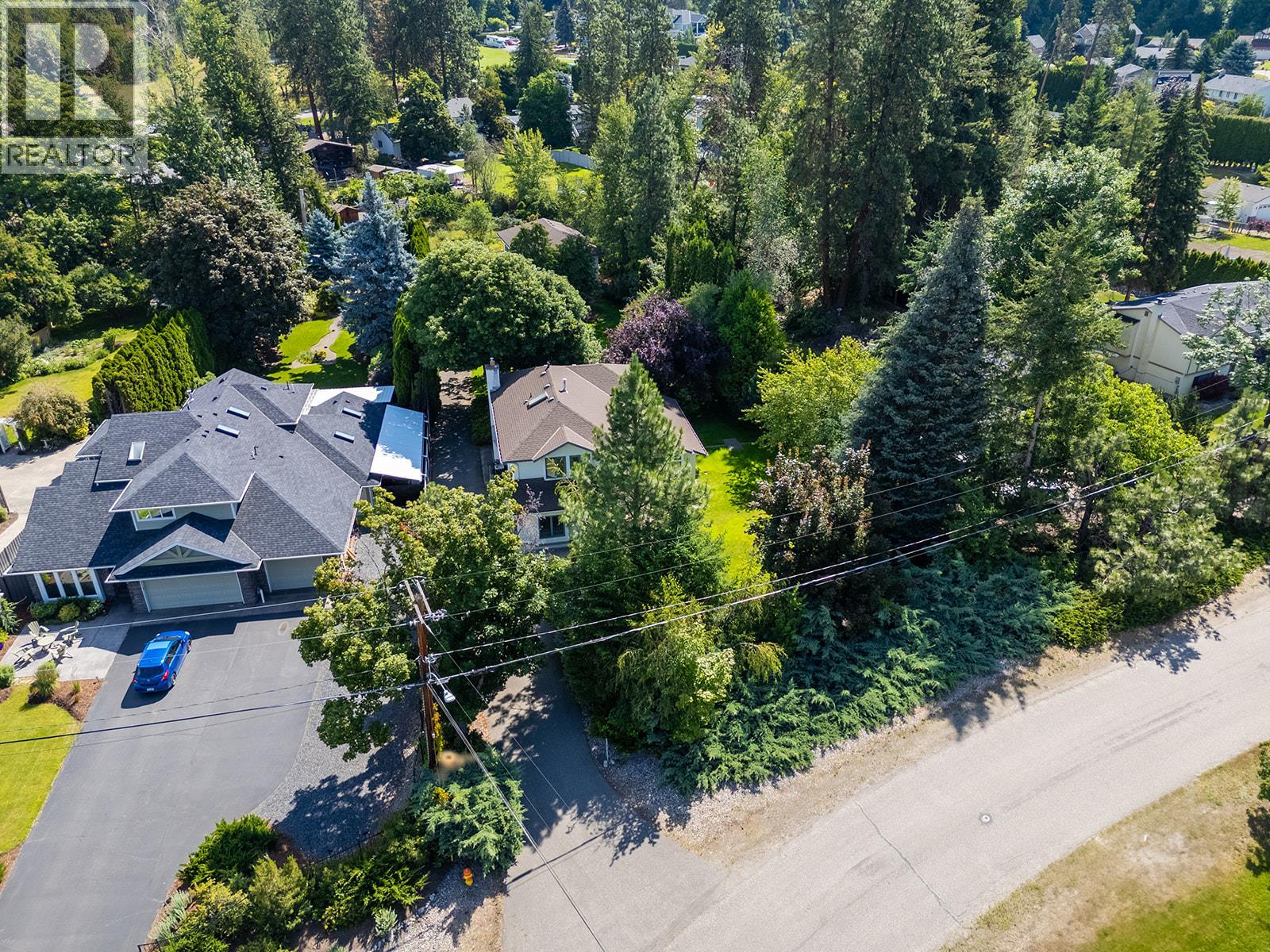 Welcome home to your well kept family estate with tempting potential, this charming property sits on a flat, beautifully landscaped, private 0.49 acre lot in the coveted Hall Rd neighbourhood. Enjoy a welcoming main-level living area with an updated kitchen, looking out to mature trees and a morning-sun lit backyard. Head upstairs to your spacious primary with a walk-in closet and large ensuite, plus three additional bedrooms and full bathroom. A large main floor bedroom doubles as a private guest or in-law suite for extended stays, home office or bonus room. This home’s solid construction and timeless character awaits your style and personal touch. Added bonus? A large detached garage/workshop with endless possibilities: convert it into a suite, art studio, home gym, office, golf sim—whatever suits your lifestyle. Park your RV or boat securely along side the outbuilding, build some garden beds and work on that green thumb, enjoy weekends at home in your private yard. Bring your imagination and the whole family, awesome school catchment and amenities nearby, minutes from town with the rural feel. Priced with updates in mind, this is a rare opportunity to build equity in a space that fits your needs in a neighbourhood that ticks the boxes of location and lifestyle. Come home to the unmatched convenience and privacy of one of Kelowna’s favourite, well established neighbourhoods. (id:58842)