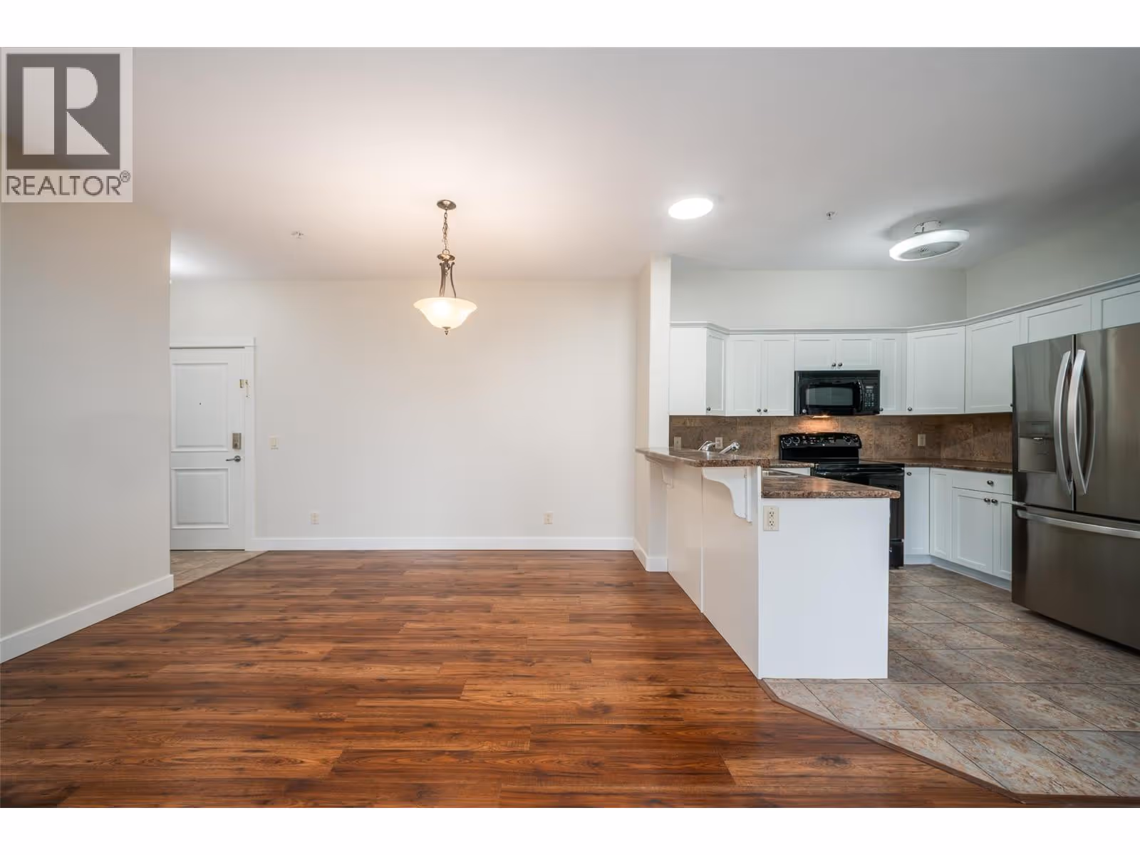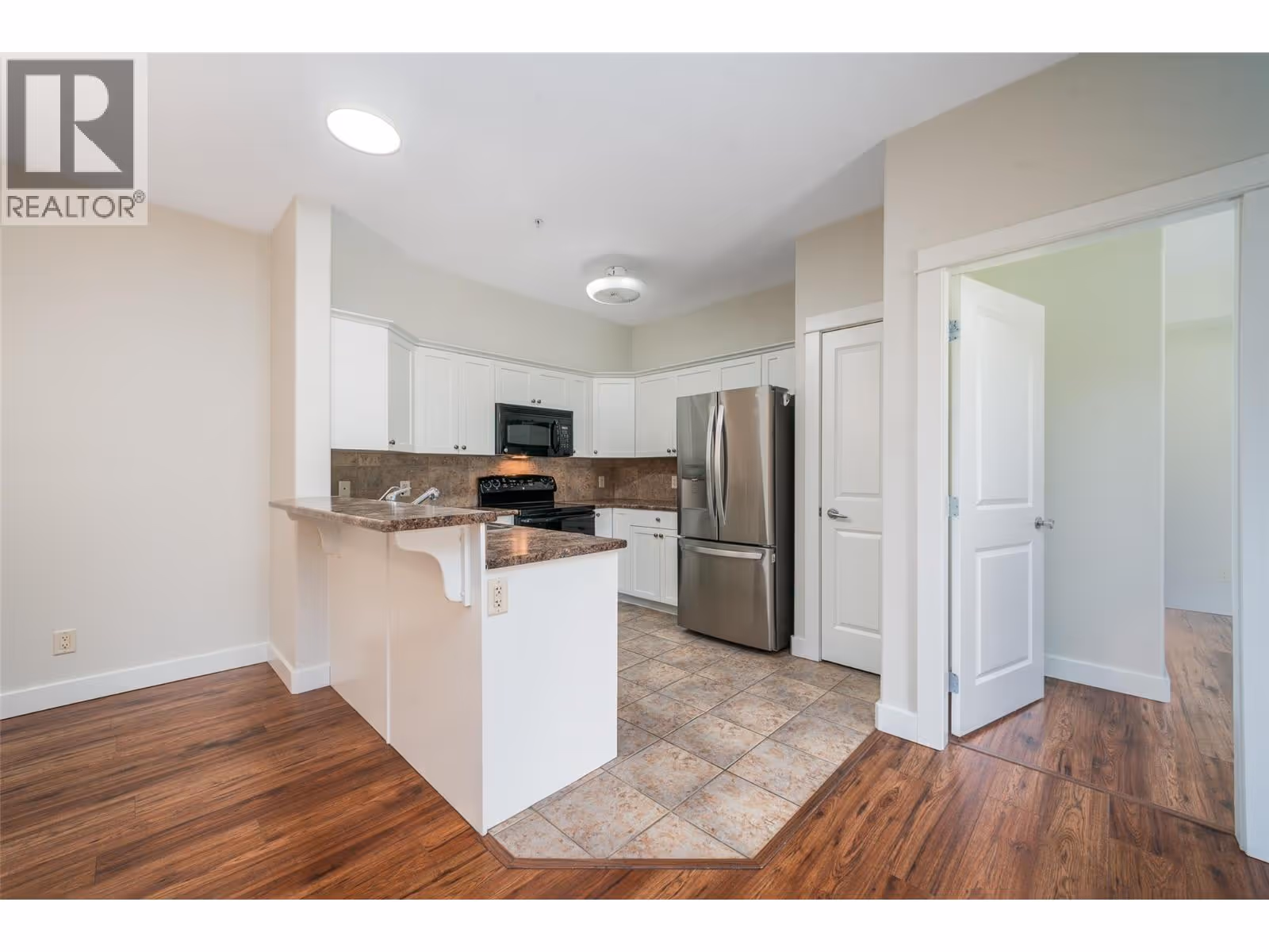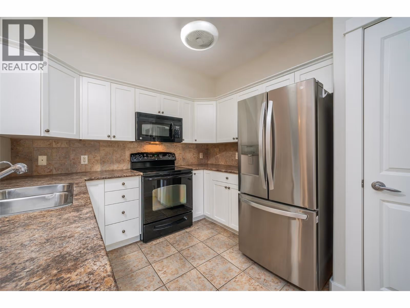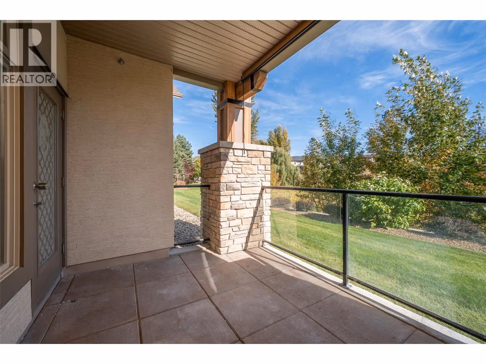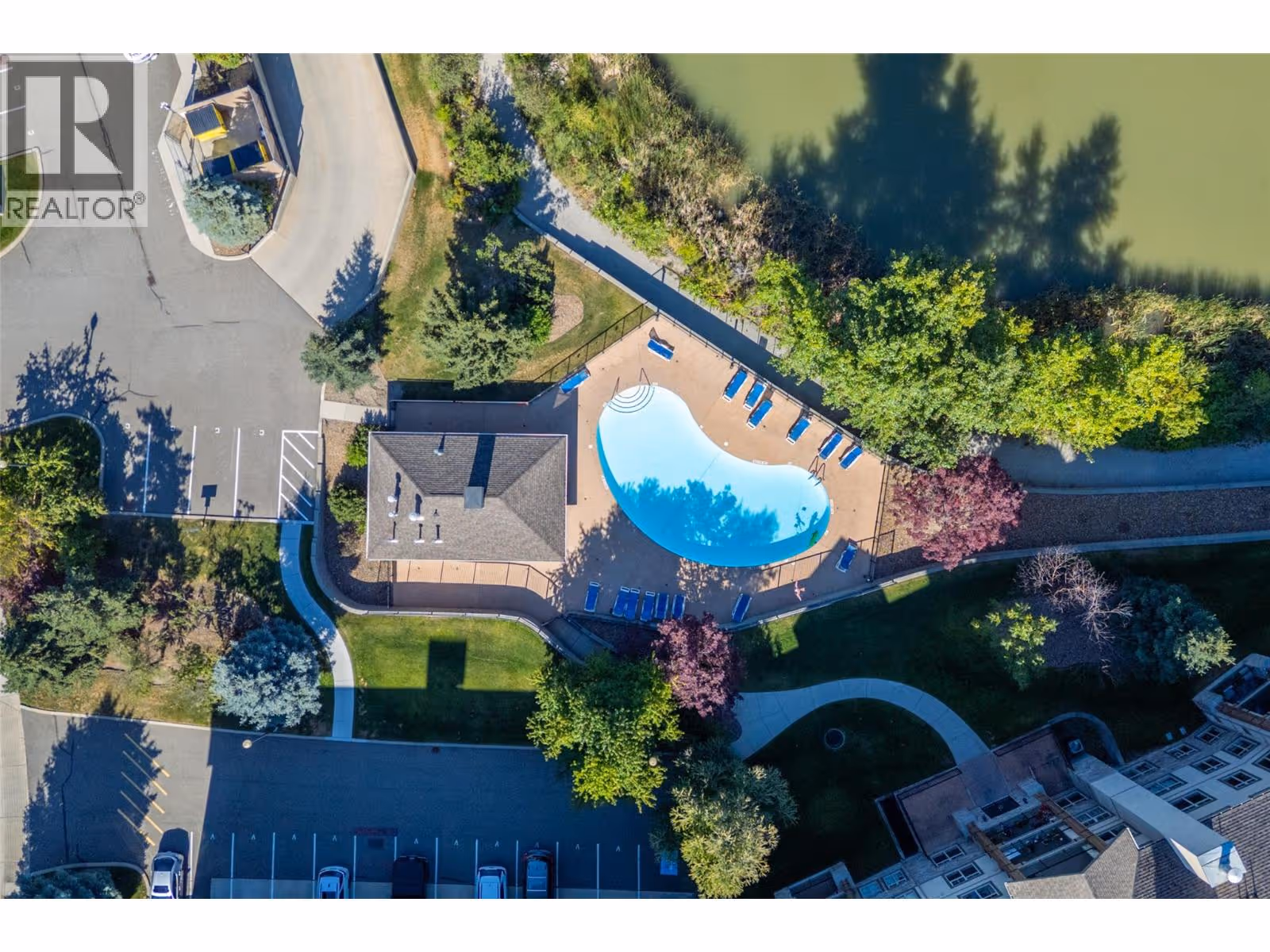 Welcome to Sitara On the Pond, nestled in the master-planned “The Lakes” community of Lake Country! This beautifully updated first-floor condo offers nearly 1,000 sqft of comfortable living with freshly painted walls, ceilings, trim, and upgraded cabinetry. Step inside to a tiled foyer with coat closet, leading into an open-concept living space featuring 9ft ceilings and an electric fireplace. The U-shaped kitchen boasts a dedicated pantry, newer fridge + dishwasher, and plenty of prep space for the home cook. A spacious patio with glass railings overlooks the tranquil pond and includes a natural gas hookup and phantom screen for seamless indoor-outdoor living. The primary suite offers a walk-in closet with built-ins and a 3-piece ensuite with linen storage, while the second bedroom is filled with natural light from two large windows. A full 4-piece main bath with generous counter space and its own linen closet, a laundry room with raised washer/dryer, and a separate storage room complete the home. Sitara residents enjoy incredible resort-style amenities including an outdoor pool & whirlpool, fitness room, billiards room, lounge, library, underground parking, storage locker, and bike racks ready to go! With walking trails outside your door and quick access to multiple lakes, wineries, UBCO, YLW, and more, this is Okanagan living at its best! (id:58842)