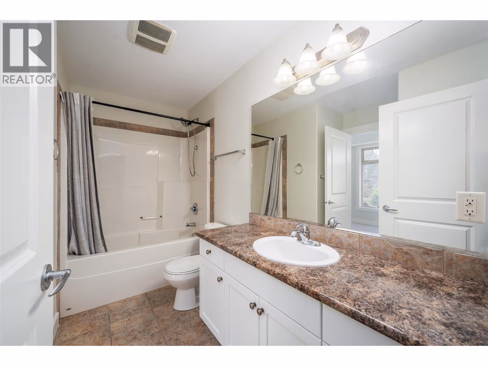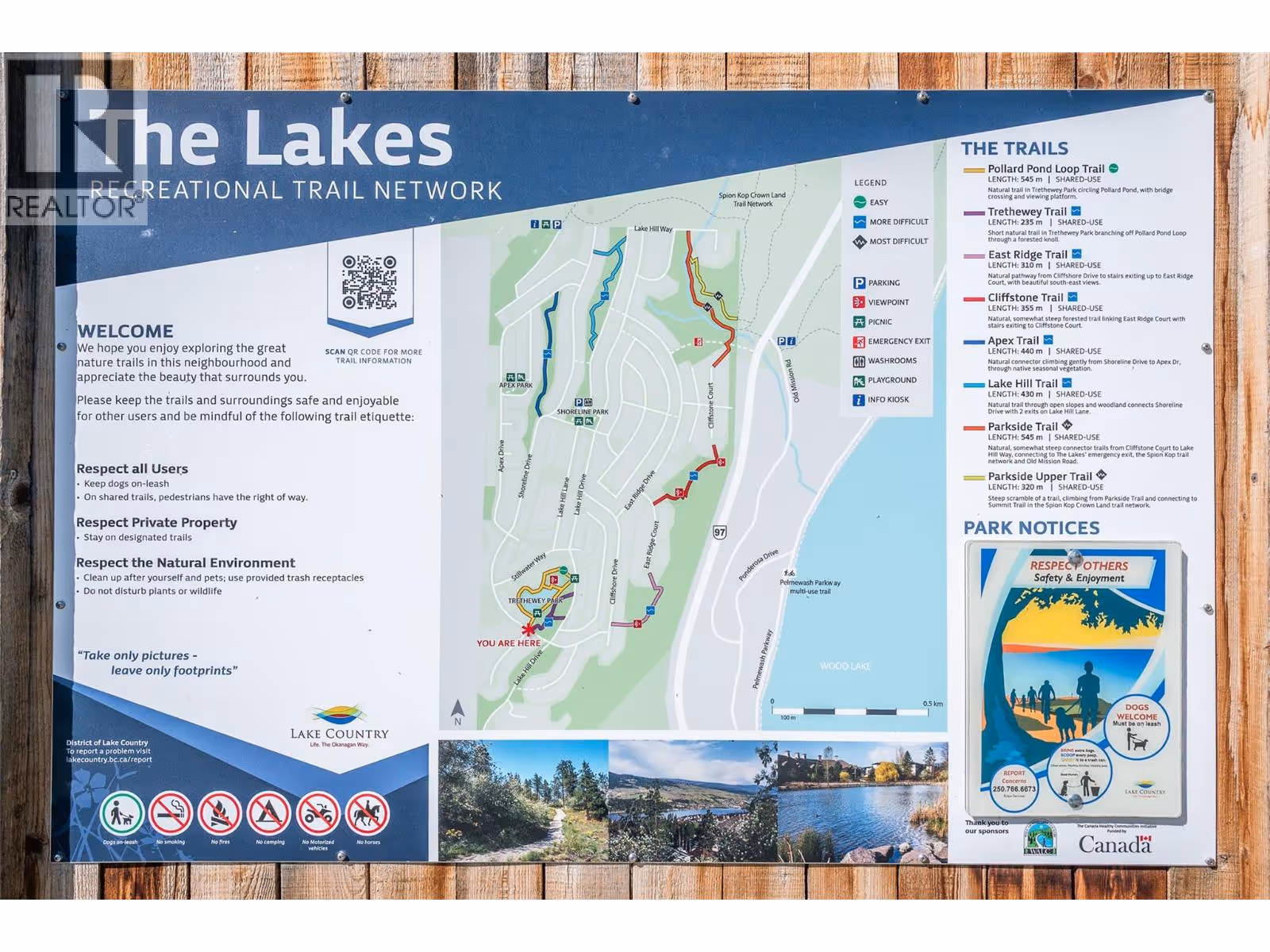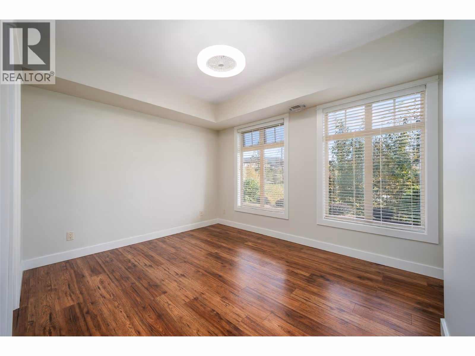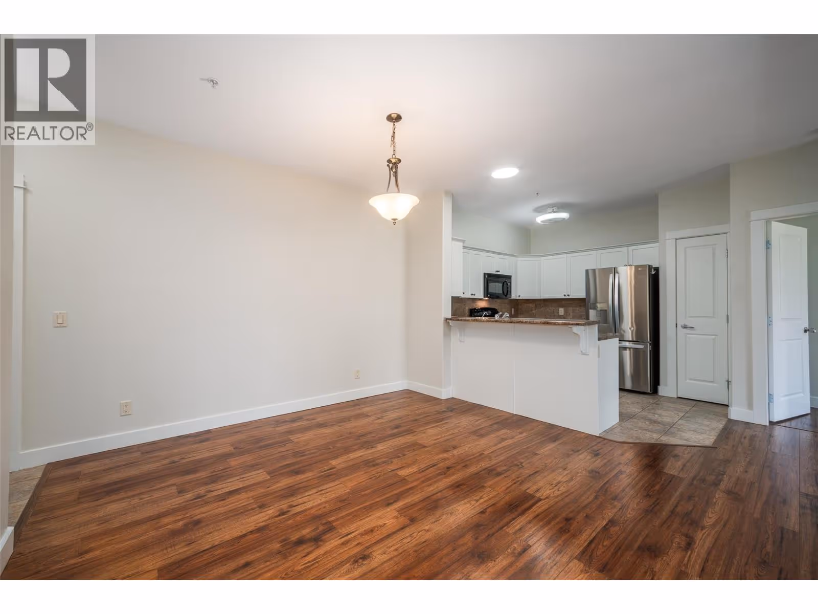 Welcome to Sitara On the Pond, nestled in the master-planned “The Lakes” community of Lake Country! This beautifully updated first-floor condo offers nearly 1,000 sqft of comfortable living with freshly painted walls, ceilings, trim, and upgraded cabinetry. Step inside to a tiled foyer with coat closet, leading into an open-concept living space featuring 9ft ceilings and an electric fireplace. The U-shaped kitchen boasts a dedicated pantry, newer fridge + dishwasher, and plenty of prep space for the home cook. A spacious patio with glass railings overlooks the tranquil pond and includes a natural gas hookup and phantom screen for seamless indoor-outdoor living. The primary suite offers a walk-in closet with built-ins and a 3-piece ensuite with linen storage, while the second bedroom is filled with natural light from two large windows. A full 4-piece main bath with generous counter space and its own linen closet, a laundry room with raised washer/dryer, and a separate storage room complete the home. Sitara residents enjoy incredible resort-style amenities including an outdoor pool & whirlpool, fitness room, billiards room, lounge, library, underground parking, storage locker, and bike racks ready to go! With walking trails outside your door and quick access to multiple lakes, wineries, UBCO, YLW, and more, this is Okanagan living at its best! (id:58842)