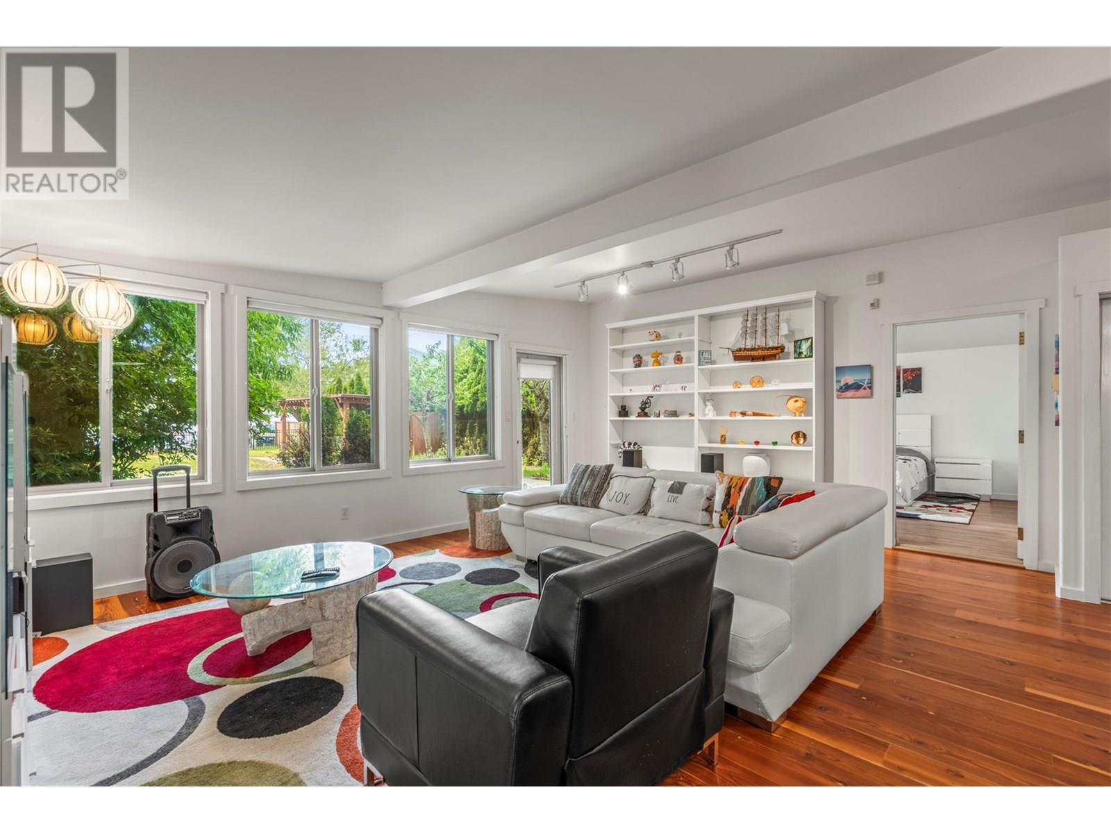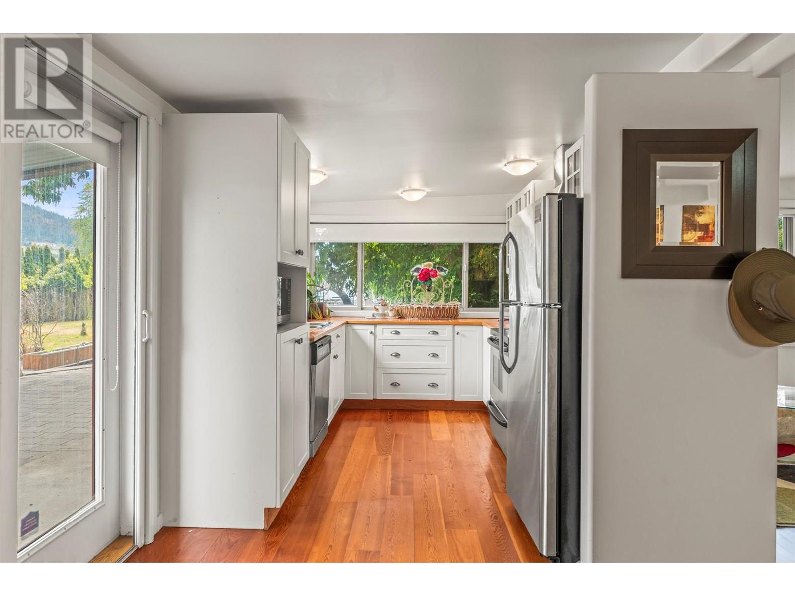 Discover exceptional waterfront living in the desirable area of Okanagan Landing, this rare double lot boasts 100 feet of pristine Okanagan Lake frontage on a spacious 0.36-acre landscape. Featuring a newly built dock, detached double garage, and ample space for redevelopment, the potential-filled property could serve as a serene retreat or future investment. Enjoy breathtaking lake and mountain views from your private yard, complete with a working hot tub for year-round relaxation.The charming 3-bedroom, 2-bathroom rancher has been updated with fresh paint, new flooring, and a hot water heater, combining vintage appeal with modern comfort. Inside, you’ll find a bright, functional layout, baseboard heating, and essential appliances included. Whether you're boating off your new dock, relaxing in the fenced yard, or exploring redevelopment opportunities, this lakefront gem offers it all. With municipal water, irrigation, RV parking, and immediate possession available, your Okanagan dream lifestyle starts here. (id:58842)