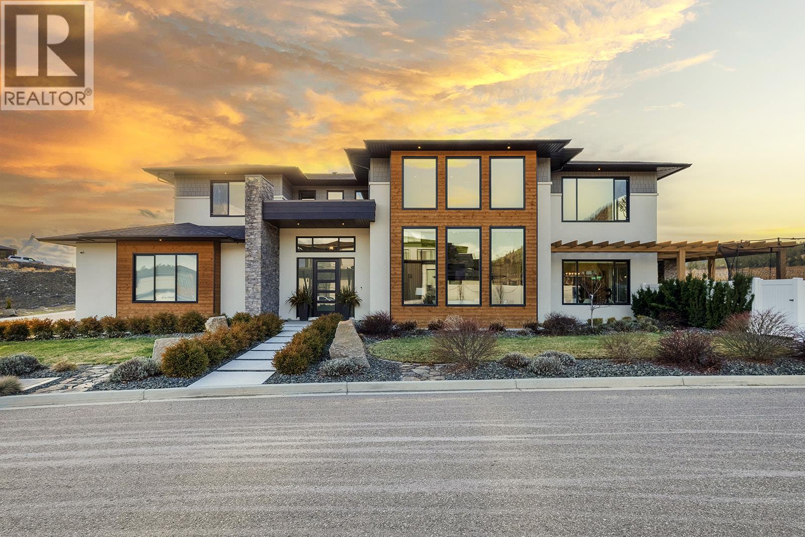 Welcome to the former Tallus Ridge Showhome - an architectural masterpiece with almost 5000 sq. ft. of elevated family living set upon a picturesque vineyard backdrop. From the moment you enter, you'll be captivated by the soaring 20-foot ceilings and expansive windows; and a warm, inviting atmosphere draws you in. The heart of the home is the kitchen, perfectly positioned to bring everyone together, from making pizza and carving pumpkins with the kids to hosting family gatherings in the open-concept living and dining areas. Step directly off the kitchen into an entertainer’s dream backyard. With a heated in-ground pool, hot tub, excellent sun exposure, and a fully fenced, private setting, this outdoor space becomes an extension of the home, ideal for summer days, evening relaxation, and effortless entertaining. Nearby hiking trails and vineyard views complete the lifestyle. Upstairs, the split-bedroom design offers privacy and balance, anchored by a cozy sitting area overlooking the great room. The primary retreat feels calm and luxurious, while three additional bedrooms and laundry support everyday family life. The basement adds outstanding versatility, easily adapting to your needs as a flex space, home theatre, guest area, or long-term rental, with multiple bedrooms, recreation space, and a separate entrance. RV parking, a triple car garage with EV charging, and a family-friendly neighbourhood near parks, top schools, golf and all amenities, complete this package. (id:58842)