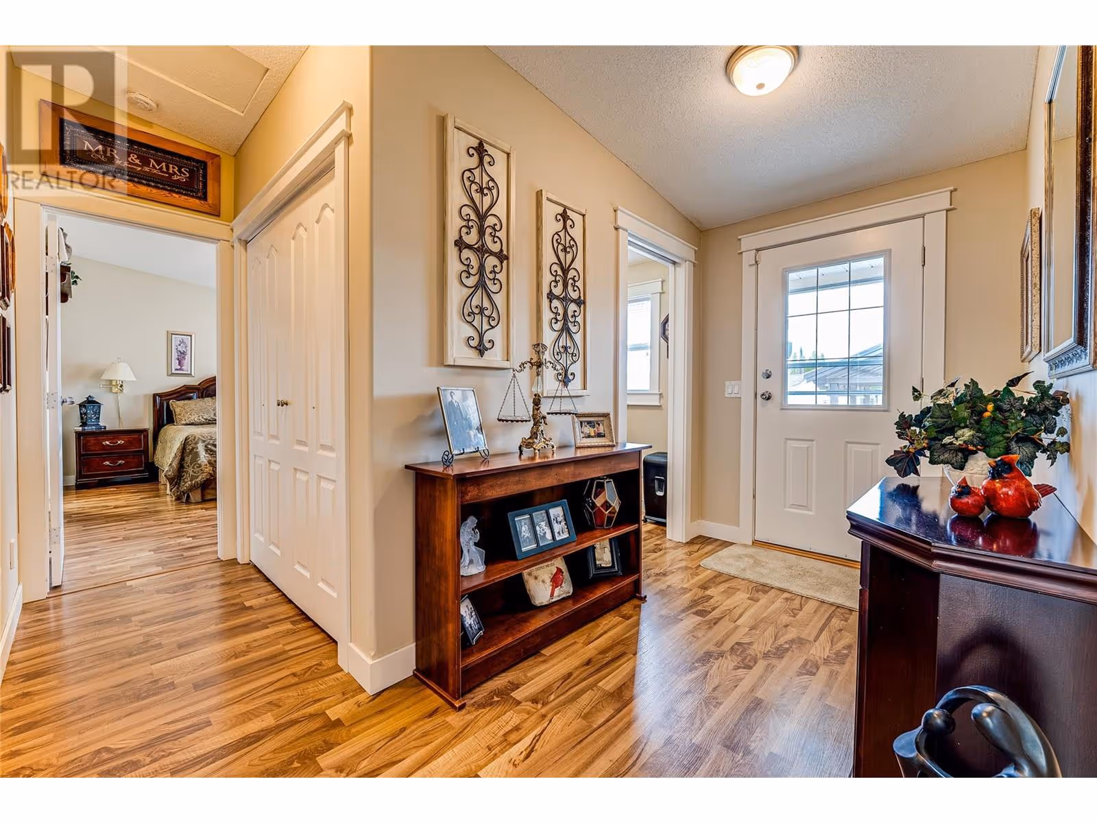 Beautiful home and oversized shop package in 55 plus Holiday Park. Nothing has been overlooked with this beautiful 2006 manufactured home with incredible 28' x 40', 1120 sq ft shop - currently set up for wood working, featuring spray booth/dust collection system and 1/2 bathroom. Impeccably maintained and landscaped property features RV parking, full RV hookups, raised garden beds, gazebo, garden sheds, very private covered patio/winter panels for year round enjoyment. Inside the home you are greeted with 1585 square feet of beautifully designed and finished living space. The large custom designed kitchen features oversized island/eating peninsula, large corner pantry, stunning cabinetry - flooded in natural daylight from the large skylight. Open concept large living and dining areas with access onto covered patio. The spacious primary features large walk in closet and spacious ensuite. Small office space tucked off of foyer. Large 2nd bed features murphy bed and corner windows. The large mudroom/laundry features built in desks/cabinetry and access to the covered breezeway to the oversized double carport and shop access. 2nd full bath rounds off the main home. Fantastic storage spaces in shop attic, above carport and with multiple garden sheds. This stunning one owner home has been lovingly designed and meticulously maintained. Only a few minutes walk to the shores of Okanagan Lake and close to public transit. The perfect home/shop/RV parking package awaits. (id:58842)