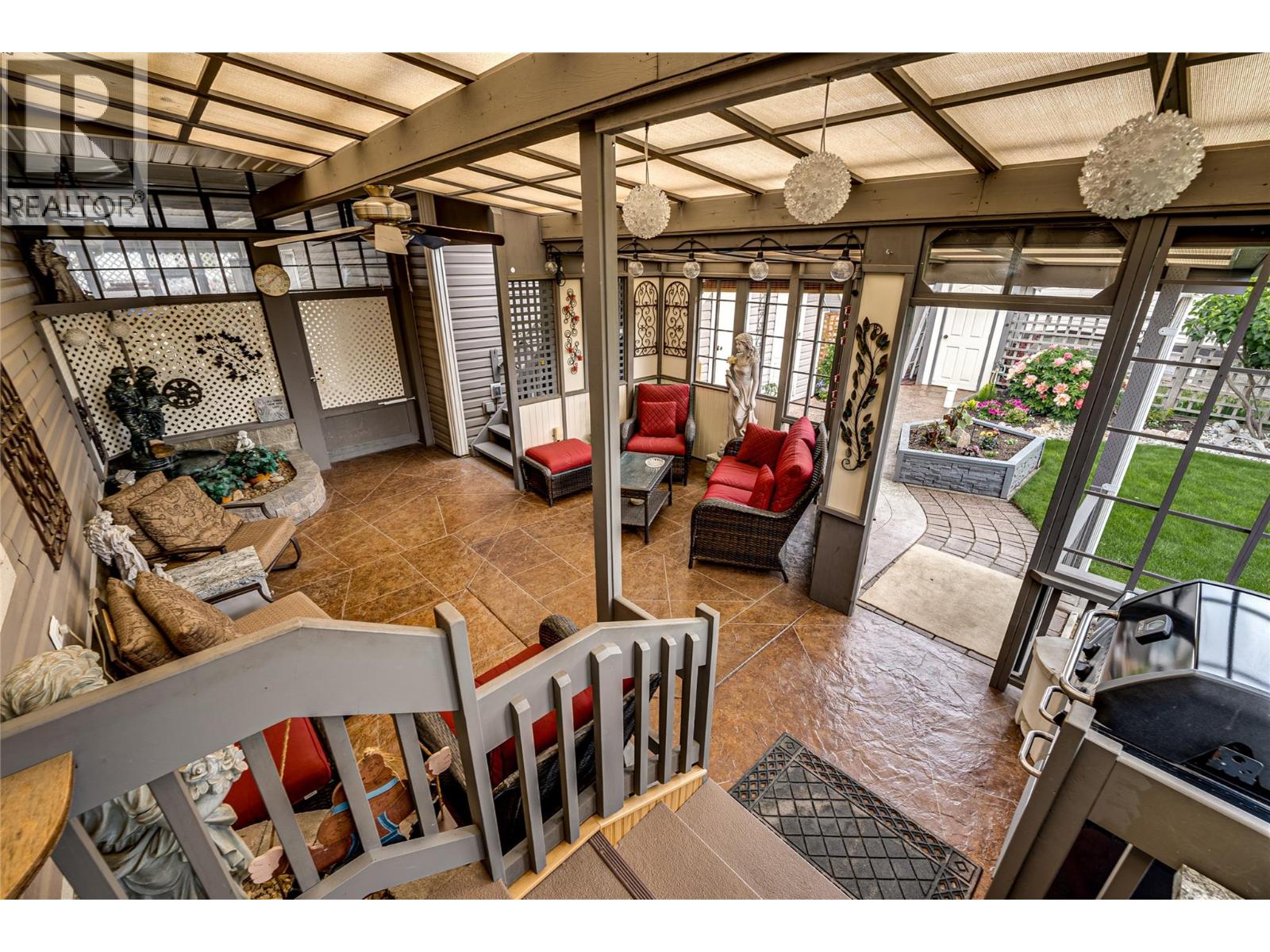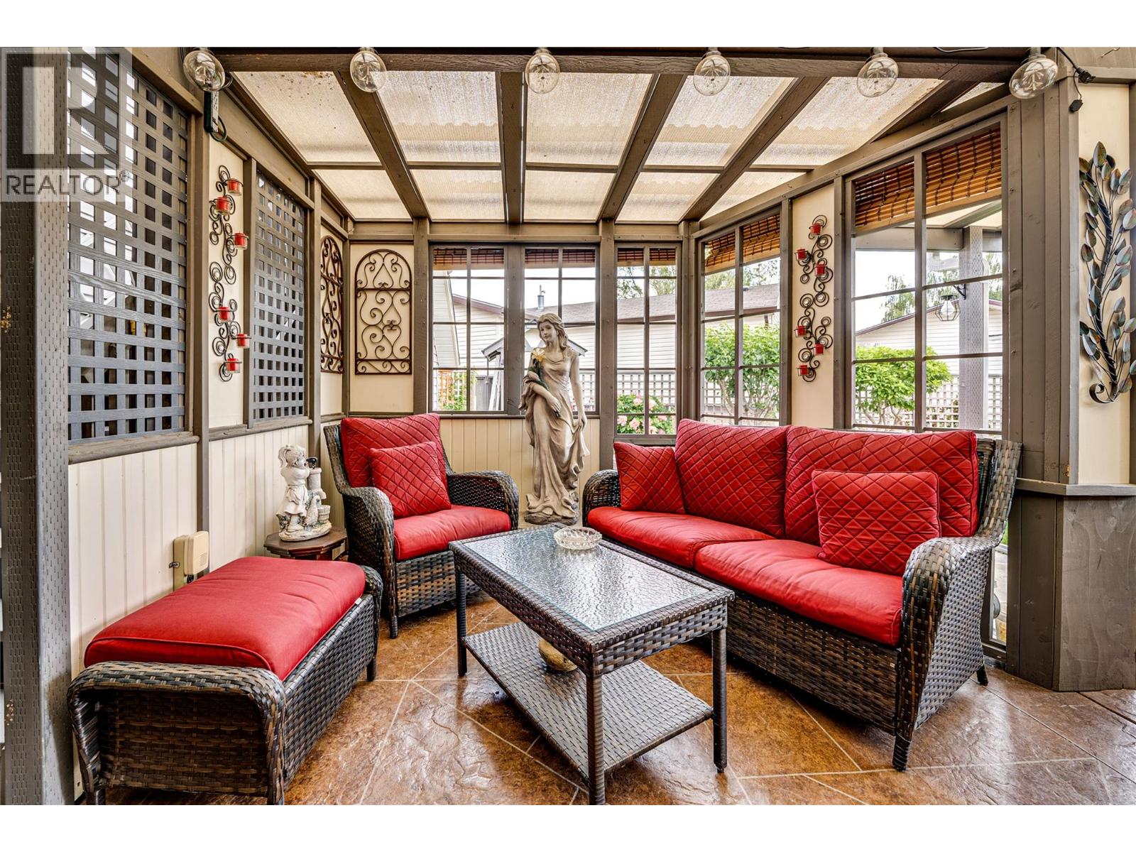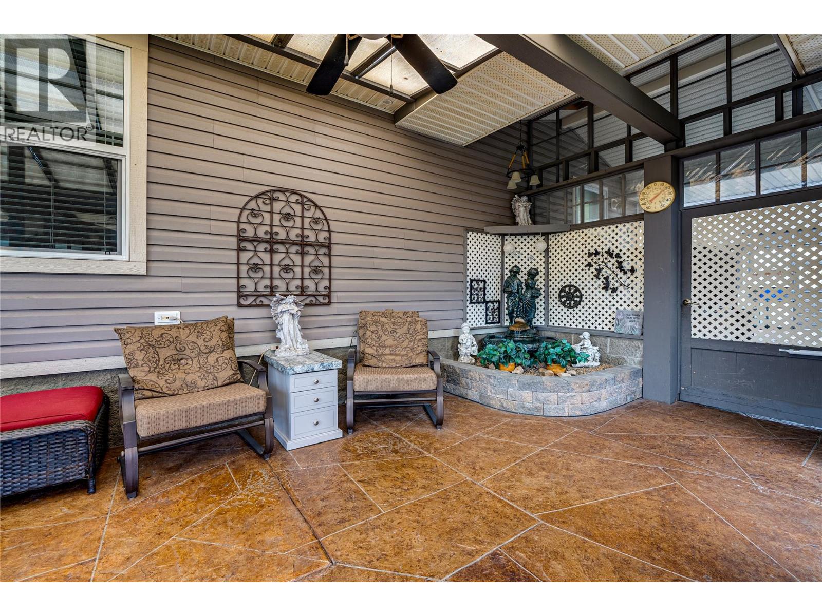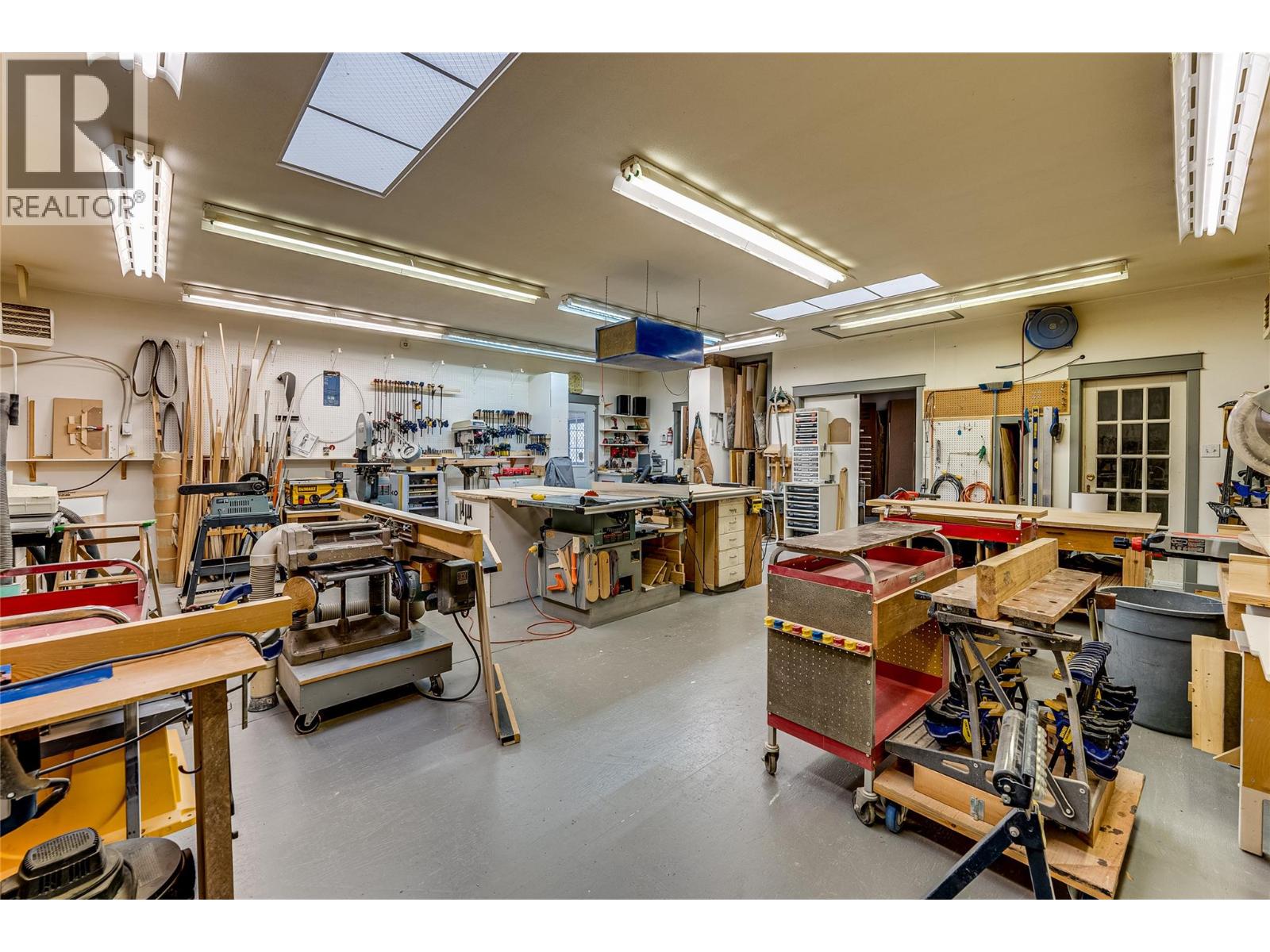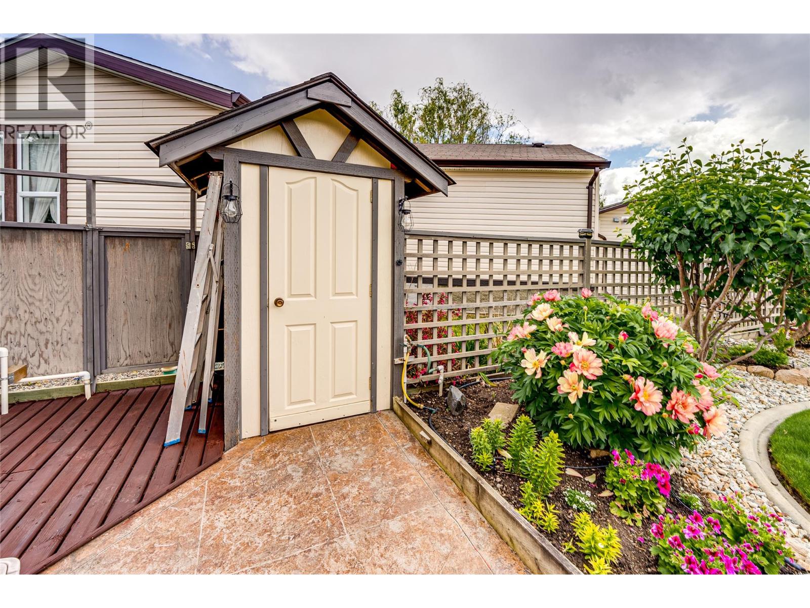 The perfect home and shop package awaits. Immaculate 2006, 1585 sq ft manufactured home in Holiday Park paired with an incredible 1120 sq ft heated shop featuring bathroom, dust collection system, and phenomenal storage - suitable for a wide variety of uses. Impeccably maintained and landscaped, the property offers covered parking, RV parking/full hookups, raised garden beds, gazebo, sheds, and a private covered patio with winter panels for year-round enjoyment. Inside, the open-concept layout provides bright, inviting living space. The custom designed kitchen features an oversized island with eating peninsula, corner pantry, stunning cabinetry - all flooded with natural daylight from the large skylight. Spacious living and dining areas offer seamless access to the covered patio. The primary suite includes a walk-in closet and ensuite. A small office is tucked off the foyer, while the second bedroom features a murphy bed and corner windows. The mudroom/laundry offers built-in desks and cabinetry, with access to the covered breezeway leading to the oversized double carport and shop. A second full bath completes the home. Additional storage can be found in the shop attic, above the carport, and in multiple garden sheds. Lovingly maintained by the original owner, this is a fantastic opportunity to secure a move in ready home with a truly exceptional shop. Just a short walk to the shores of Okanagan Lake and Kin Beach - the complete Okanagan living package awaits. (id:58842)