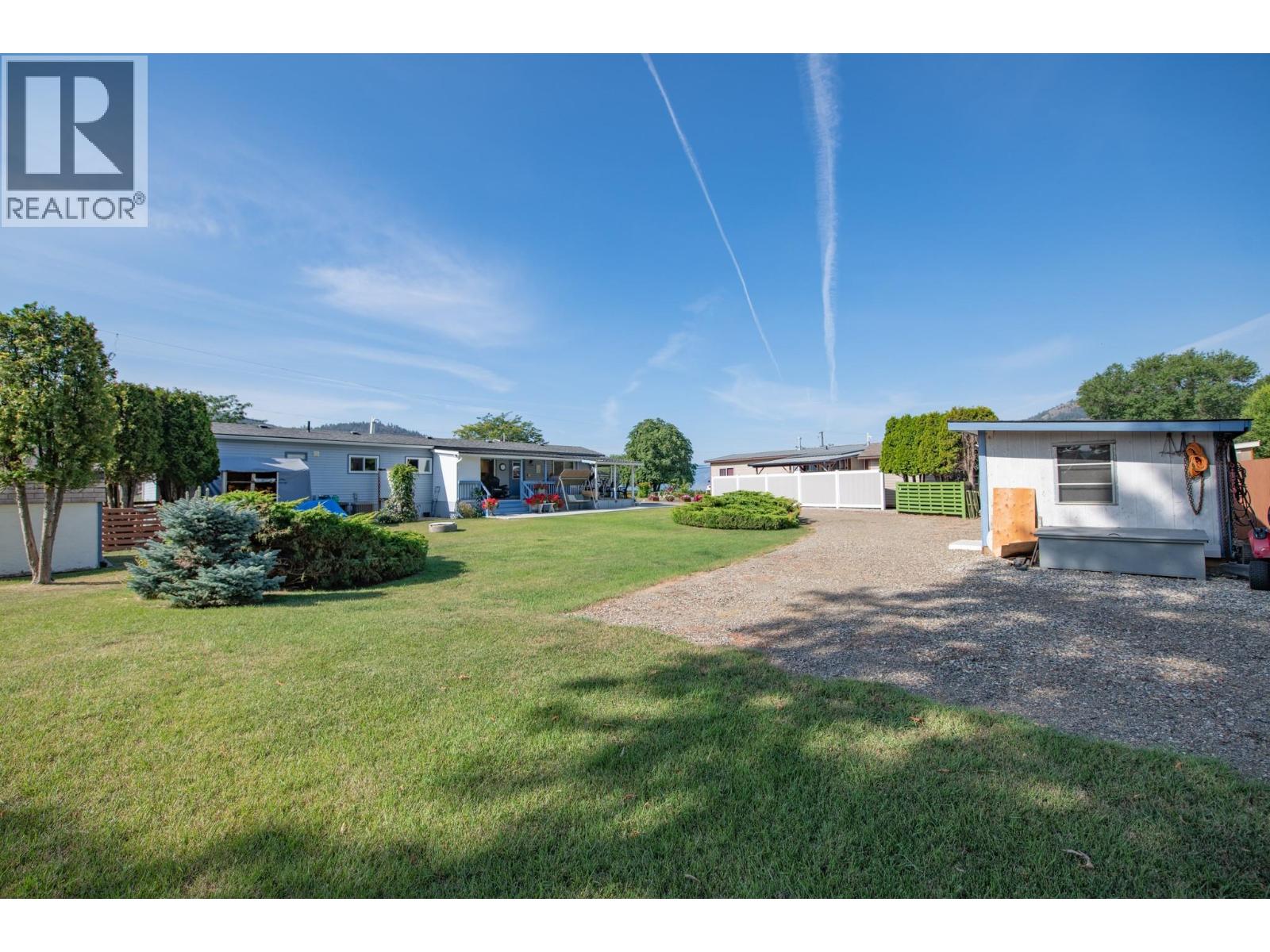 Experience affordable Okanagan Lake living in one of the most desirable locations within Holiday Park. This immaculately maintained home offers 3 bedrooms, 2 bathrooms, plus a fantastic addition that provides extra living space. The layout is functional & bright, offering plenty of room for everyday living or hosting. From the front window, enjoy beautiful views of Okanagan Lake, the mountains & the nearby Yacht Club. Pride of ownership is evident throughout, with numerous updates already completed, including a new furnace & A/C in 2019, a brand new hot water tank, professionally completed underbelly replacement one year ago & a roof replaced in 2016 on both the home & sheds.Step outside & you’ll immediately notice what truly sets this property apart. Arguably one of the best lots in the park, the yard feels more like a private park than a typical mobile home space. The large, beautifully maintained grass area offers incredible outdoor living space, complete with a fire pit, multiple sheds for storage, and a private setting perfect for relaxing or entertaining. The expansive back deck is the ideal place to sit back, soak up the sunshine, and take in the peaceful surroundings while enjoying glimpses of the Lake. Additional features include an attached carport, ample storage, and a clean, move-in-ready interior so you can simply pack your bags and start enjoying. Located in a welcoming 55+ community, this home offers the perfect combination of comfort, scenery, and easy living. (id:58842)