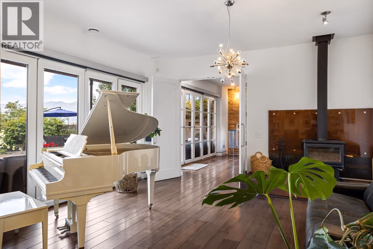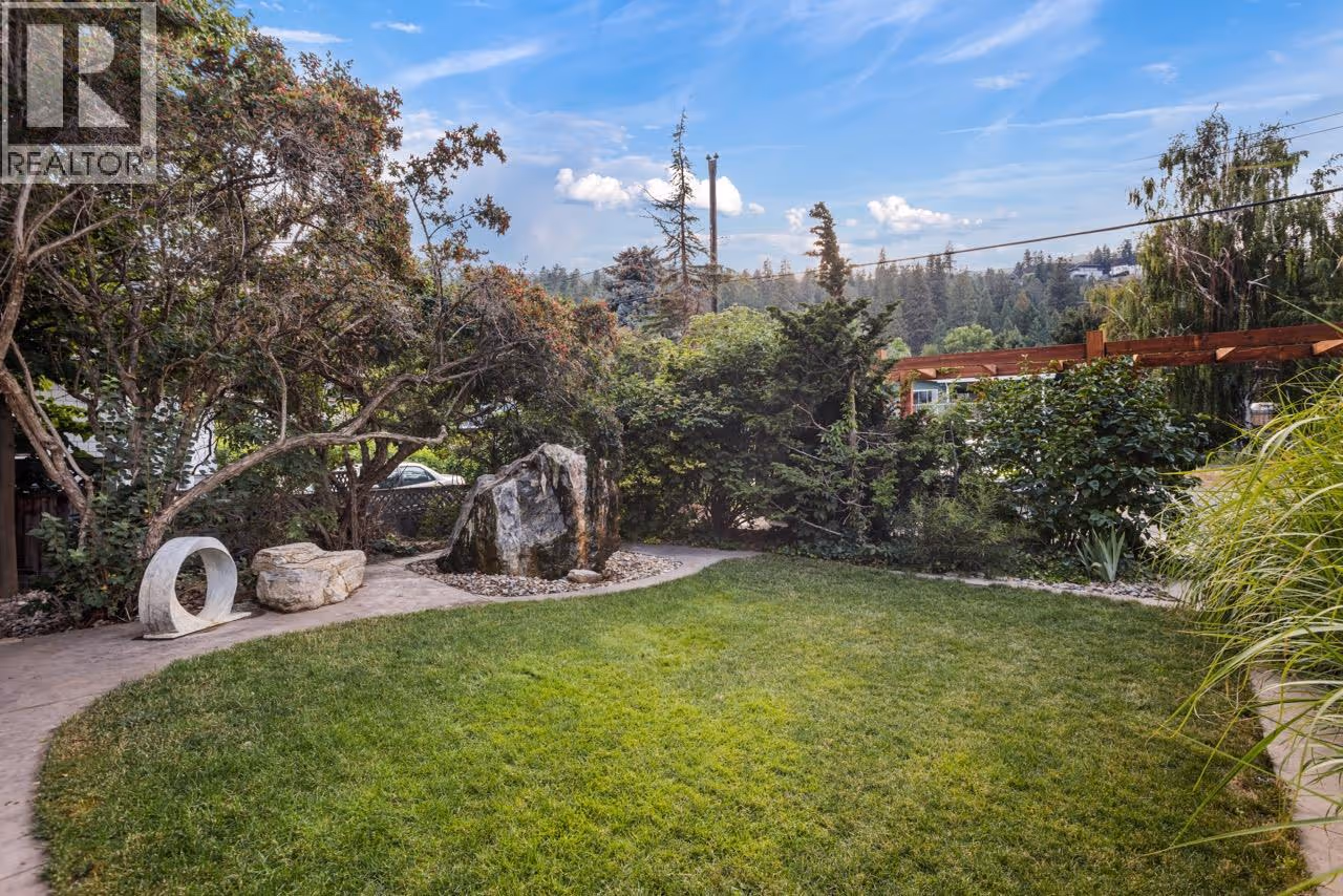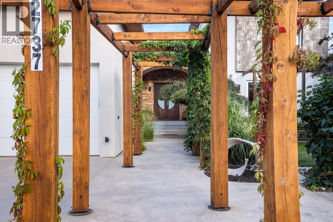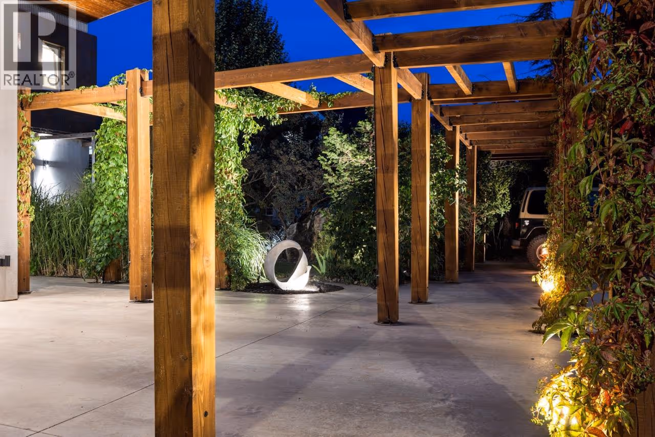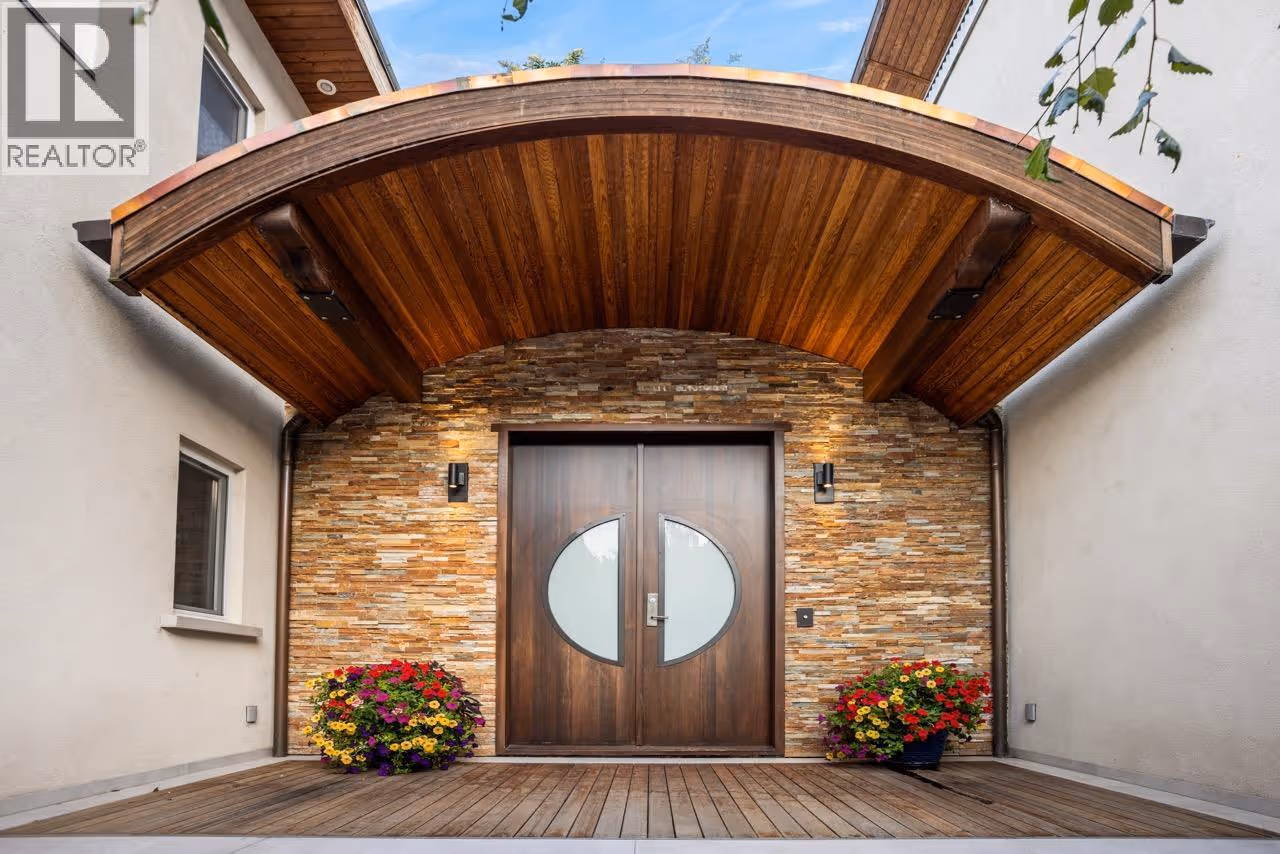 Architecturally striking lakeshore residence on the shores of Okanagan Lake. Set on a 0.25-acre (10,890 sq. ft.) lot with 75 feet of pristine frontage, this home is designed to seamlessly integrate indoor and outdoor living. The exterior blends rock, aluminum, steel, and wood, while the interior combines wood, glass, and reclaimed brick for a warm yet contemporary feel. Expansive NanaWall doors open the main living areas to the lakeside patio, extending the kitchen and dining spaces to a flat lawn, BBQ area, sandy beach with fire pit, and private licensed dock. The chef’s kitchen is equipped with top-tier appliances—including a built-in coffee maker—and anchored by a massive island with lake view dining. The upper level is devoted to the primary suite, complete with a private patio and rooftop deck capturing breathtaking sunrises. Four additional bedrooms with ensuites provide comfort for family and guests. The lower level offers a home theatre, wine cellar, recreation room, and a cozy living space with a wood-burning stove. A triple garage and ample uncovered parking add convenience, while mature landscaping creates a park-like setting. Located in the sought-after Casa Loma community, just minutes to Downtown Kelowna and steps from Kalamoir Park trails, this residence perfectly balances luxury design and lakeshore lifestyle. (id:58842)