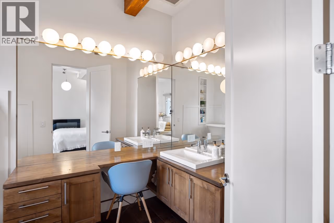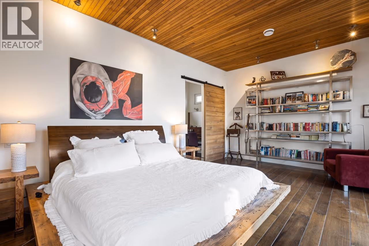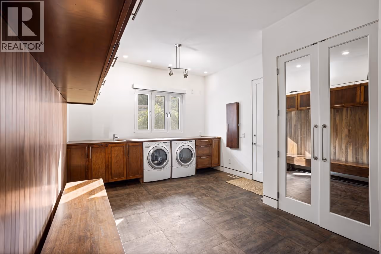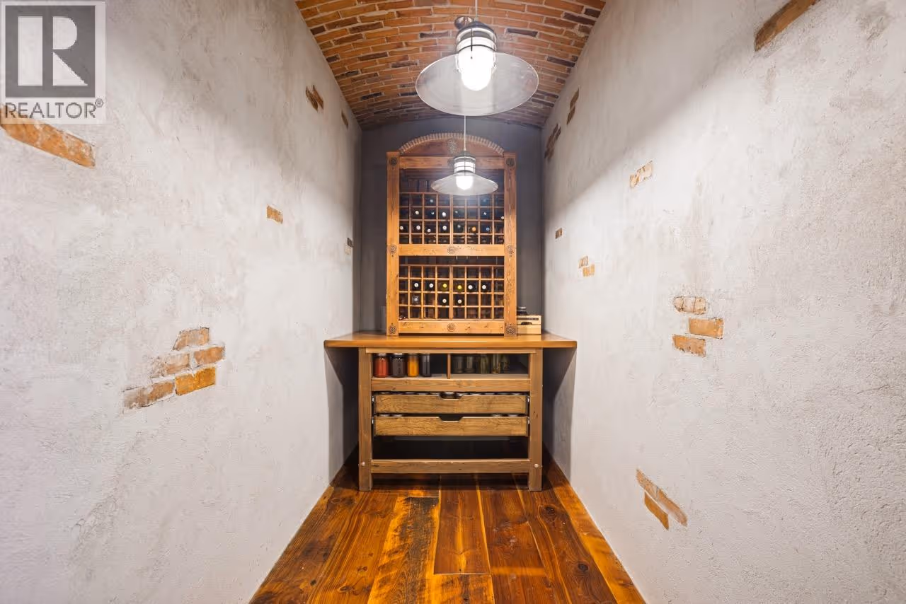 Architecturally striking lakeshore residence on the shores of Okanagan Lake. Set on a 0.25-acre (10,890 sq. ft.) lot with 75 feet of pristine frontage, this home is designed to seamlessly integrate indoor and outdoor living. The exterior blends rock, aluminum, steel, and wood, while the interior combines wood, glass, and reclaimed brick for a warm yet contemporary feel. Expansive NanaWall doors open the main living areas to the lakeside patio, extending the kitchen and dining spaces to a flat lawn, BBQ area, sandy beach with fire pit, and private licensed dock. The chef’s kitchen is equipped with top-tier appliances—including a built-in coffee maker—and anchored by a massive island with lake view dining. The upper level is devoted to the primary suite, complete with a private patio and rooftop deck capturing breathtaking sunrises. Four additional bedrooms with ensuites provide comfort for family and guests. The lower level offers a home theatre, wine cellar, recreation room, and a cozy living space with a wood-burning stove. A triple garage and ample uncovered parking add convenience, while mature landscaping creates a park-like setting. Located in the sought-after Casa Loma community, just minutes to Downtown Kelowna and steps from Kalamoir Park trails, this residence perfectly balances luxury design and lakeshore lifestyle. (id:58842)
