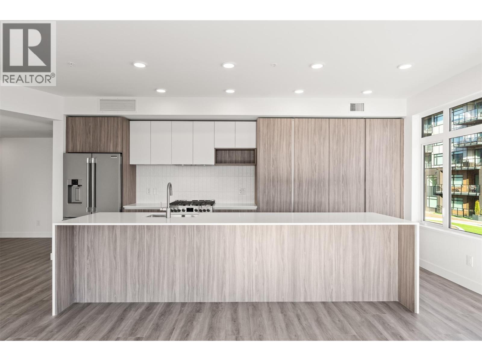 Indulge in elevated Okanagan living in this HUGE 2 bedroom + den, 2 bathroom corner home where inspired design meets spectacular scenery. An expansive wraparound deck showcases views of the lake, vineyards, and mountains, while floor-to-ceiling windows flood the interior’s 1549 sf with natural light from dawn to dusk. Two parking stalls & two storage lockers make this residence perfect for downsizers. The showpiece of the home is a chef-worthy kitchen highlighted by an oversized quartz island with waterfall edge. Premium features include a gas cooktop, built-in wine fridge, pantry wall, microwave, custom drawer organizers, imported Italian cabinetry, & seamless luxury vinyl plank flooring throughout. The thoughtfully planned layout positions the bedrooms on opposite sides of the residence, providing privacy for both owners and guests. The primary retreat offers fabulous water & vineyard views, a walk-through closet, and a spa-inspired ensuite complete with heated tile floors. Additional highlights include a generous balcony, and pet-friendly living for up to 2 pets. Residents enjoy resort-style amenities including an onsite greenhouse, outdoor pool and hot tub, fitness centre, dog wash, community gardens, secure parcel delivery, and Butterfly entry system. Perfectly situated steps from a new community centre, school, bistro, market, & sports court & just minutes from beaches, boat launches, and renowned wineries—this home blends modern luxury with the best of Okanagan living. (id:58842)