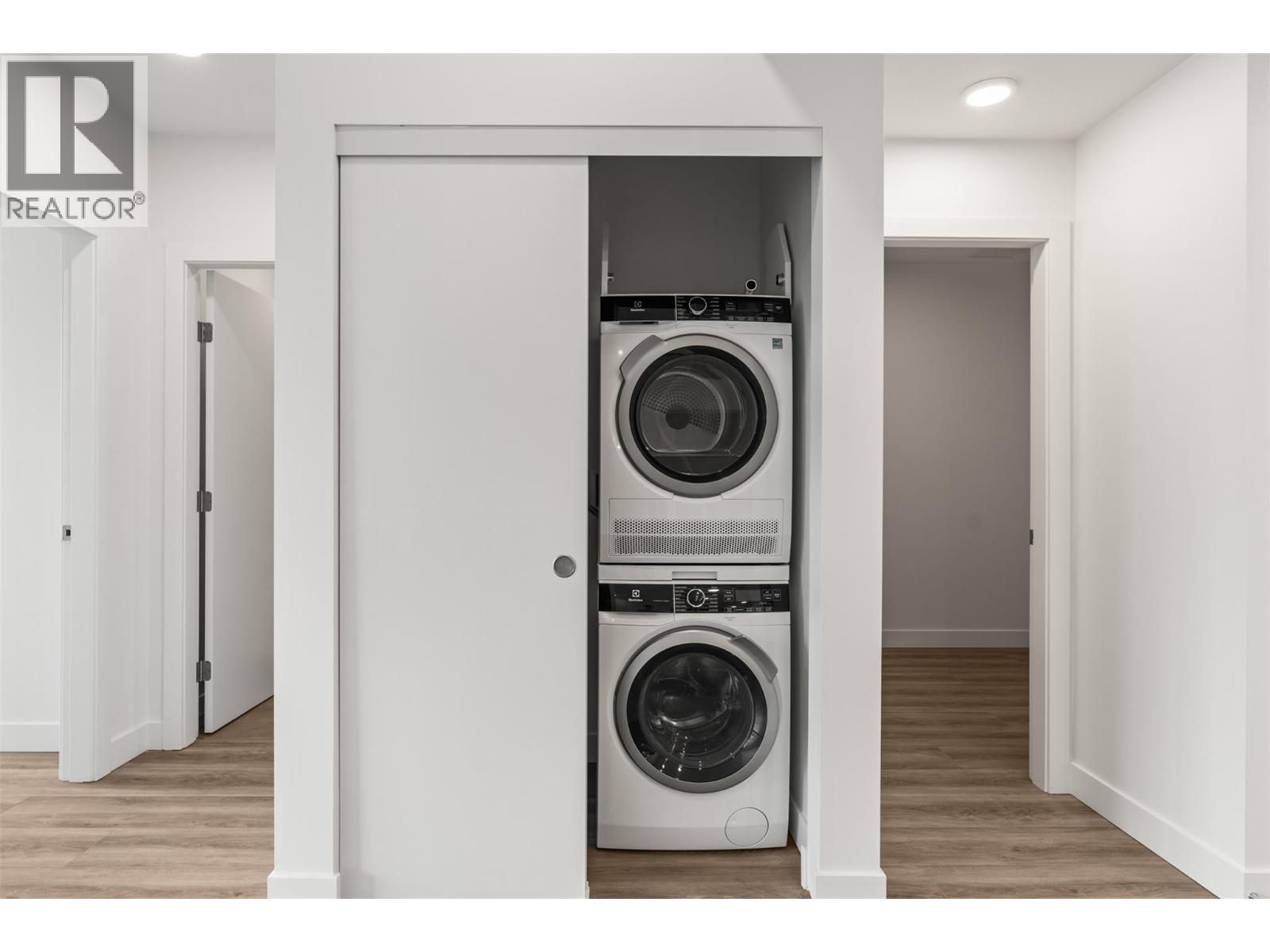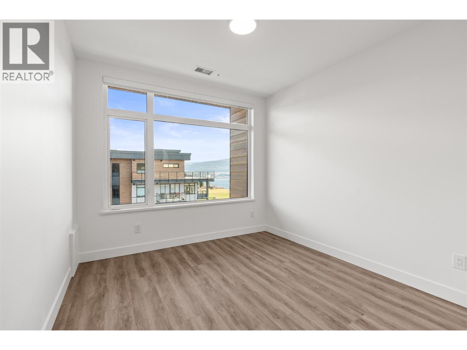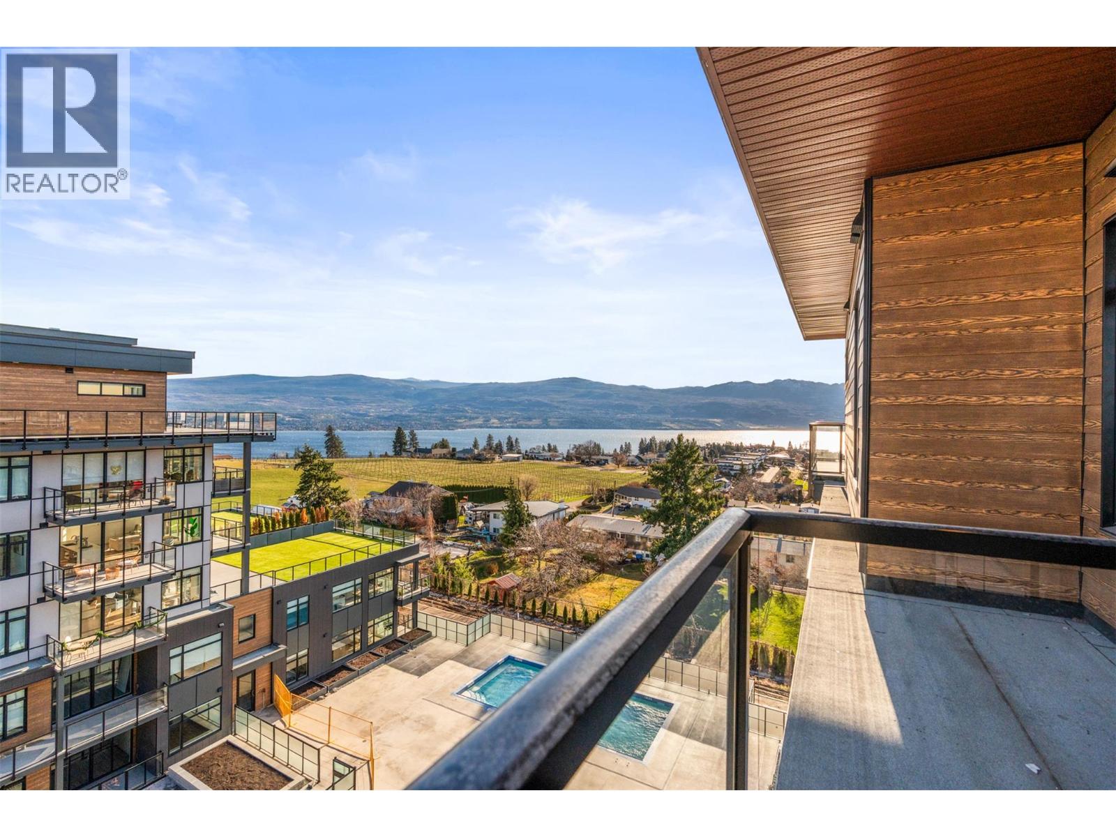 Experience elevated living in this brand-new 2 bedroom + den, 2 bathroom corner residence, where thoughtful architecture meets breathtaking surroundings. Wrapped in an expansive glass deck, the home captures sweeping views across the lake, vineyards, and mountains, while floor-to-ceiling windows bathe the interior in natural light. At the heart of the home is a stunning chef-inspired kitchen, anchored by an oversized quartz island perfect for entertaining. Premium finishes include a gas cooktop, built-in wine fridge & pantry wall, microwave, custom drawer organizers, imported Italian cabinetry, and sleek luxury vinyl plank flooring that flows seamlessly through the space. The smart layout places the bedrooms on opposite sides of the home, offering enhanced privacy for owners and guests alike. Wake up to unforgettable vistas in the primary retreat, featuring a walk-through closet and a serene, spa-style ensuite with heated tile flooring. Designed with comfort and convenience in mind, this home also includes a spacious deck, one secure parking stall + storage locker, and welcomes up to 2 pets. Residents enjoy a resort lifestyle with access to an onsite greenhouse, outdoor pool + hot tub, fitness centre, dog wash, community gardens, secure parcel delivery, and the advanced Butterfly entry system. Ideally located, this home is just steps from a brand-new community centre, schools, bistro, market, & sports courts & only minutes to beaches, boat launches, and celebrated wineries. (id:58842)