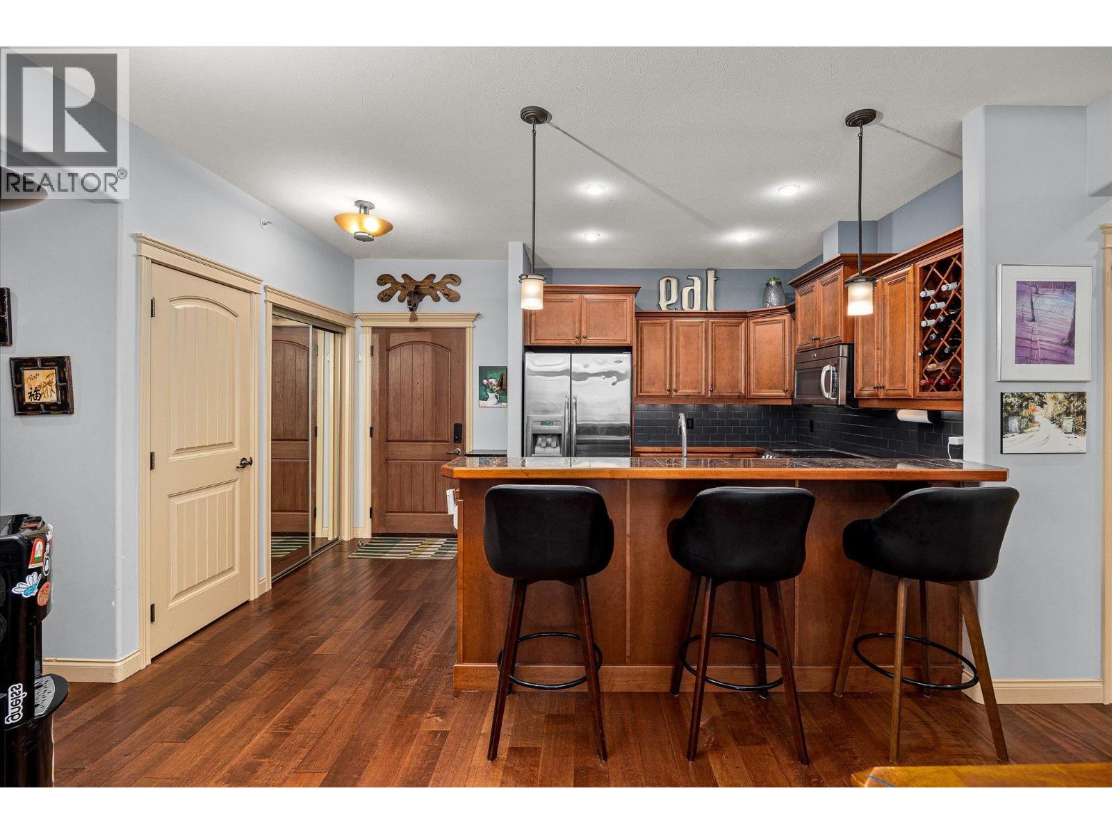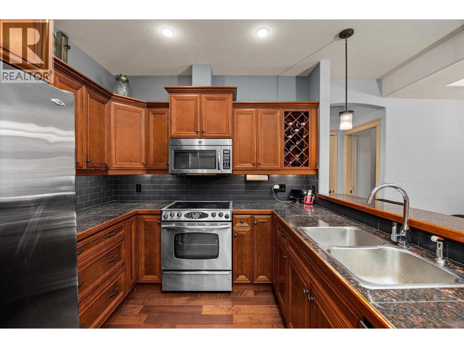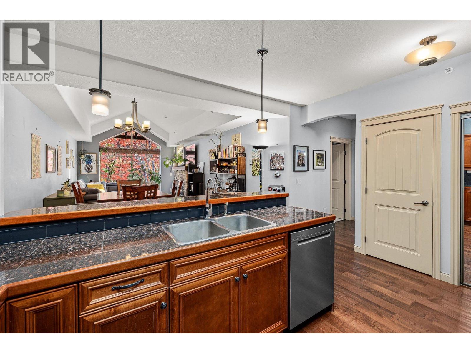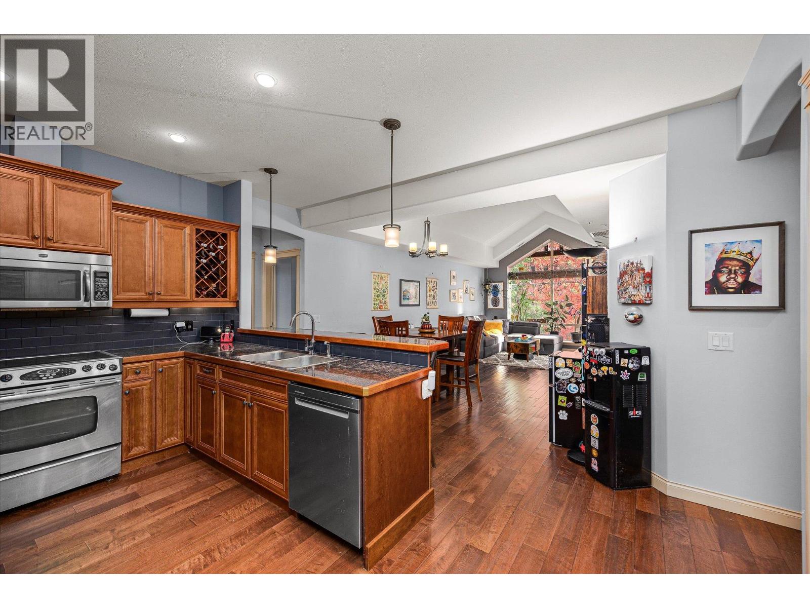 Welcome to Terravita, a gated community backing onto Shannon Lake Golf Course. This bright top-floor 2-bedroom, 2-bath home offers vaulted ceilings, a spacious open-concept layout, and abundant natural light throughout. The kitchen is well-appointed with stainless steel appliances, maple cabinetry, granite countertops, and a convenient eat-in bar, perfect for everyday living and entertaining. Relax by the rock-faced fireplace or step out onto your private deck, where you’ll enjoy peaceful views of the maple tree and nearby hiking trails. With no neighbouring units looking in, this elevated location offers exceptional privacy rarely found in condo living. One of the standout features of this home is the impressive amount of storage. In addition to generous in-unit storage and a dedicated in-suite laundry room, the unit includes a large private storage locker located in the parkade. The spacious primary bedroom comfortably accommodates a king-size bed and features a walk-in closet and a 3-piece ensuite. A second generously sized bedroom and a full main bathroom complete the thoughtful layout. This home also includes one underground parking stall, ample visitor parking, and beautiful golf course and mountain views. Ideally located just minutes from schools, shopping, restaurants, wineries, golf, and everything West Kelowna has to offer. Don’t miss this opportunity to enjoy top-floor living in a quiet, private setting. (id:58842)