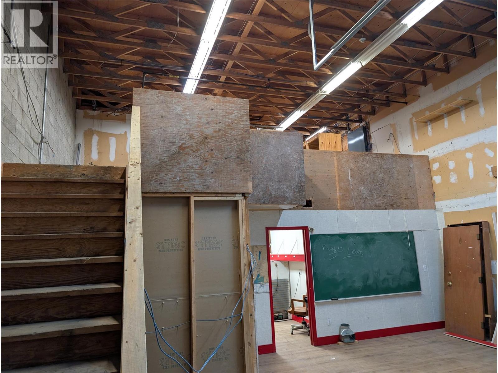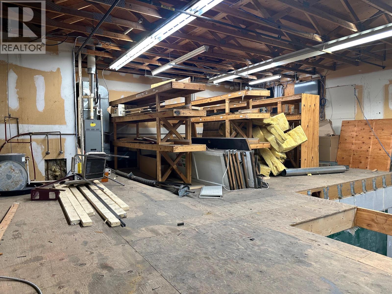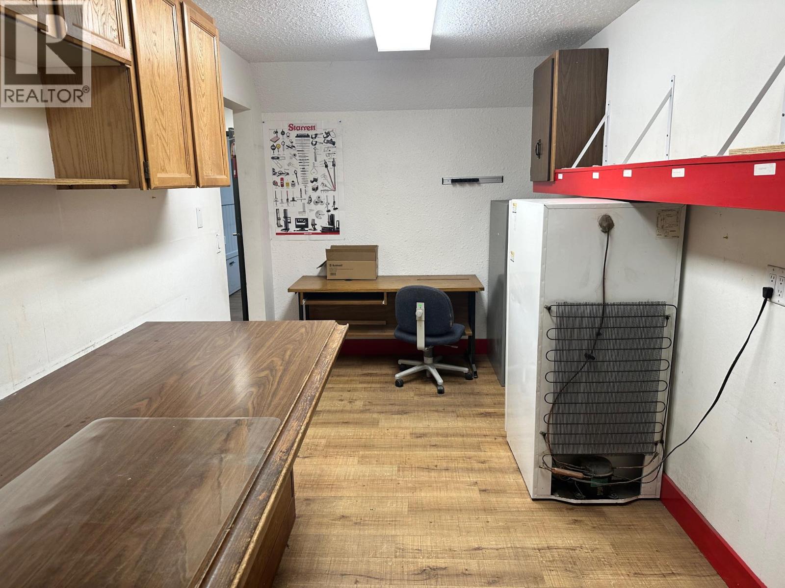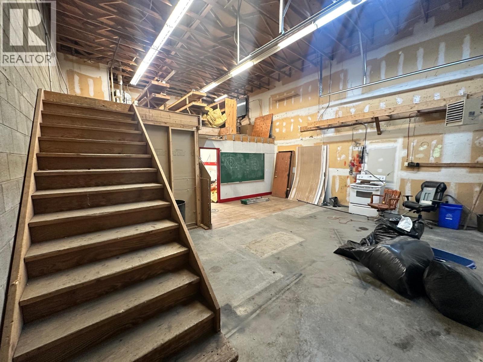Affordable and hard-to-find shop space offering a functional layout with a front office/showroom and upper mezzanine. The main floor provides approximately 1,375 sq. ft. of workspace, plus an additional 365 sq. ft. mezzanine ideal for storage, office use, or light workspace. The shop features a 12-foot overhead door with convenient lane access, making it easy for deliveries, equipment, or service vehicles. Heating is provided by gas forced air, ensuring year-round comfort. Additional features include private parking at the rear along with one dedicated front parking stall for staff or customers. This versatile space is well suited for a variety of business uses and is available immediately. (id:58842)