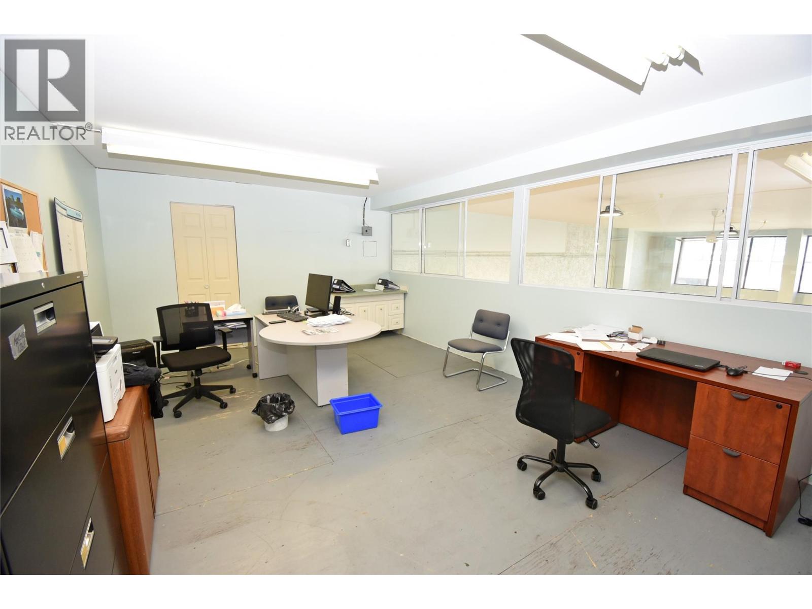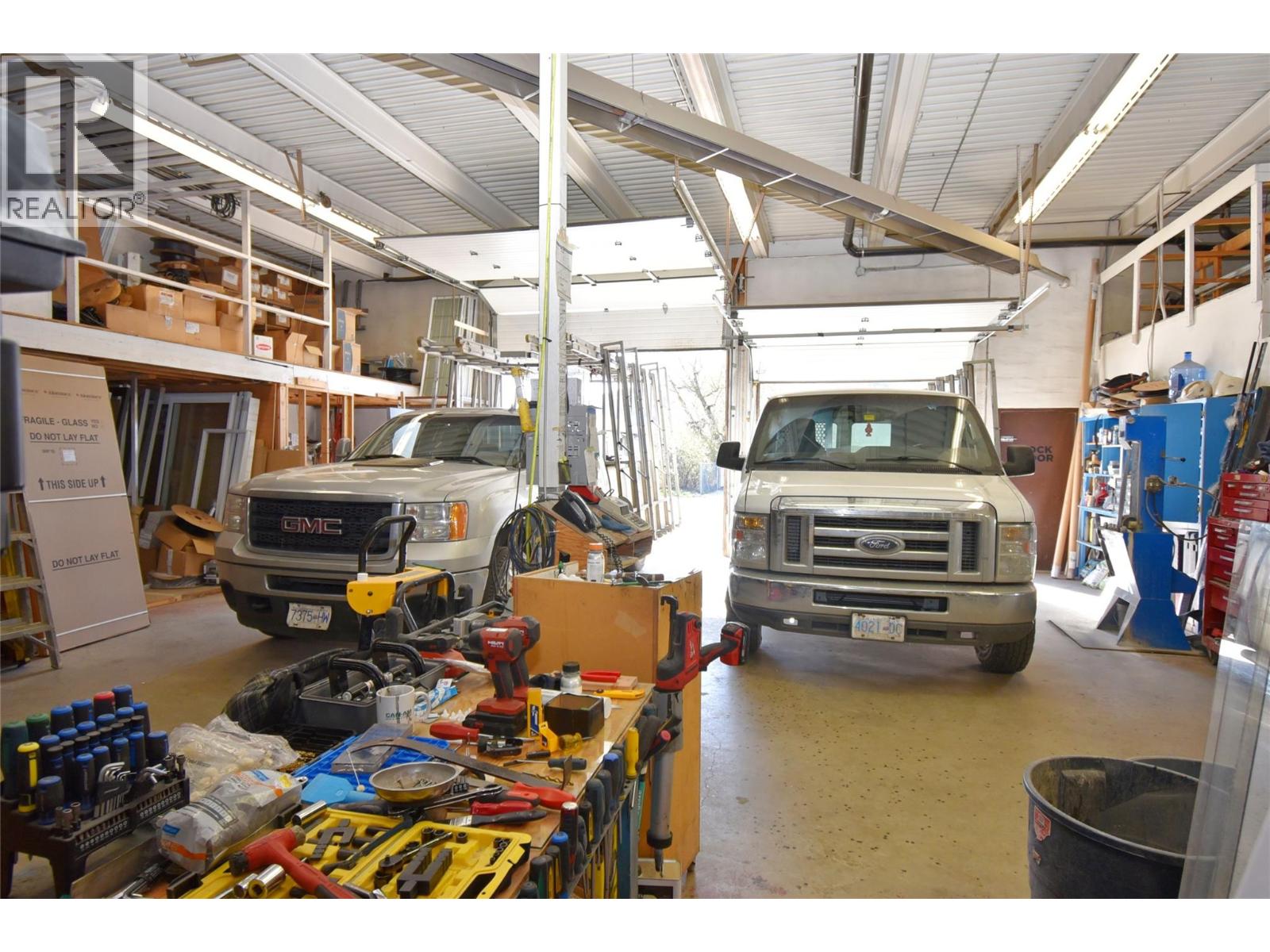 This Service Commercial building in Vernon is being offered for sale with a Service commercial zoned smaller home on an adjacent lot as part of the package. The commercial building boasts 9000+ sq ft & is demised into 2 spaces with roughly 3,300 sqft on the ground level for each space. Each ground level unit have mezzanine space as well. One ground level unit is currently vacant & ready for Owner use or for lease. It has an adaptable layout with a large open retail area up front with high ceilings & plenty of natural light. The main level is 3340 sqft & there is a 1566 sqft mezzanine currently set up with 3 offices & a bathroom. Under the mezzanine is storage & work areas with a side room with high ceilings & a receiving area with 13' overhead door, bathroom on ground level too. The 2nd space was custom built for the current long term tenant with lease in place to January 31, 2026. Okanagan Glass - a 30 year old established glazing business specializing in commercial installations, ICBC insurance claims, residential windows for new & renovations, shower doors all types of custom glass projects. The small rental home on the adjacent lot is situated close to 29 Street, providing room for additional parking & snow storage. Viewing of the rental home is available on a second showing of the entire property. The CMUB – Commercial Mixed Use Business zoning offers opportunities for future development with a wide variety of permitted uses. 29th Street has been substantially upgraded. (id:58842)