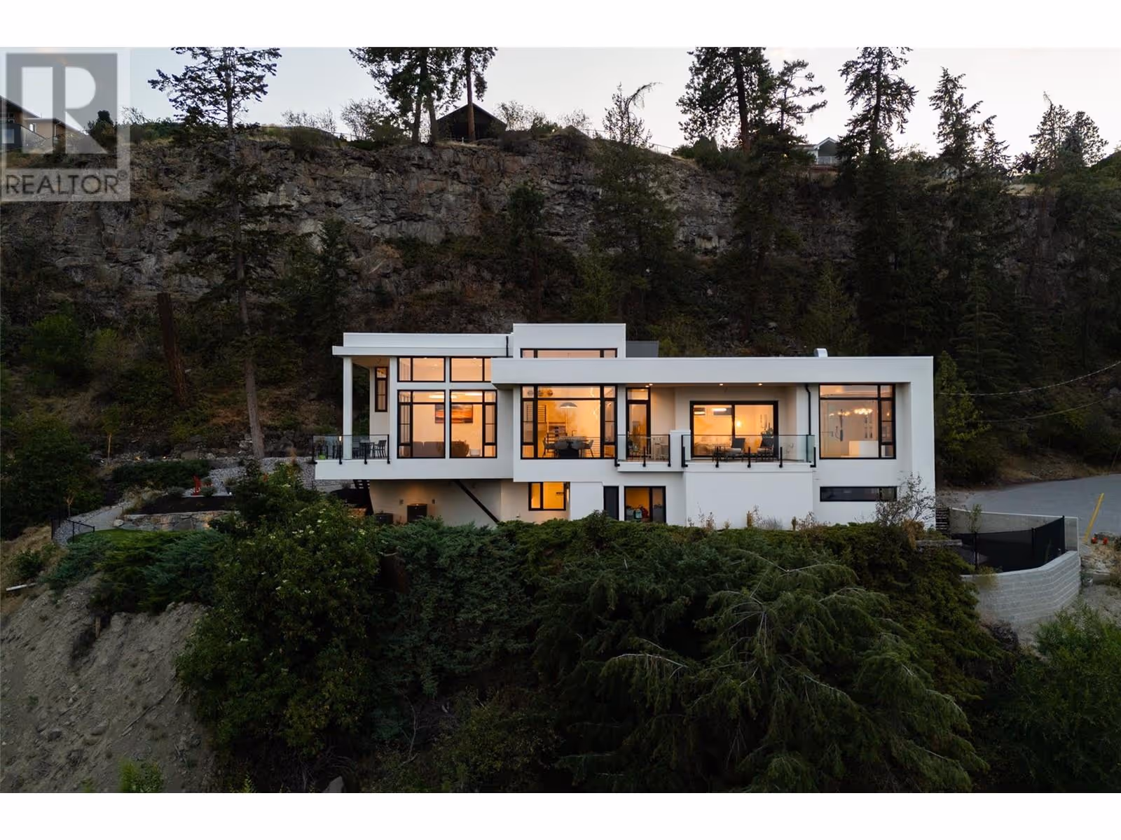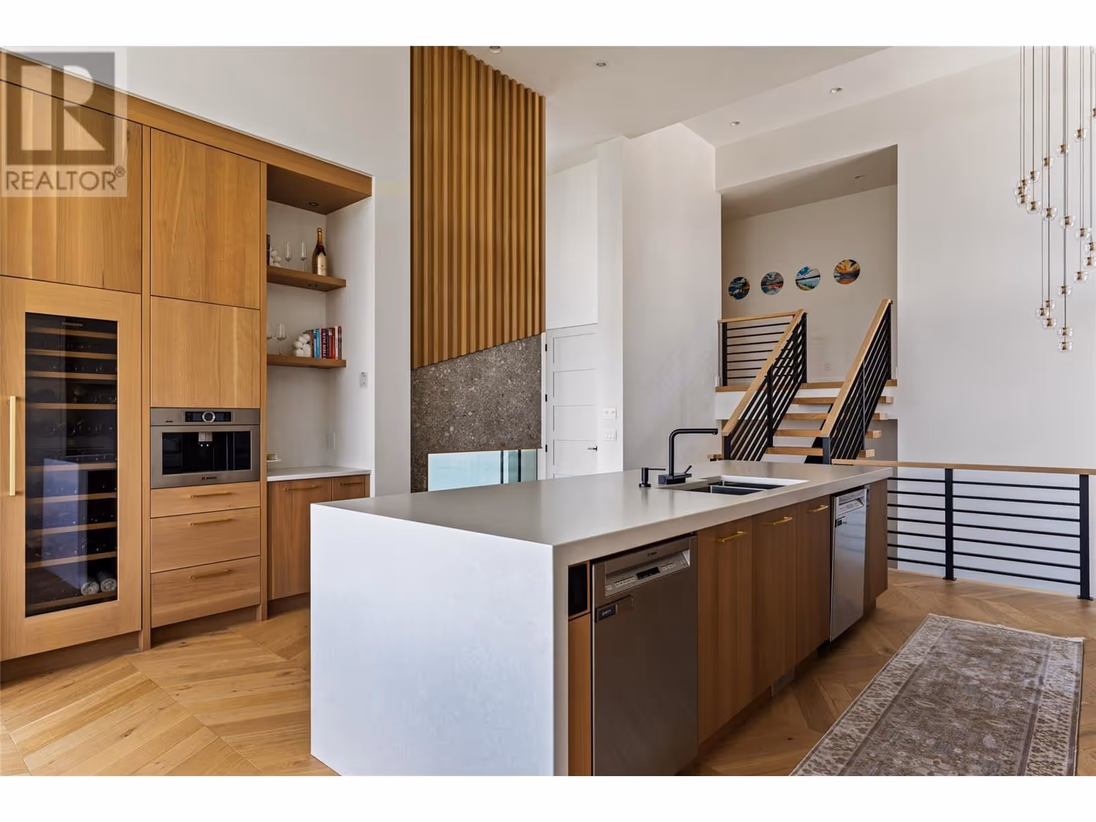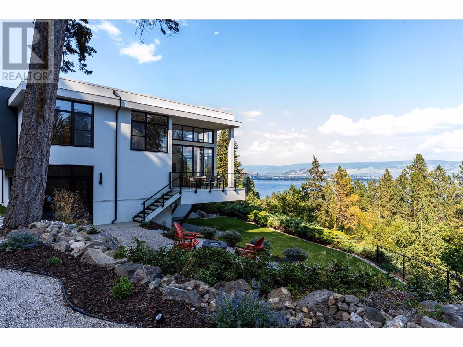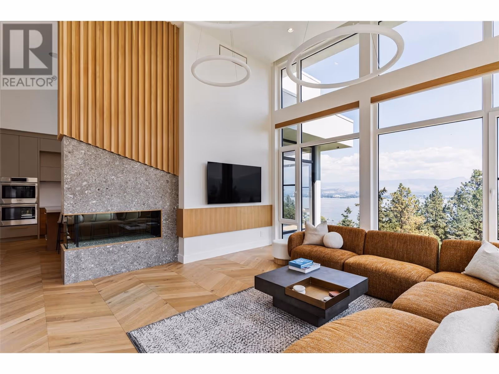 Welcome to this world-class home perched on a pristine 0.9 acre parcel boasting incredible views and the utmost privacy. This home was expertly crafted with incredible attention to detail and unmatched materials and fixtures. Enter through your gate into your private escape, with gorgeous landscaping to guide you. The kitchen boasts Wolf, Liebher, and Bosch appliances, incl. Dual dishwashers, three ovens, built-in espresso machine, butler pantry. Waterfall silestone countertops drape over custom cabinetry. The main living space features full nano doors opening onto the main patio, with Davinci fireplace, with incredible lighting and incredible windows throughout. The primary wing boasts a private patio and a stunning spa-inspired ensuite with his/her vanities, makeup table, and Japanese soaker tub - all with expansive views of Lake Okanagan. The opulent powder room features book matched Arte wallpaper. Upstairs are three large bedrooms, curated with designer wallpaper and individual fireplaces, completed by a beautiful full bathroom. Relax in the full home cinema, and create in the dedicated office space with drinks bar. The bright and welcoming games/rec room features a full wet bar, and exterior entry to the lush backyard. The oversized double garage features a car lift, custom cabinetry, and EV charger. Chevron hardwood flooring throughout. The serene park-like lot spans 0.9 acres, offering unlimited space for outdoor living, and direct access to Kalamoir Park. (id:58842)