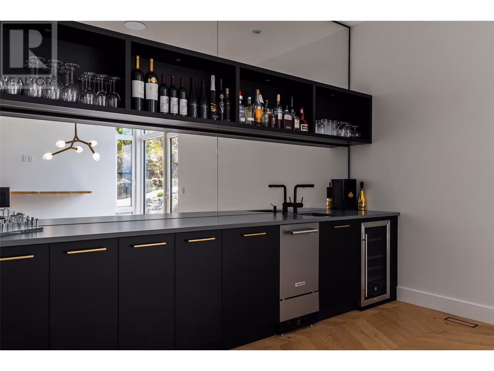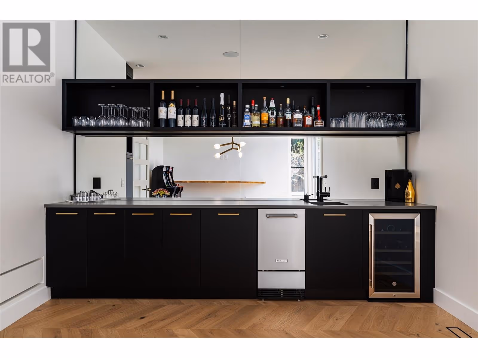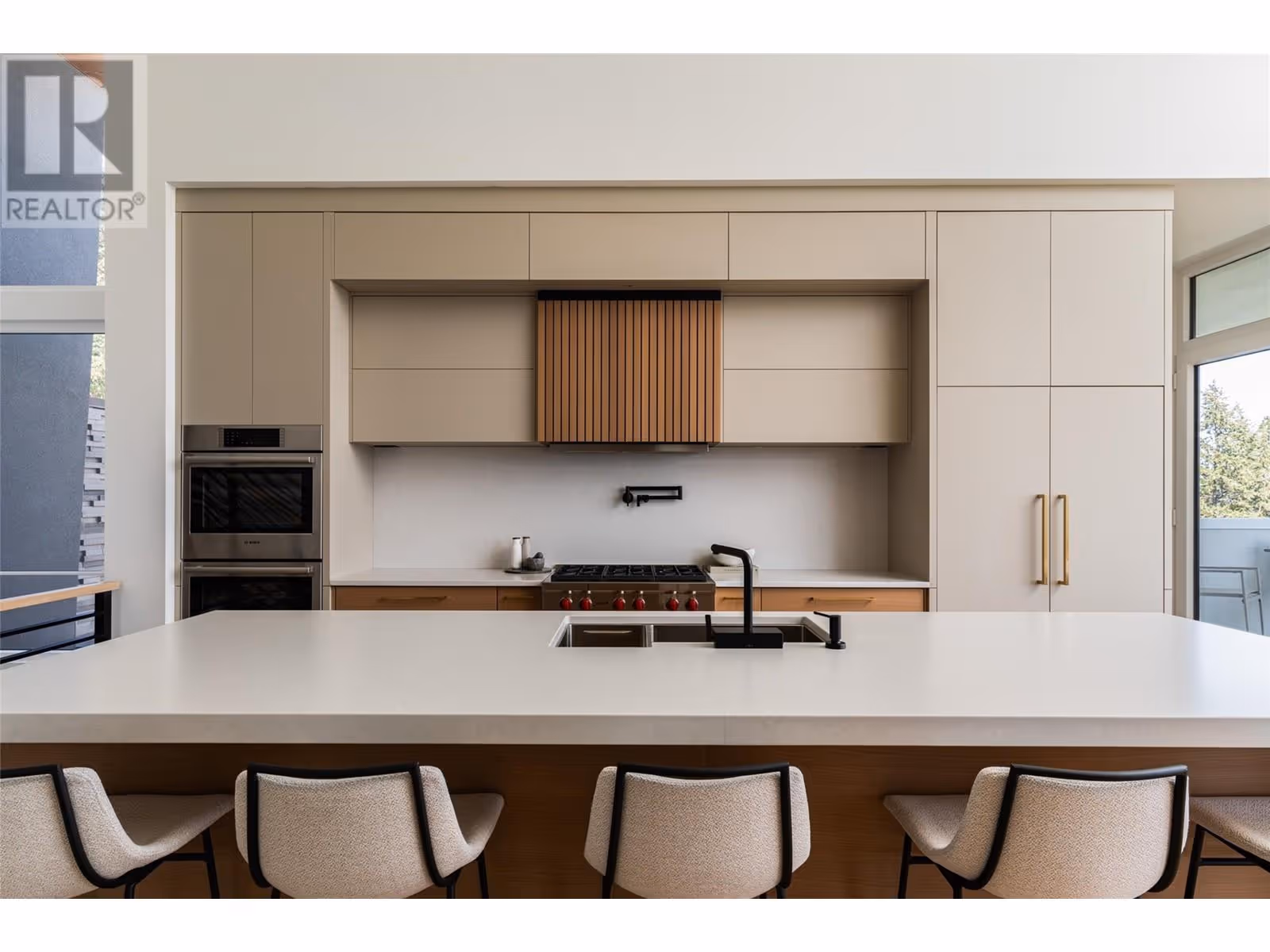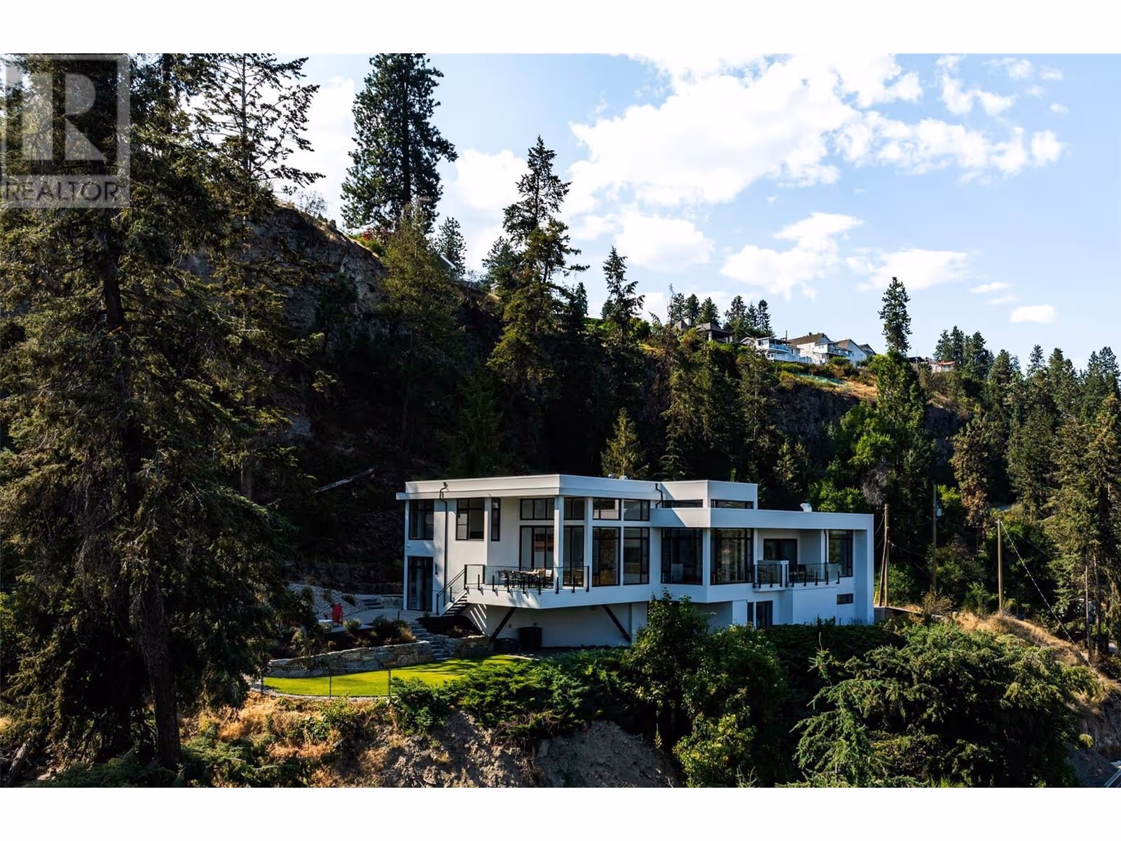 Welcome to this world-class home perched on a pristine 0.9 acre parcel boasting incredible views and the utmost privacy. This home was expertly crafted with incredible attention to detail and unmatched materials and fixtures. Enter through your gate into your private escape, with gorgeous landscaping to guide you. The kitchen boasts Wolf, Liebher, and Bosch appliances, incl. Dual dishwashers, three ovens, built-in espresso machine, butler pantry. Waterfall silestone countertops drape over custom cabinetry. The main living space features full nano doors opening onto the main patio, with Davinci fireplace, with incredible lighting and incredible windows throughout. The primary wing boasts a private patio and a stunning spa-inspired ensuite with his/her vanities, makeup table, and Japanese soaker tub - all with expansive views of Lake Okanagan. The opulent powder room features book matched Arte wallpaper. Upstairs are three large bedrooms, curated with designer wallpaper and individual fireplaces, completed by a beautiful full bathroom. Relax in the full home cinema, and create in the dedicated office space with drinks bar. The bright and welcoming games/rec room features a full wet bar, and exterior entry to the lush backyard. The oversized double garage features a car lift, custom cabinetry, and EV charger. Chevron hardwood flooring throughout. The serene park-like lot spans 0.9 acres, offering unlimited space for outdoor living, and direct access to Kalamoir Park. (id:58842)