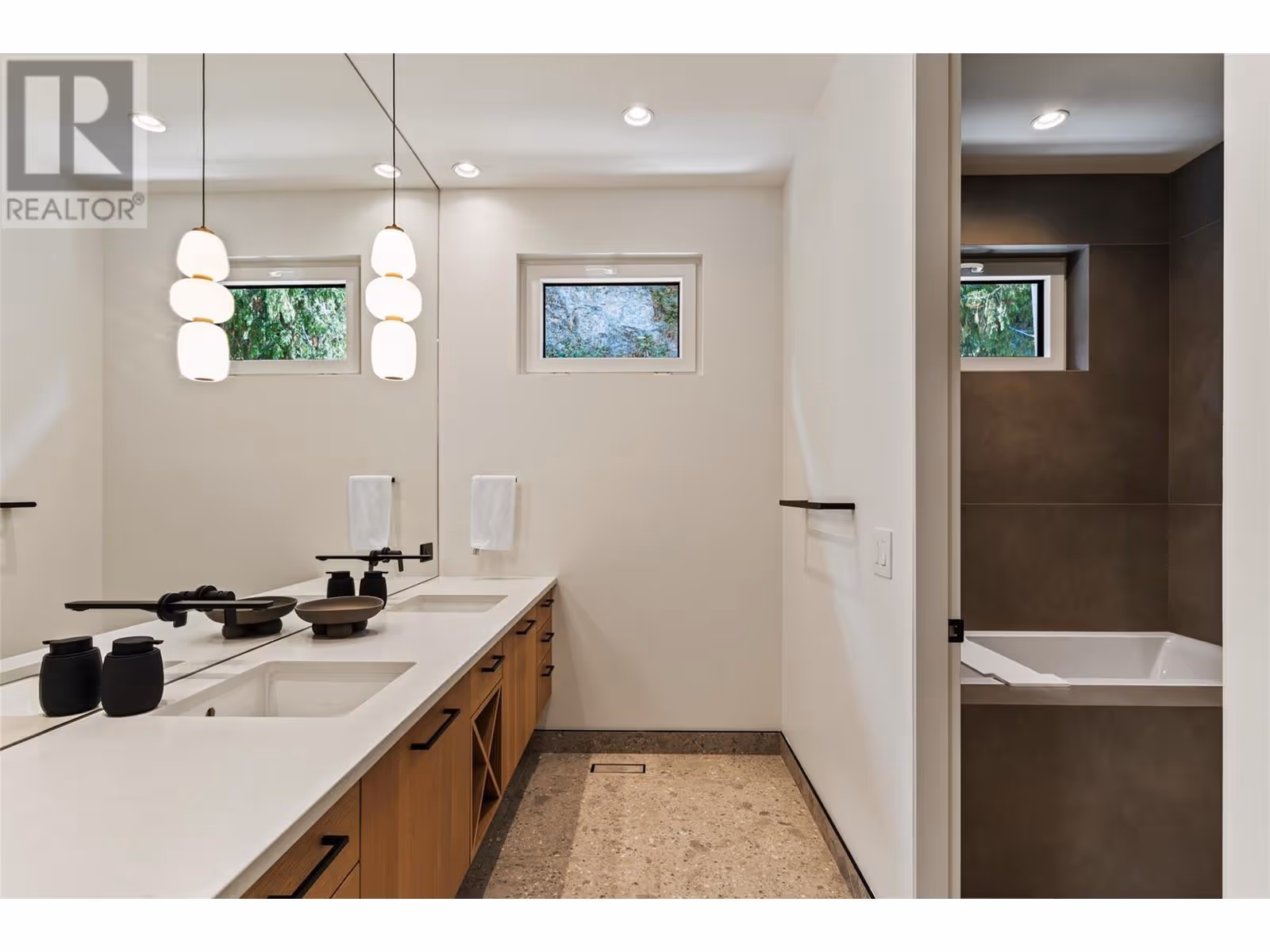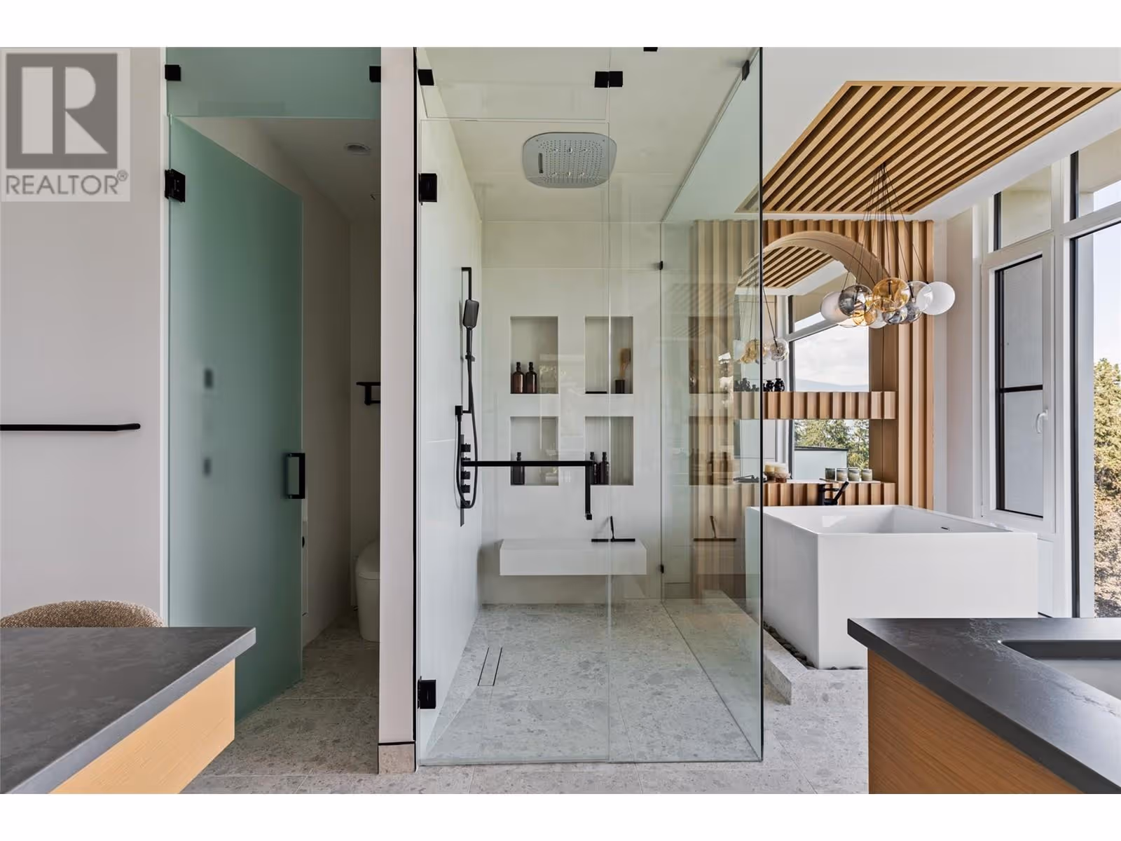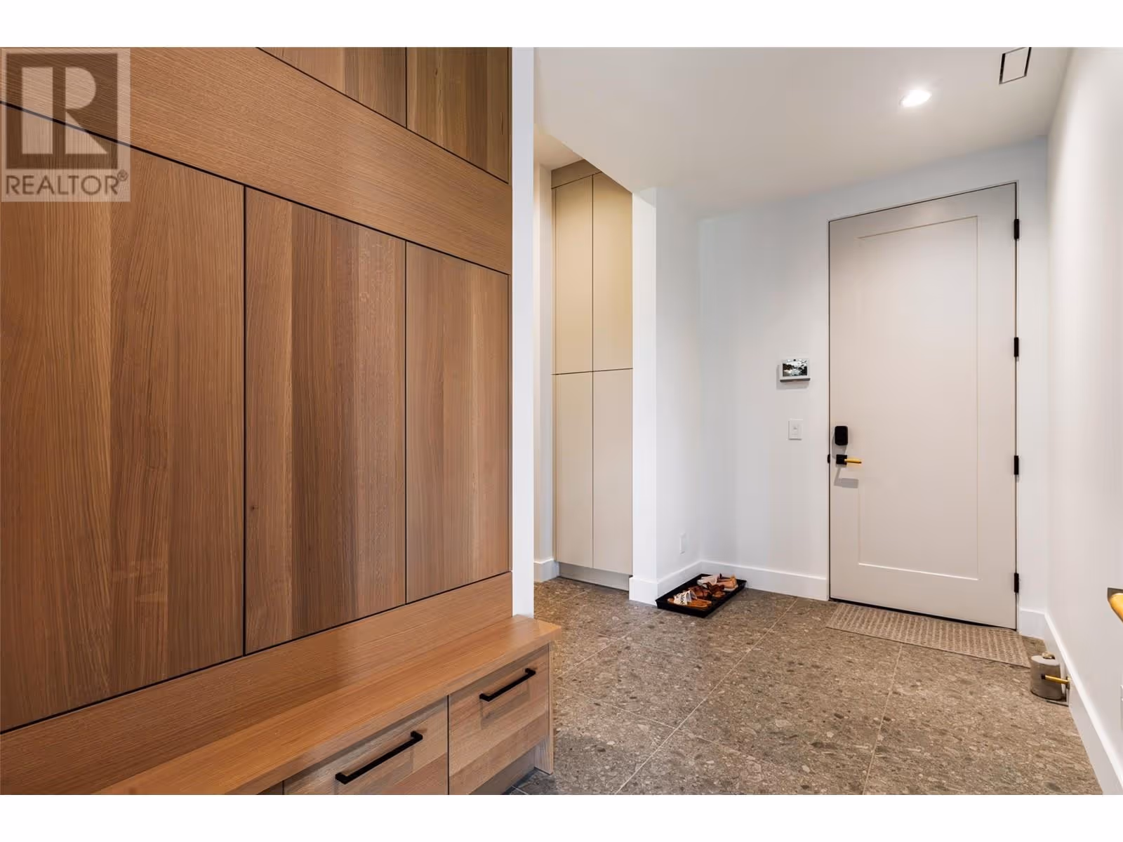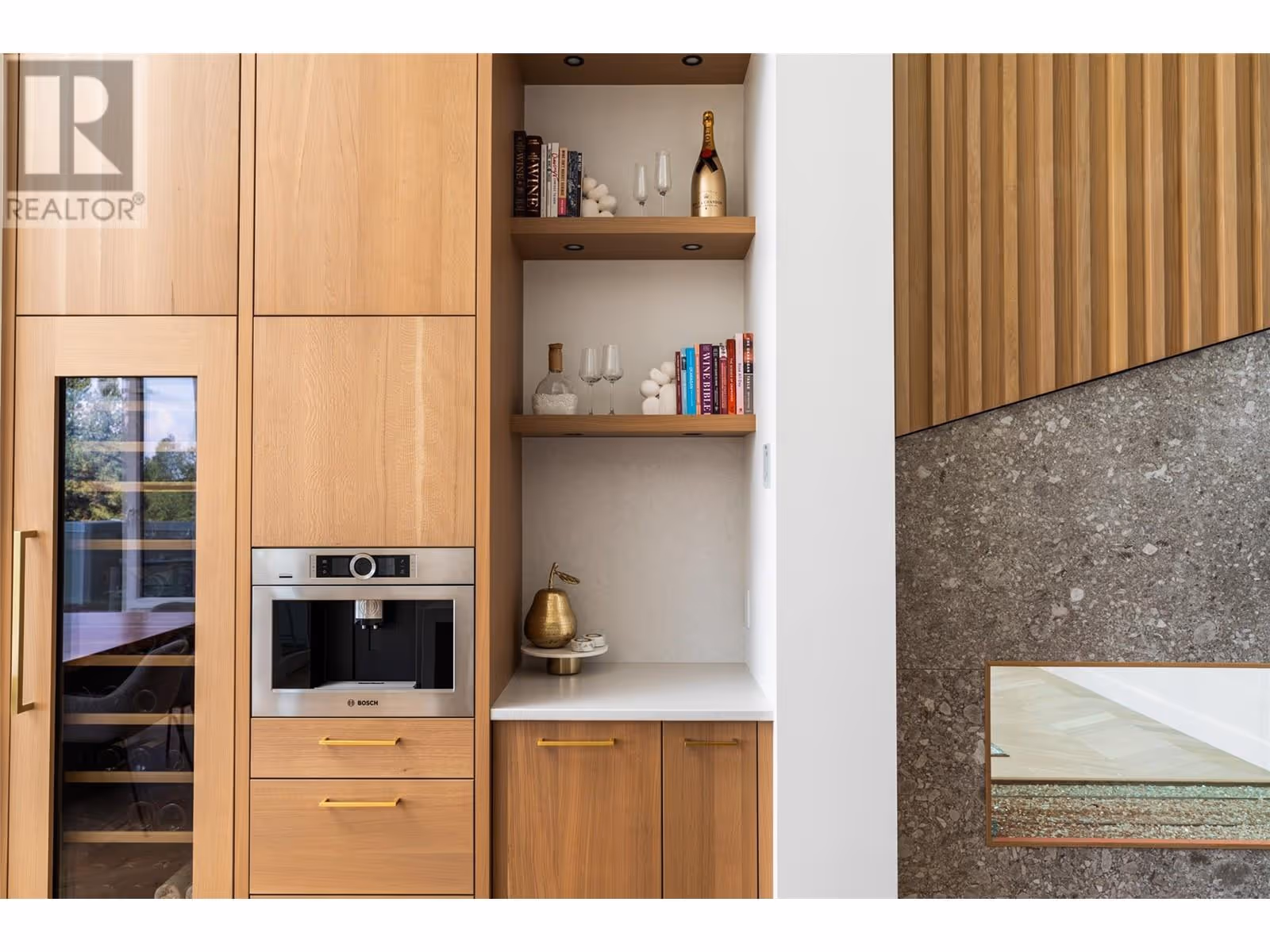 Welcome to this world-class home perched on a pristine 0.9 acre parcel boasting incredible views and the utmost privacy. This home was expertly crafted with incredible attention to detail and unmatched materials and fixtures. Enter through your gate into your private escape, with gorgeous landscaping to guide you. The kitchen boasts Wolf, Liebher, and Bosch appliances, incl. Dual dishwashers, three ovens, built-in espresso machine, butler pantry. Waterfall silestone countertops drape over custom cabinetry. The main living space features full nano doors opening onto the main patio, with Davinci fireplace, with incredible lighting and incredible windows throughout. The primary wing boasts a private patio and a stunning spa-inspired ensuite with his/her vanities, makeup table, and Japanese soaker tub - all with expansive views of Lake Okanagan. The opulent powder room features book matched Arte wallpaper. Upstairs are three large bedrooms, curated with designer wallpaper and individual fireplaces, completed by a beautiful full bathroom. Relax in the full home cinema, and create in the dedicated office space with drinks bar. The bright and welcoming games/rec room features a full wet bar, and exterior entry to the lush backyard. The oversized double garage features a car lift, custom cabinetry, and EV charger. Chevron hardwood flooring throughout. The serene park-like lot spans 0.9 acres, offering unlimited space for outdoor living, and direct access to Kalamoir Park. (id:58842)
