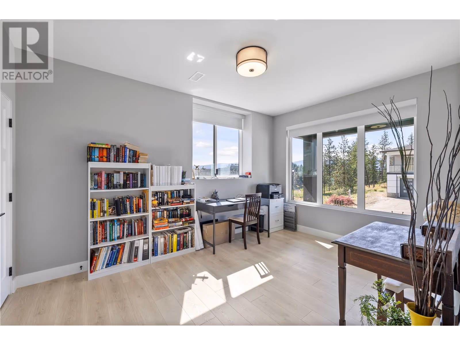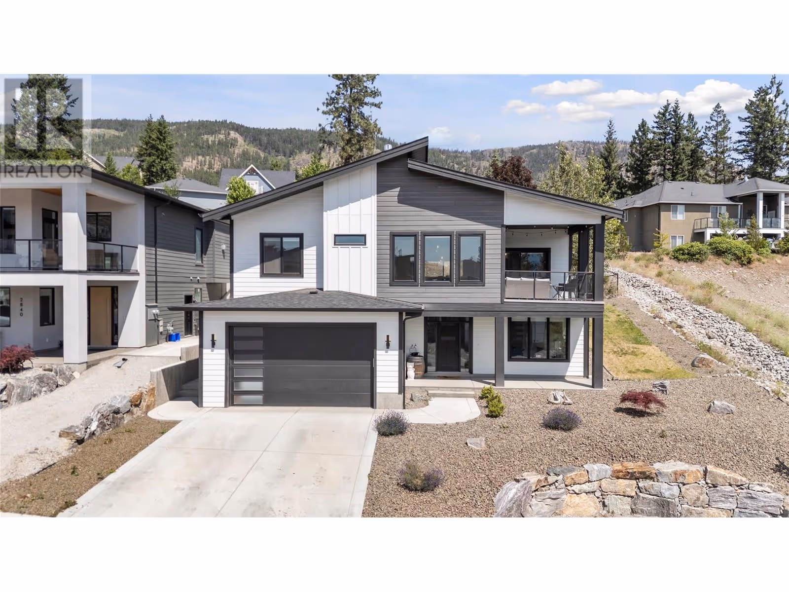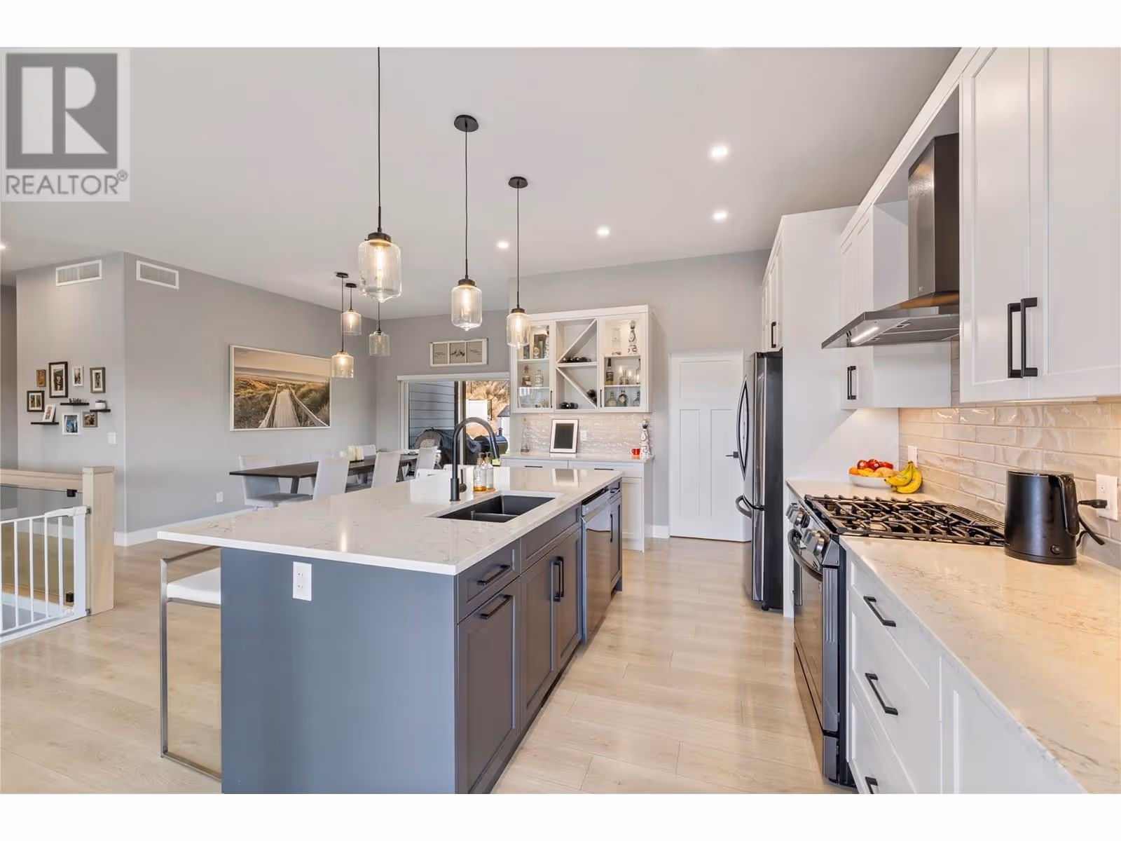 Welcome to this exceptional grade-level entry home in the highly sought-after Tallus Ridge community—where thoughtful design meets everyday luxury. Situated on an oversized lot with lake views, this home offers space, style, and functionality in equal measure. Step inside to discover a bright and airy main floor, highlighted by soaring 10-foot ceilings and expansive windows that flood the space with natural light while capturing stunning views of Shannon Lake. The heart of the home is a chef-inspired kitchen featuring a large island, quartz countertops, a gas range, and generous cabinetry for all your culinary needs. The open-concept layout continues into the spacious living room, complete with custom built-ins and a cozy gas fireplace—perfect for relaxing evenings. The adjoining dining area easily accommodates large gatherings and flows seamlessly to the semi-covered back patio, ideal for indoor-outdoor entertaining. Three well-sized bedrooms, including a luxurious primary suite. The primary retreat features dual walk-in closets and a spa-like ensuite with a walk-in tiled shower. A large laundry room adds everyday convenience. Downstairs, you'll find a versatile den or fourth bedroom off the foyer, along with a fully self-contained legal one-bedroom suite—perfect for extended family, guests, or added rental income. A perfect blend of luxury, comfort, and investment opportunity—this home is a rare offering in one of West Kelowna’s most desirable neighbourhoods. (id:58842)